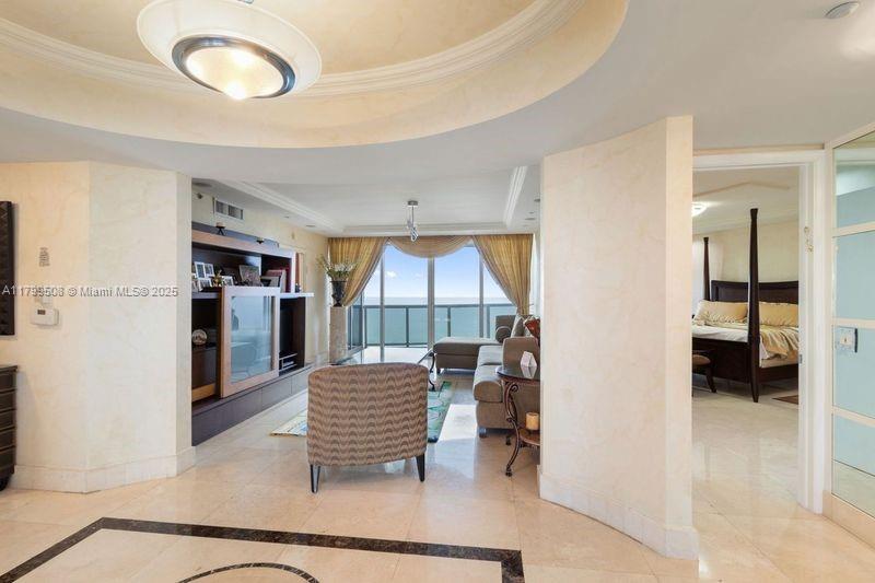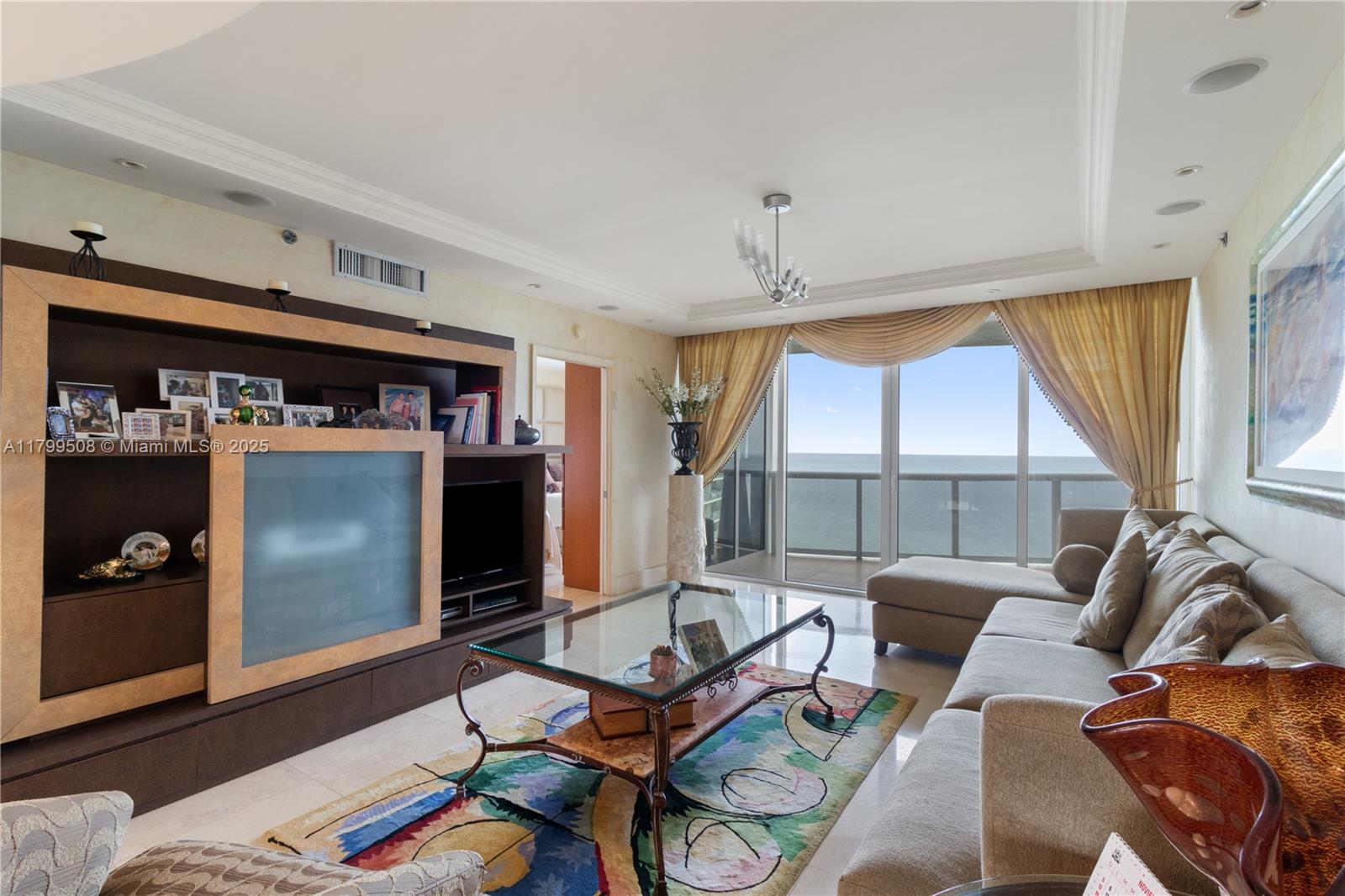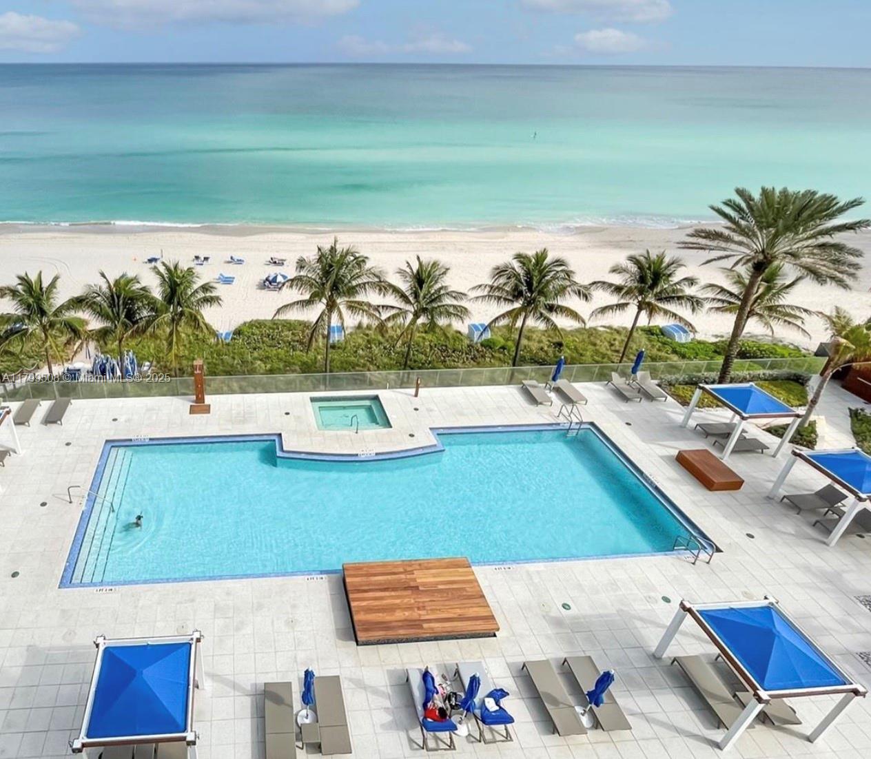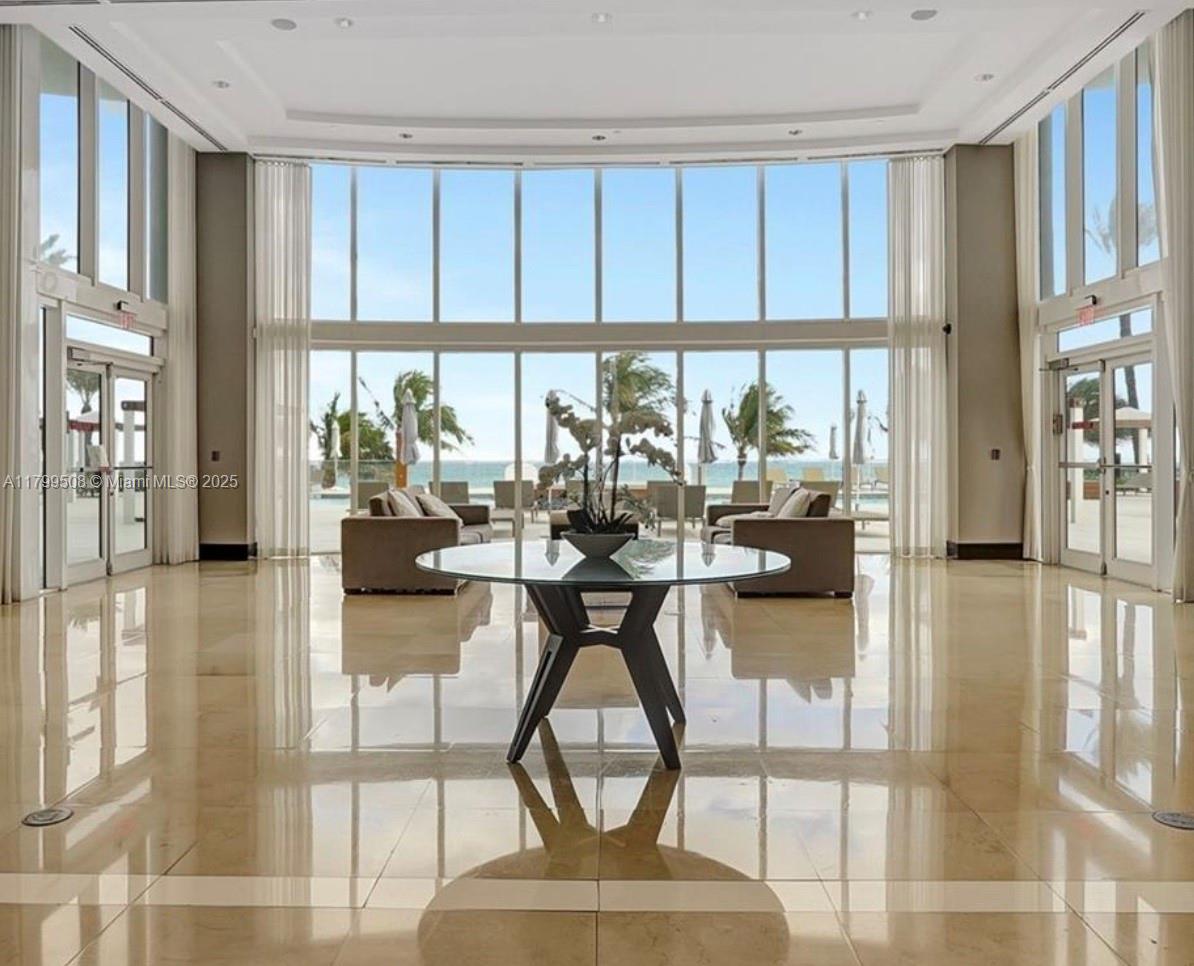 Direct ocean view from the living room, main terrace and from two of the three bedrooms. The private elevator takes you directly to your condo with three full en-suite bedrooms, master with king bed, second with two full beds and third with one queen bed. Additional room = den/private office. City/ intracoastal views from third bedroom, kitchen, dining room and west terrace - yes, it has two terraces! Elegant marble flooring throughout and tastefully furnished. Located on the beach, resort style amenities: full service beach and pool, tennis court, sauna, gym...