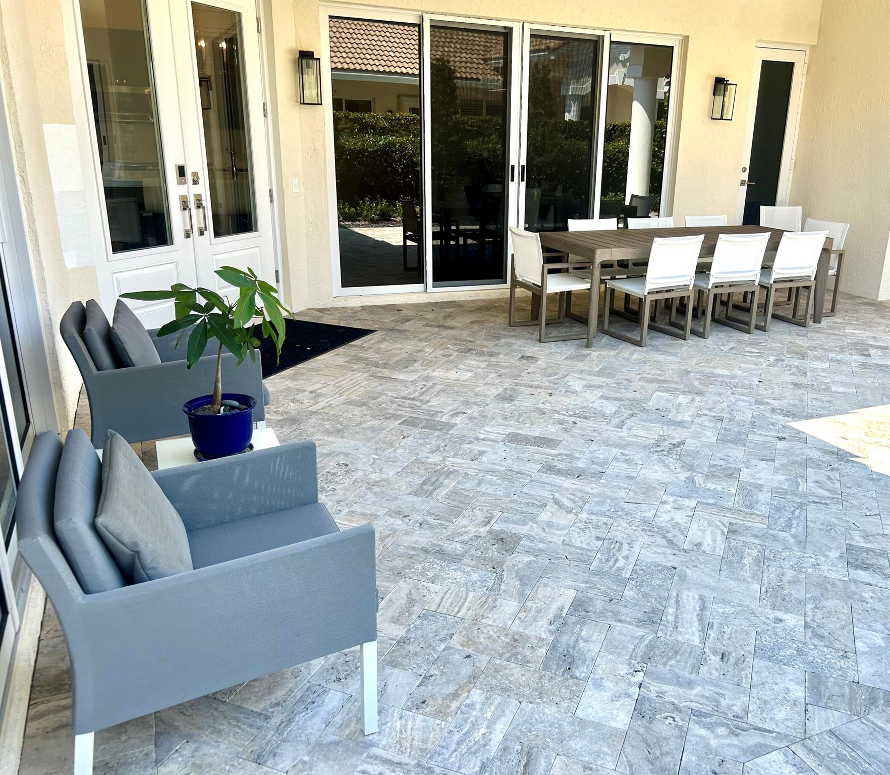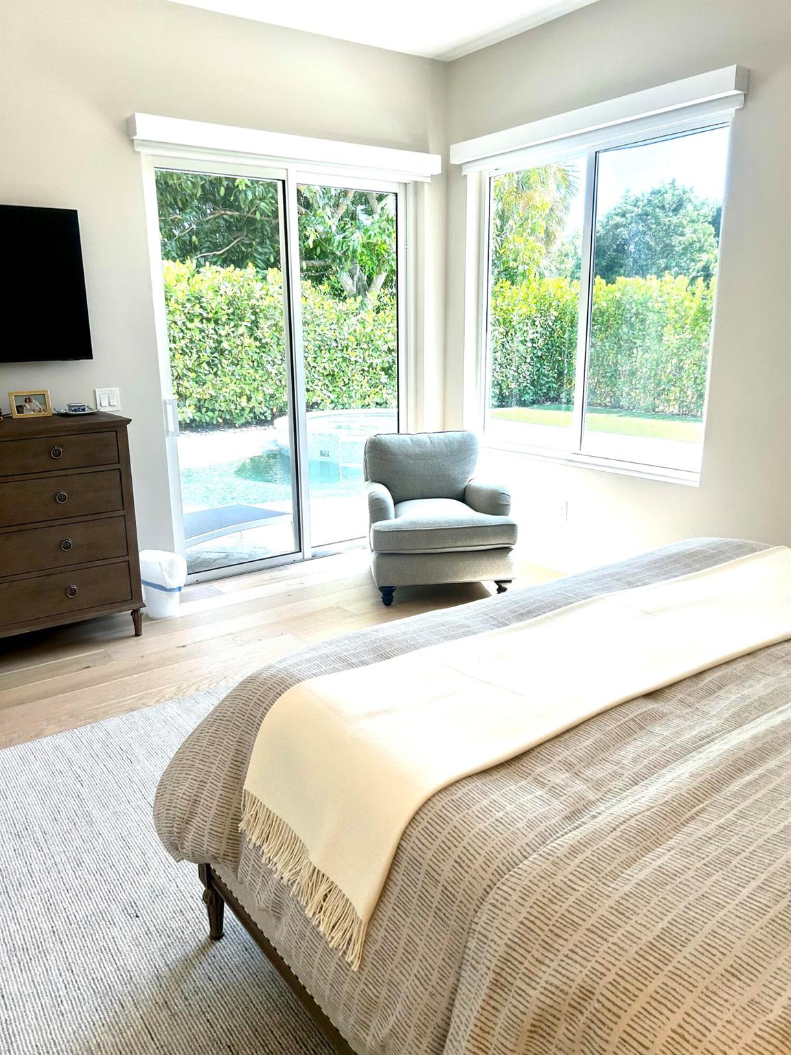 Absolutely stunning 3 bedroom, 3 full bathroom pool home in Shady Oaks of Palm Beach Polo Club. This home has been completely renovated with no detail left untouched. The home features an open floor plan and is light and bright. The kitchen is a chefs dream with induction stove, plenty of storage, all new appliances and wine fridge. The large primary bedroom overlooks the pool and sliders lead from the bedroom and living room to the pool. There is a detached guest room from the main house with a separate entrance from the garage or courtyard, great for friends, nanny, in-laws or staff. Main home is a split floor plan with guest room off laundry room/ kitchen area. Middle courtyard offers many places to sit and relax or enjoy a meal outside. Every window is impact.