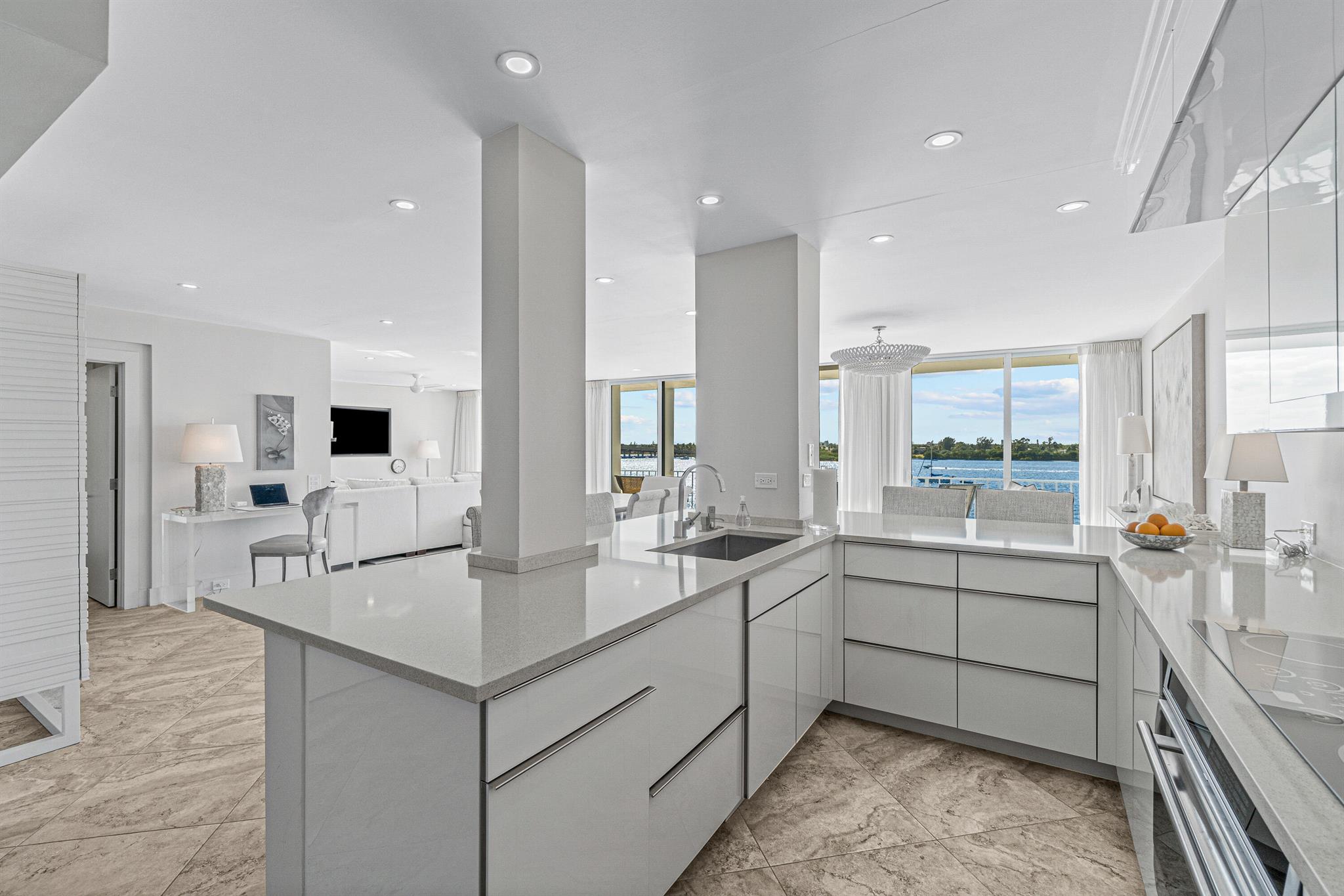 Spectacular Direct Intracoastal views from all rooms in this 3BR/2.1BA apartment in the Cove. Total renovation in light tones with an open kitchen, custom cabinetry, and luxurious baths. Sun filled west and south location with floor to ceiling hurricane doors leading to the large wrap around terrace to relax and enjoy the sunsets and boats. Designer furnishings, fitted closets and electric shades are added features to this wonderful apartment. Poolside cabana included. The Cove has a pool area designed by Mario Nievera, new fitness center, community room lobby. Doorperson A deeded beach path is next to the Four Seasons Resort just across A1A. Short drive to Palm Beach Par 3 Golf Course, Palm Beach Tennis Center, fine dining, shopping and cultural centers. Resort living at its bes