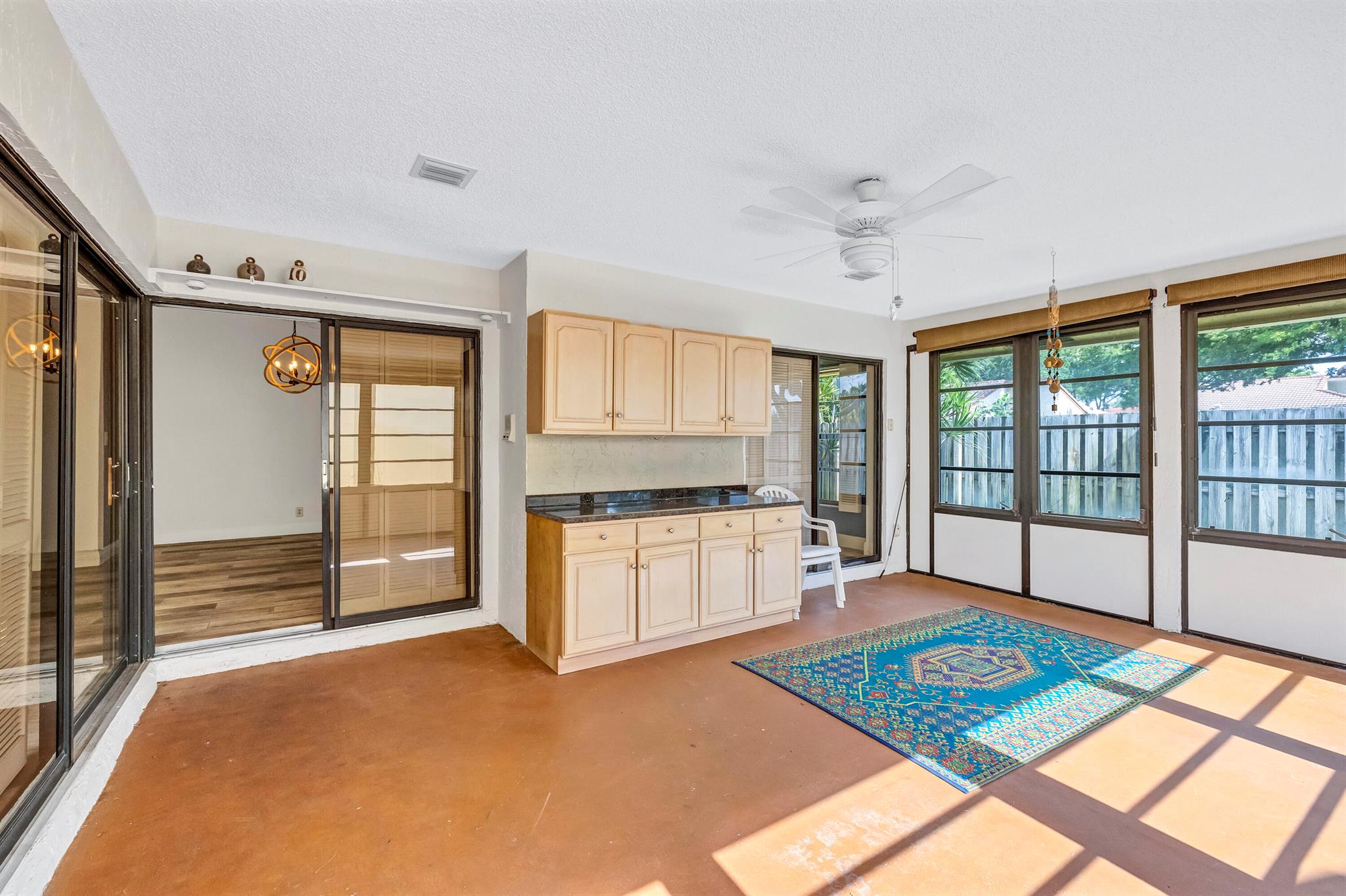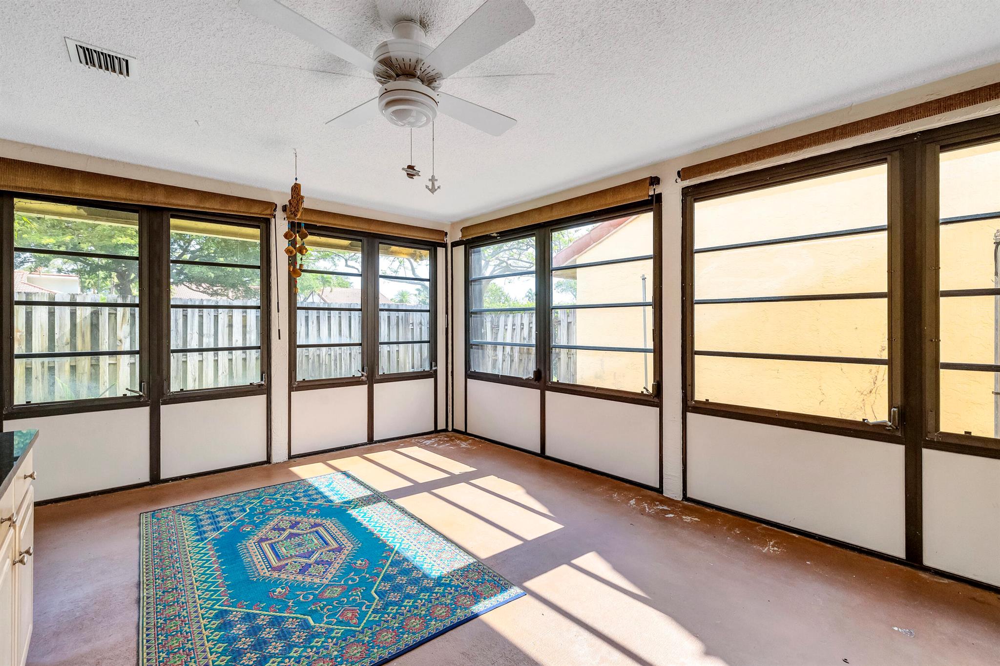 Renovated 3-bed, 2-bath home in pet-friendly Rainberry Lake! Features include a spacious primary suite with separate tub and shower, wood floors, a large kitchen with granite counters and stainless steel appliances.The bright air conditioned Florida room opens to a charming paver patio--perfect for outdoor entertaining. There's also a green space ideal for your pet. Just a short distance to the community pool!Community offers 2 pools, tennis, pickleball, and scenic trails with pet waste stations around a natural lake. Close to shopping, dining, medical facilities, and just a bike ride to world famous Atlantic Ave and the beach!This is South Florida living at its best--don't miss out!