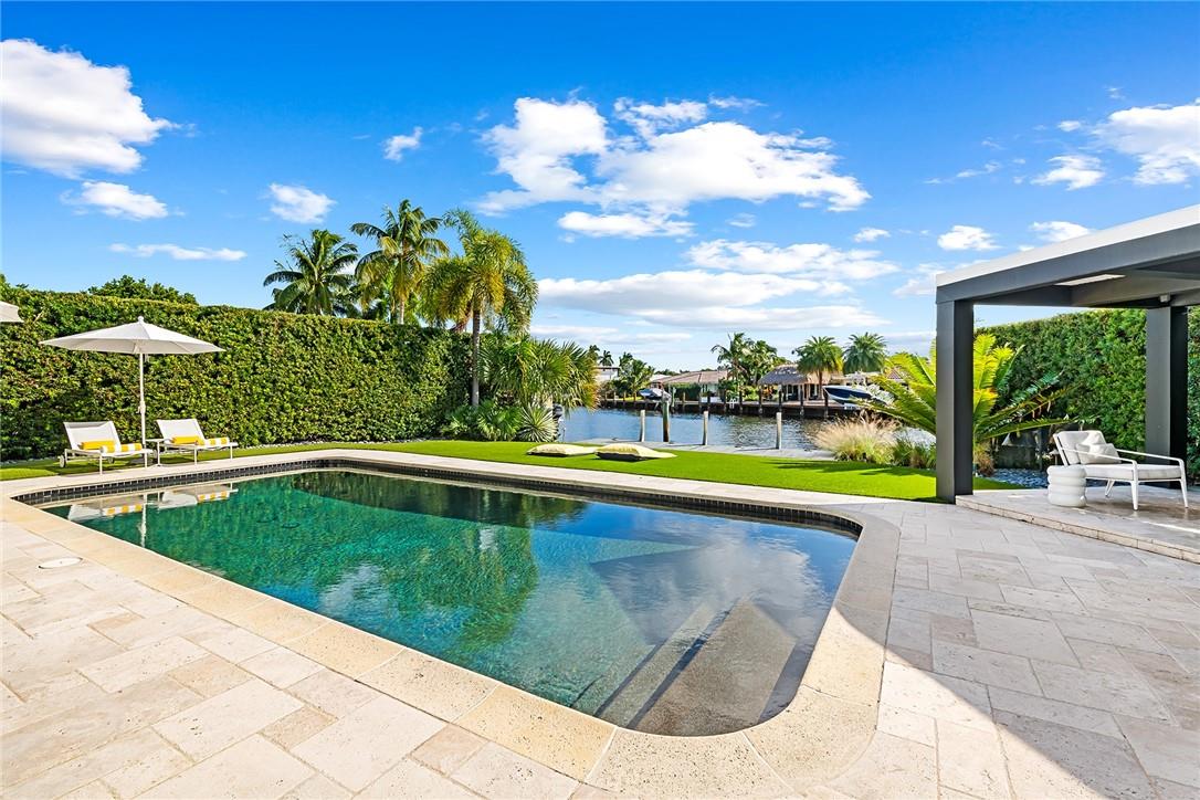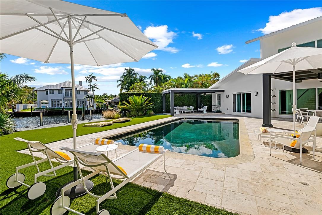 At this bespoke Coral Ridge waterfront estate, every detail is curated to make the most of every moment of each day. A privately gated home with two entrances, Bayview Drive and NE 24th Ct. Enjoy a west-facing courtyard, two verandas, a private dock with ocean access and no fixed bridges, a primary downstairs bedroom & 4 bedrooms upstairs, a grand living room, & a chef’s kitchen that is carefully laid out in a floor plan that allows for large gatherings as well as intimate corners for a book or quiet contemplation. The backyard faces southeast and offers long canal views. This is the perfect private oasis in the Bayview school district, just minutes from Fort Lauderdale Beach & Las Olas Blvd. Some furniture pieces are different from the pictures. Boat Seahunt 24 ft is included in the rent.