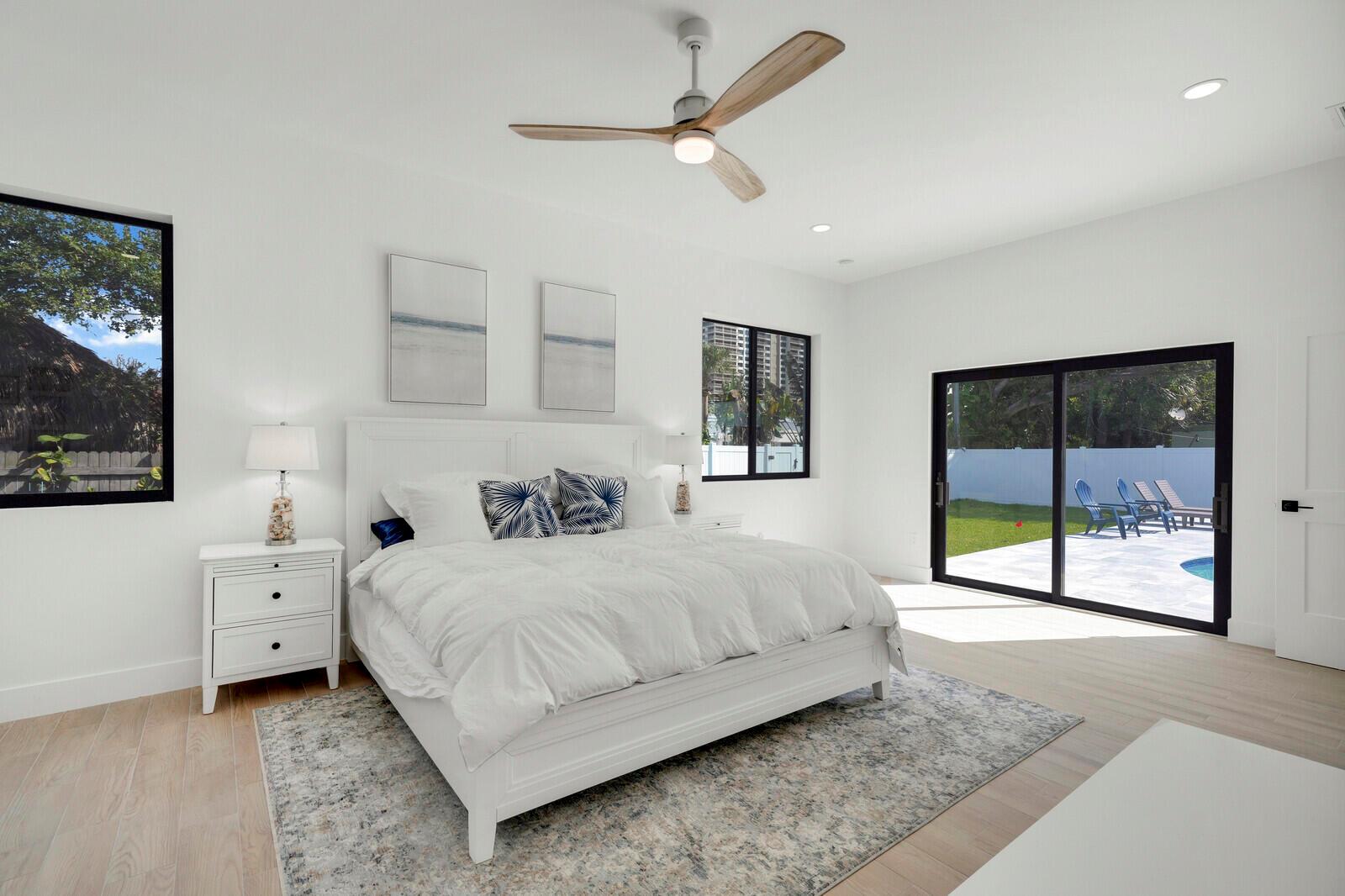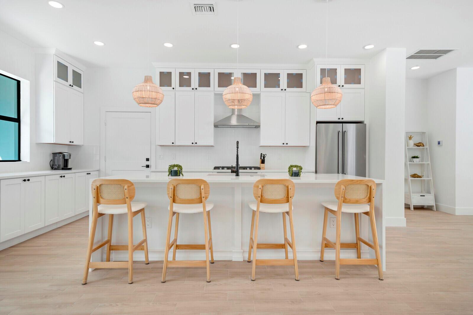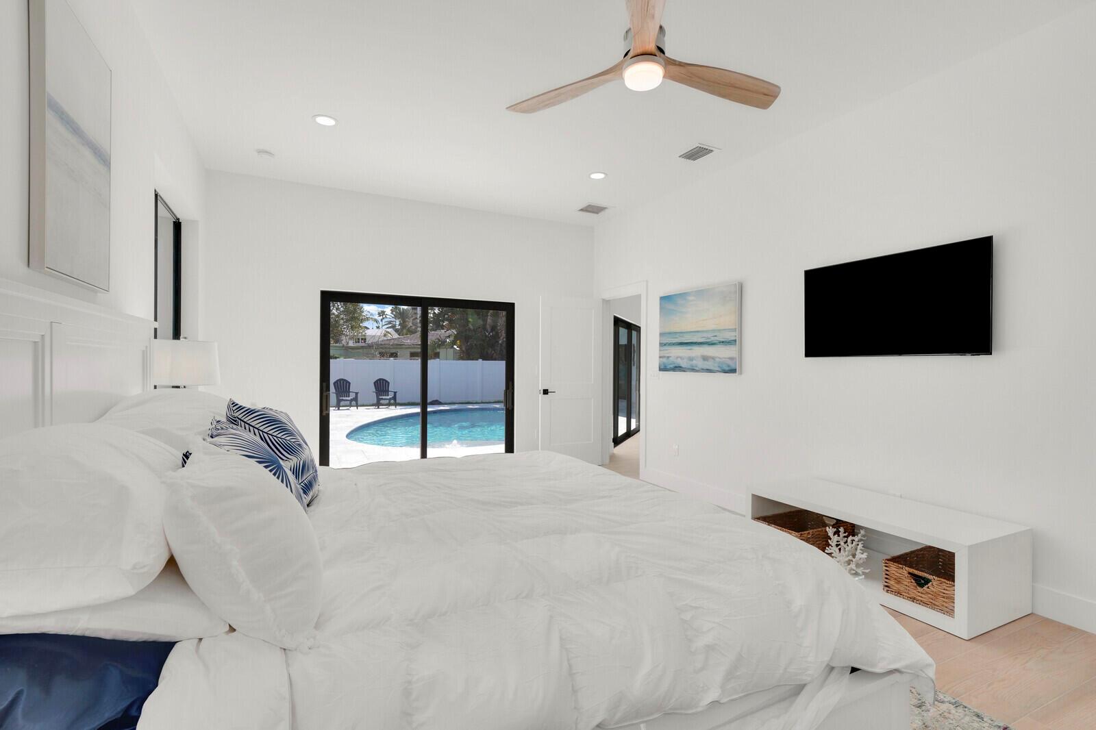 This stylish Singer Island retreat has welcomed celebrities, executives, and luxury travelers seeking the ultimate coastal escape. Just one block from the beach, this beautifully renovated 4-bedroom, 3.5-bathroom home offers over 2,000 square feet of thoughtfully curated living space. The split-bedroom floor plan ensures privacy, with a spacious primary suite on one side and three additional bedrooms on the other--perfect for families, guests, or a dedicated home office.The chef's kitchen boasts premium appliances, sleek finishes, and generous prep space--ideal for entertaining or relaxing nights in. Step outside into your private tropical haven, where a saltwater pool with a heater and a chiller awaits. Surrounded by a sun-soaked patio, it's the perfect spot to unwind under...