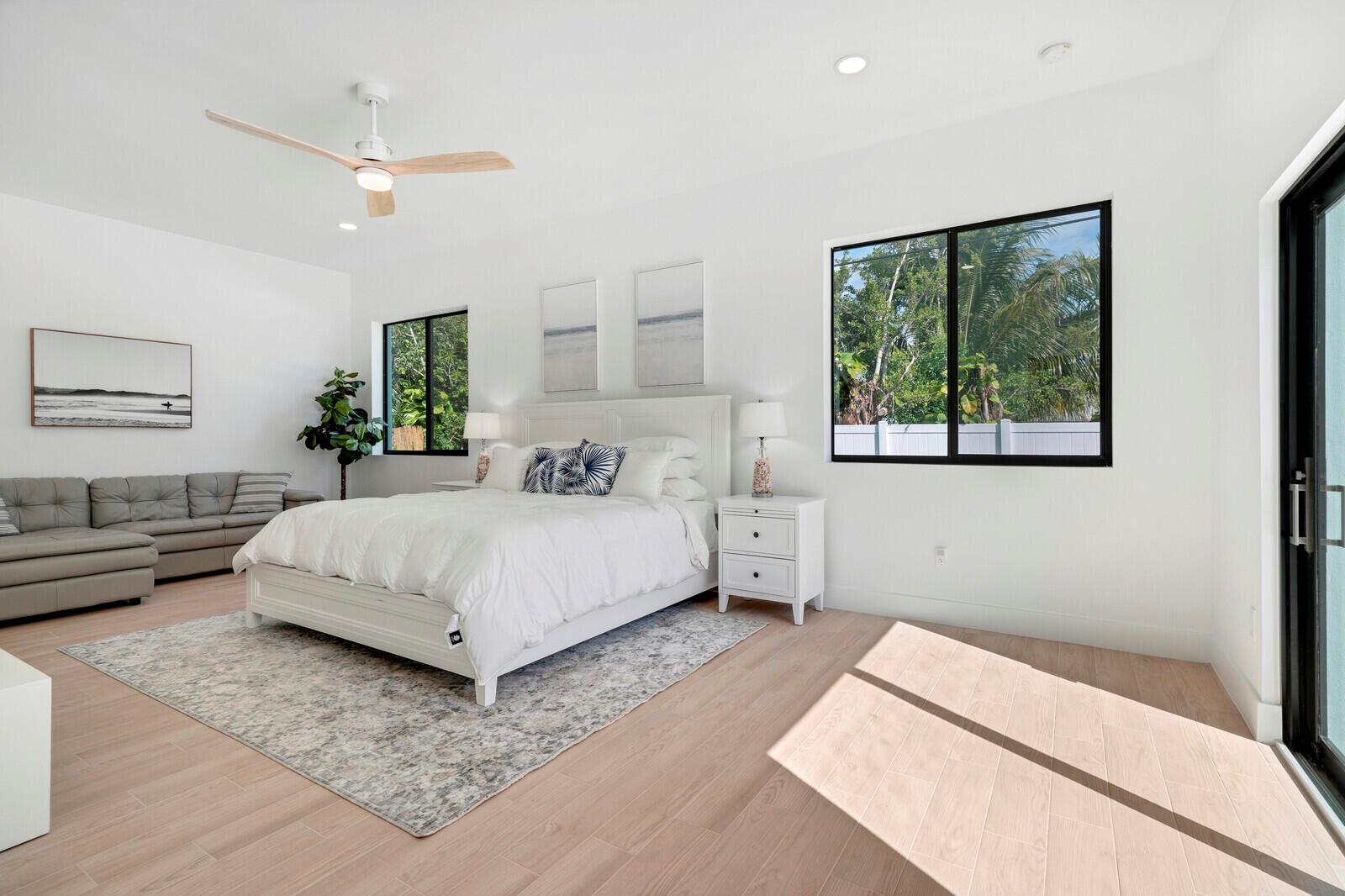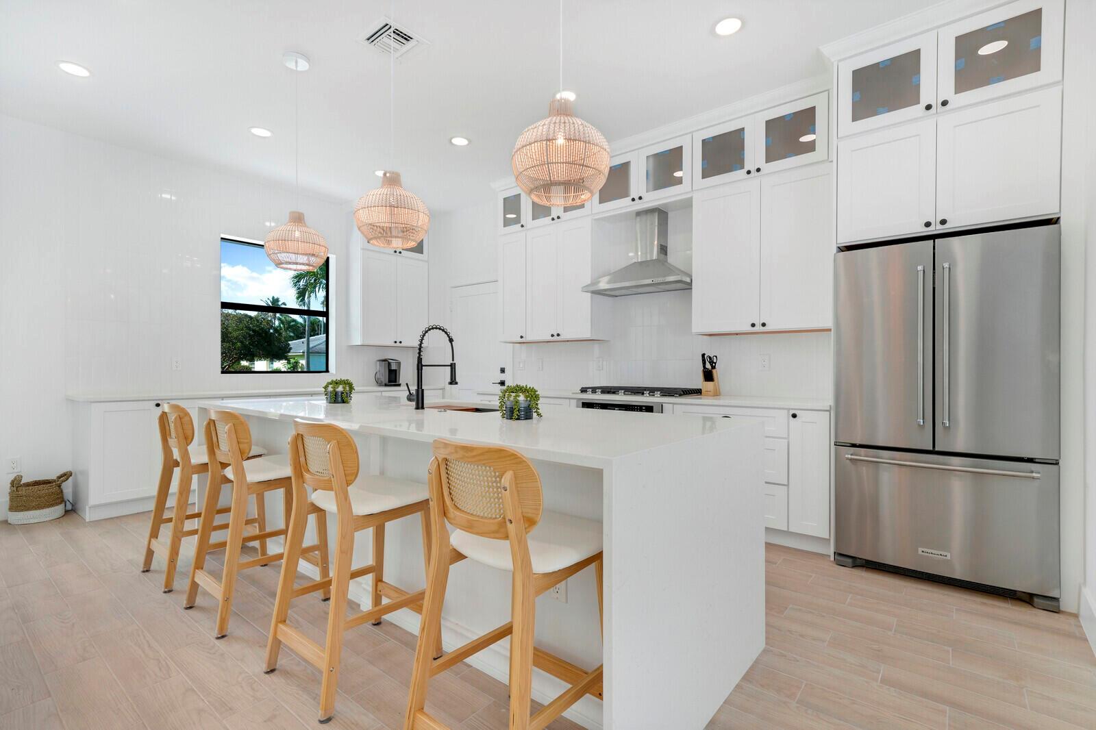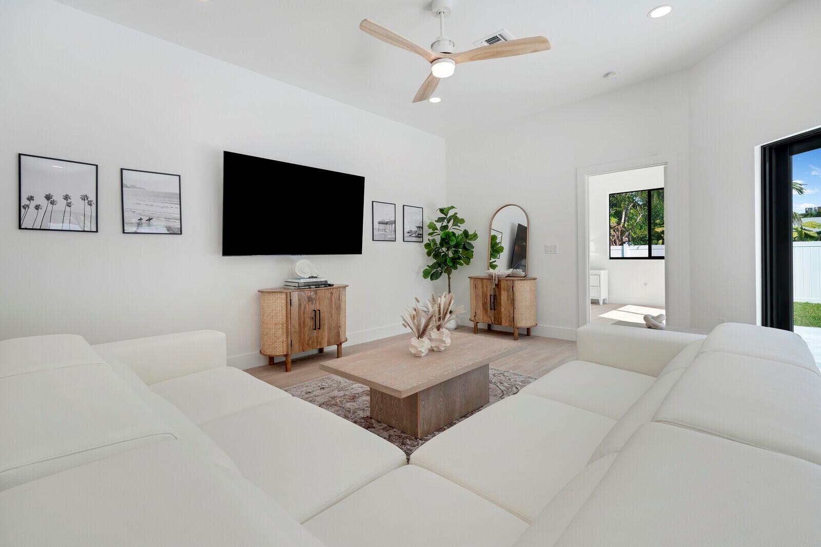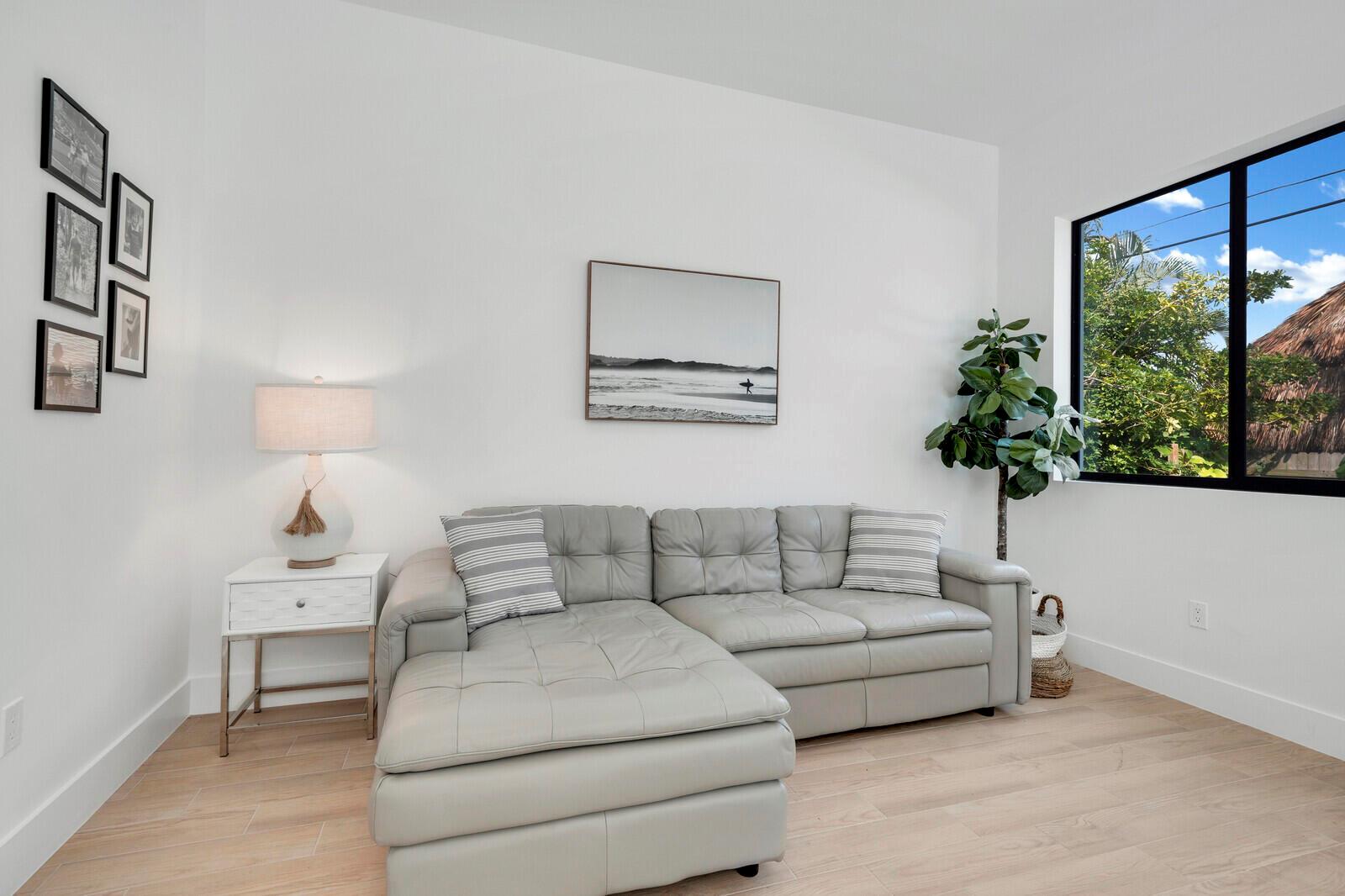 This stylish Singer Island retreat has welcomed celebrities, executives, and luxury travelers seeking the ultimate coastal escape. Just one block from the beach, this beautifully renovated 4-bedroom, 3.5-bathroom home offers over 2,000 square feet of thoughtfully curated living space. The split-bedroom floor plan ensures privacy, with a spacious primary suite on one side and three additional bedrooms on the other--perfect for families, guests, or a dedicated home office.The chef's kitchen boasts premium appliances, sleek finishes, and generous prep space--ideal for entertaining or relaxing nights in. Step outside into your private tropical haven, where a saltwater pool with a heater and a chiller awaits. Surrounded by a sun-soaked patio, it's the perfect spot to unwind under...