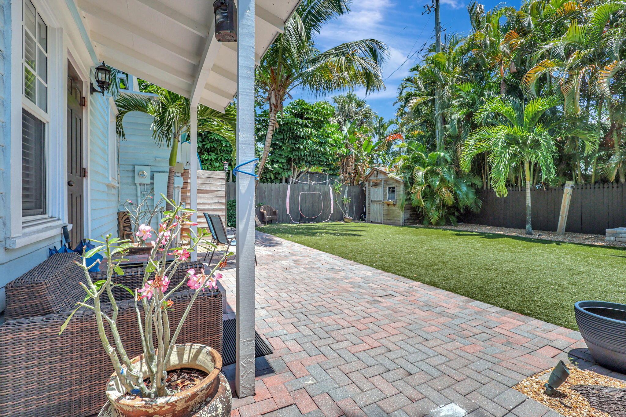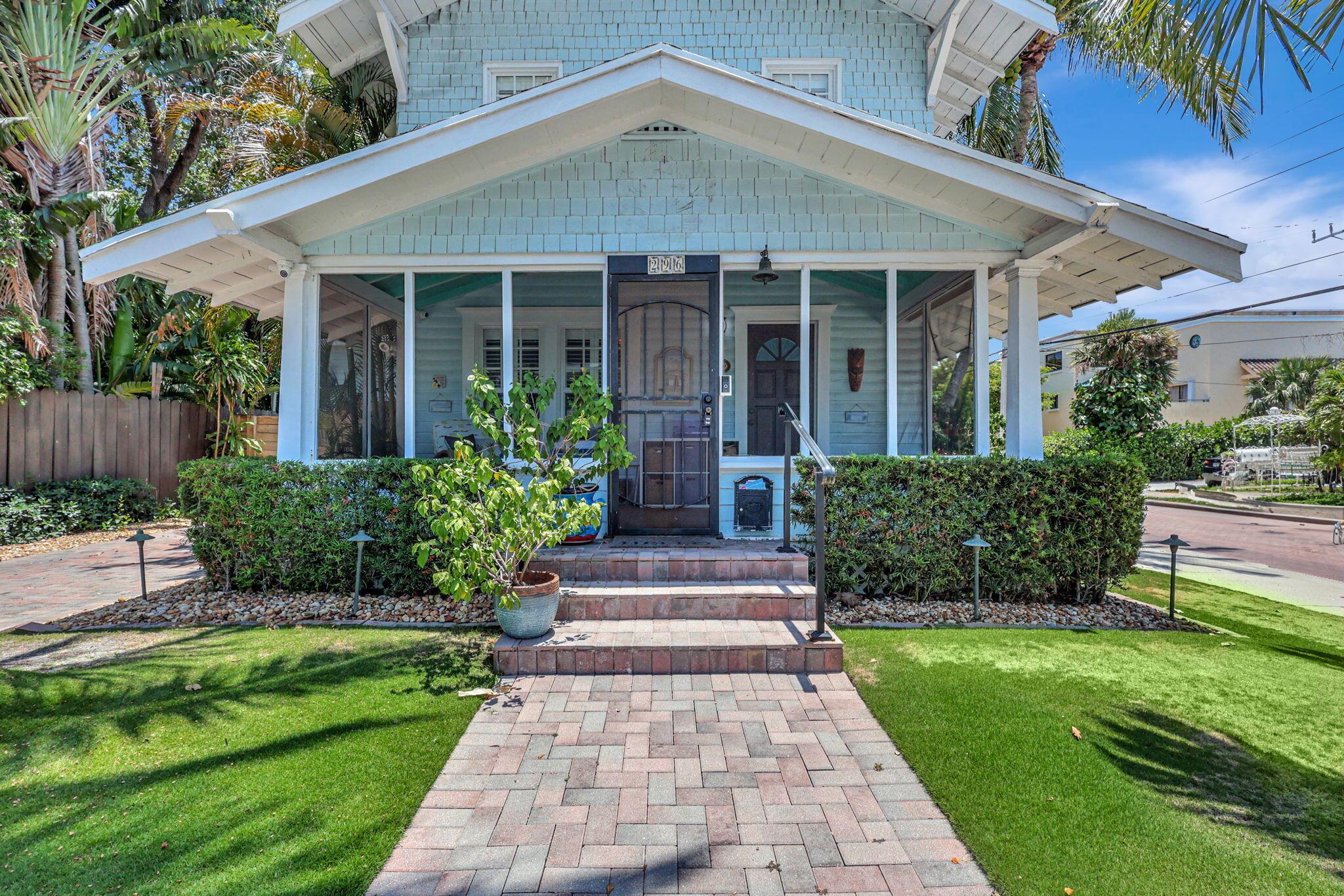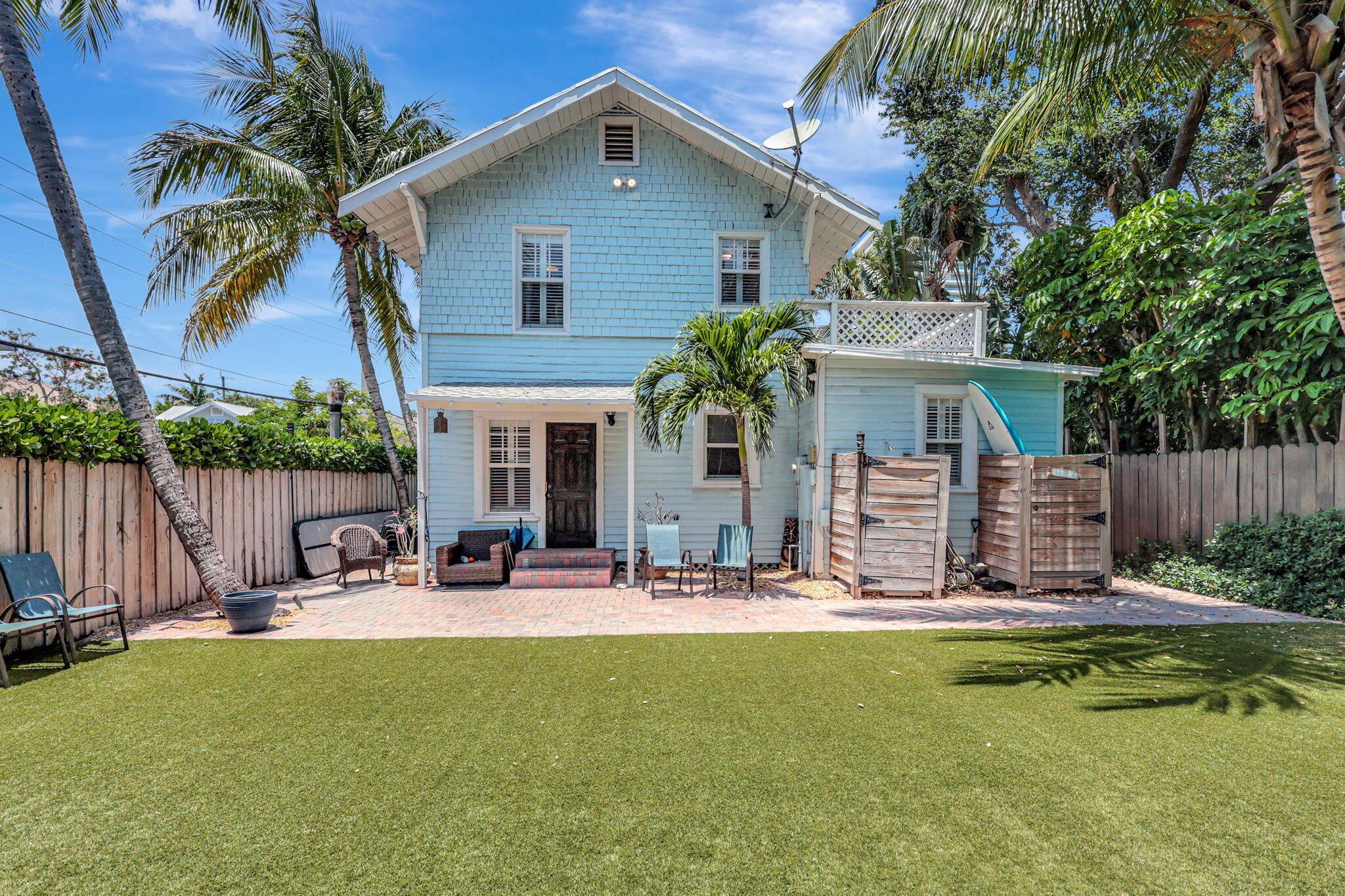 A little slice of Key West located right in the desirable area of Mango Promenade in West Palm Beach! This 4 bedroom, 2 bath home has everything you could want including impact windows, plantation shutters, wood flooring, fireplace, built in closets, white kitchen, quaint front screened porch, custom landscaping and even a comfortable sized backyard with artificial turf for easy maintenance and an outdoor shower! Two AC units and both replaced in the last 4 years. Completely redone second floor patio as well! Truly your own little beach bungalow that is walking distance to downtown, Palm Beach Island and only one block to the intracoastal! No HOA either! Come be a part of one of the most sought after areas in West Palm Beach!
