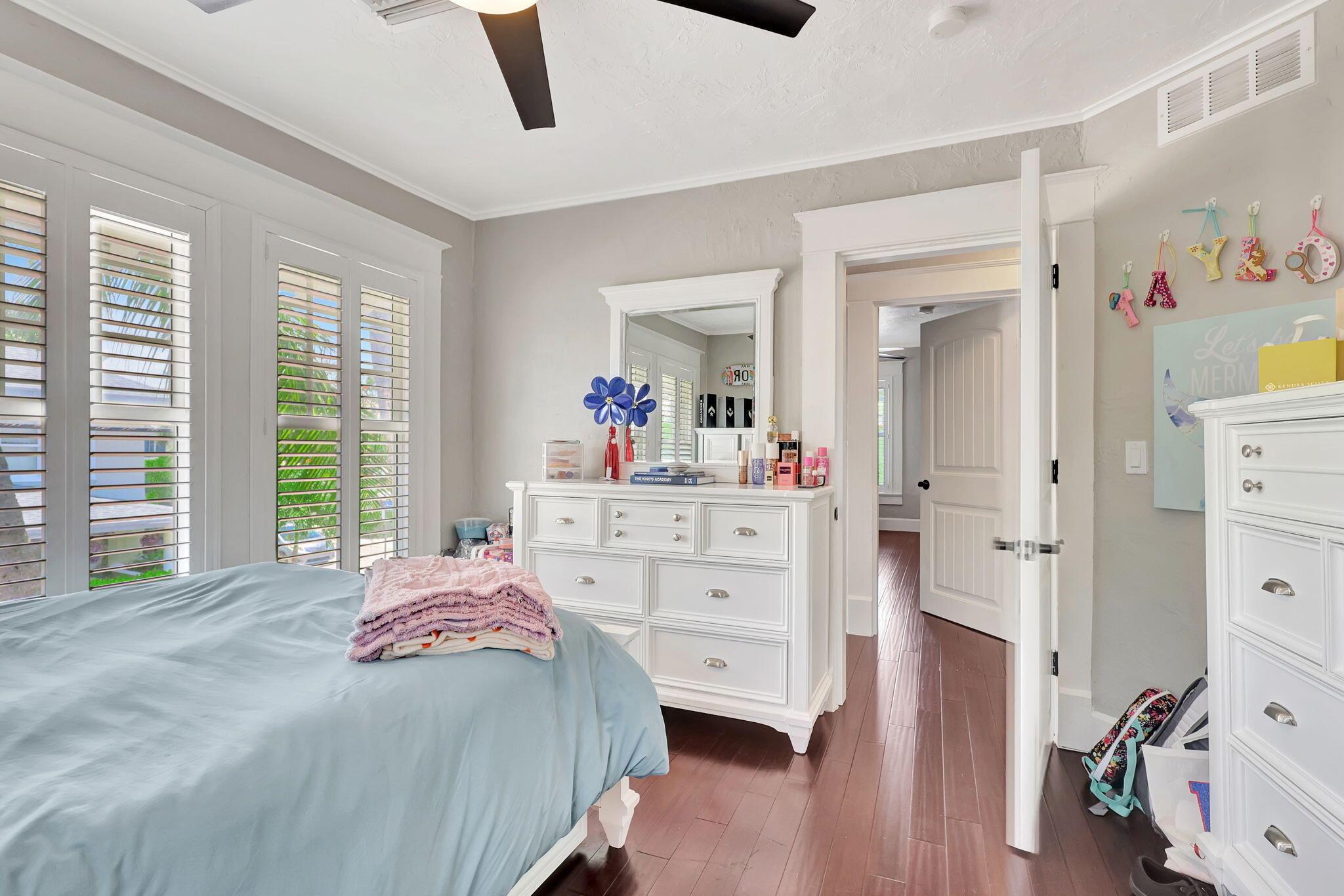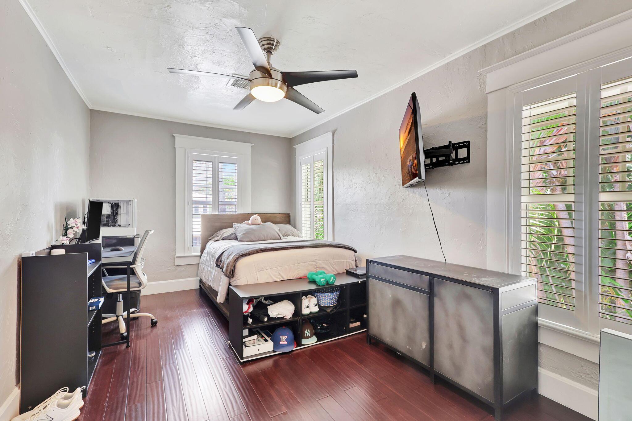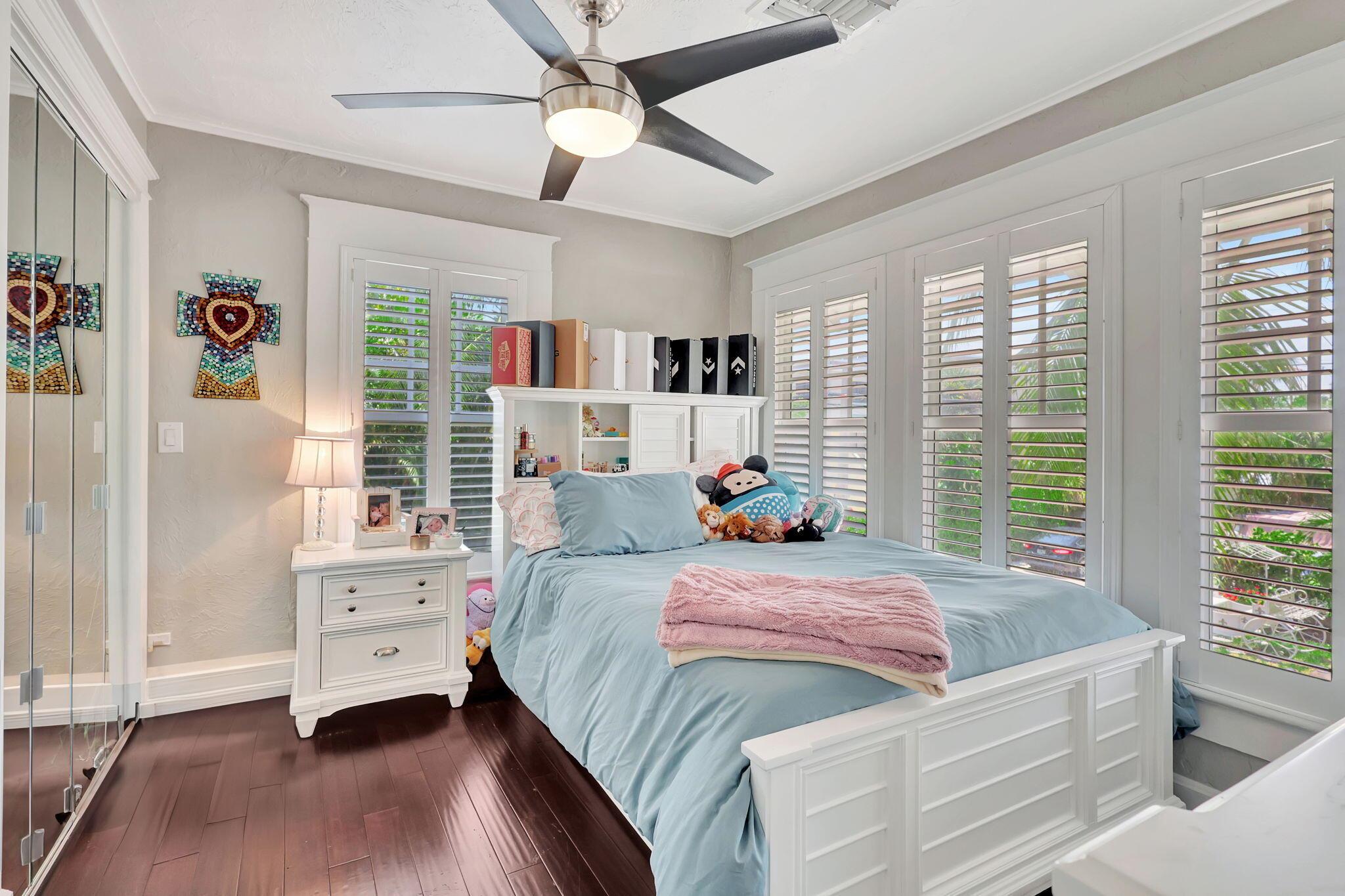 A little slice of Key West located right in the desirable area of Mango Promenade in West Palm Beach! This 4 bedroom, 2 bath home has everything you could want including impact windows, plantation shutters, wood flooring, fireplace, built in closets, white kitchen, quaint front screened porch, custom landscaping and even a comfortable sized backyard with artificial turf for easy maintenance and an outdoor shower! Two AC units and both replaced in the last 4 years. Completely redone second floor patio as well! Truly your own little beach bungalow that is walking distance to downtown, Palm Beach Island and only one block to the intracoastal! No HOA either! Come be a part of one of the most sought after areas in West Palm Beach!