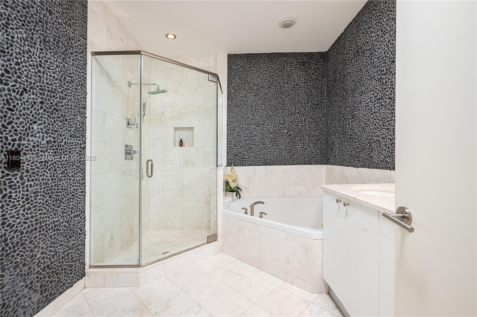 Experience luxury in this exquisite 3BR/2.5BA condo in the prestigious Brickell Key. This impeccable condo boasts sophisticated finishes, remodeled bathrooms, lighting system, multiple balconies with direct stunning ocean views. Including wood kitchen cabinetry, granite countertops, SS appliances, electric blinds. High-end linen curtains, marble & laminate wood floorings. World-class amenities offered: 2 tennis courts, a golf putting area, indoor racquetball & basketball courts, a heated pool, jacuzzi, BBQ area, children's playroom, and an opulent two-story fitness center. The island offers elite conveniences a gourmet marketplace, a coffee shop, and a scenic jogging path. 2 parking assigned (side by side). Complimentary valet for guests. Touch-ups recently finished (freshly painted).