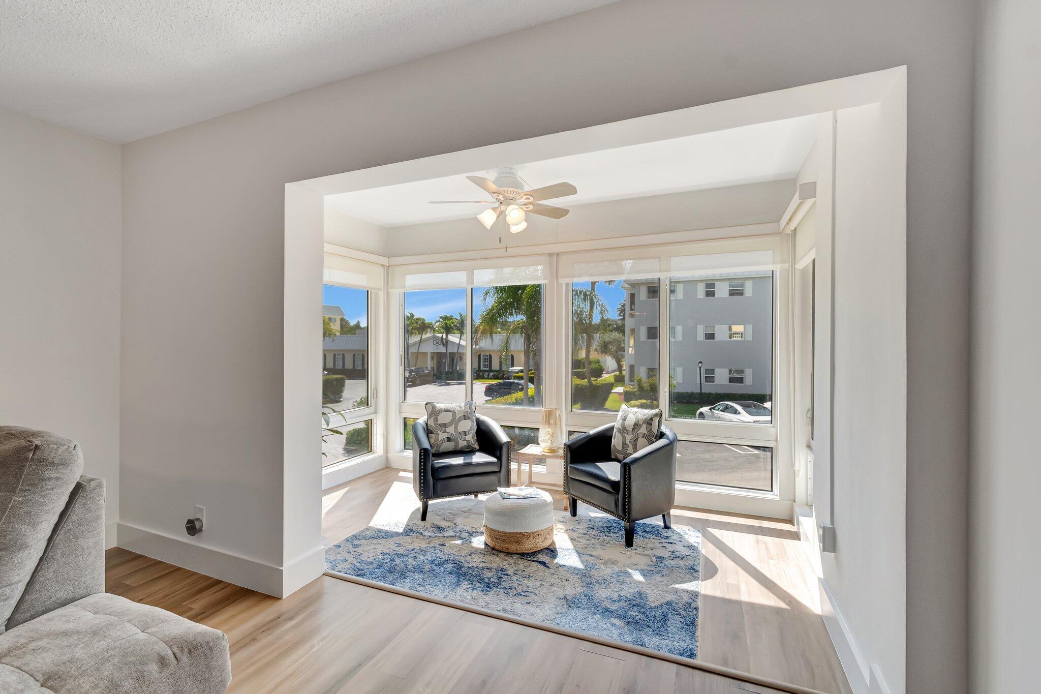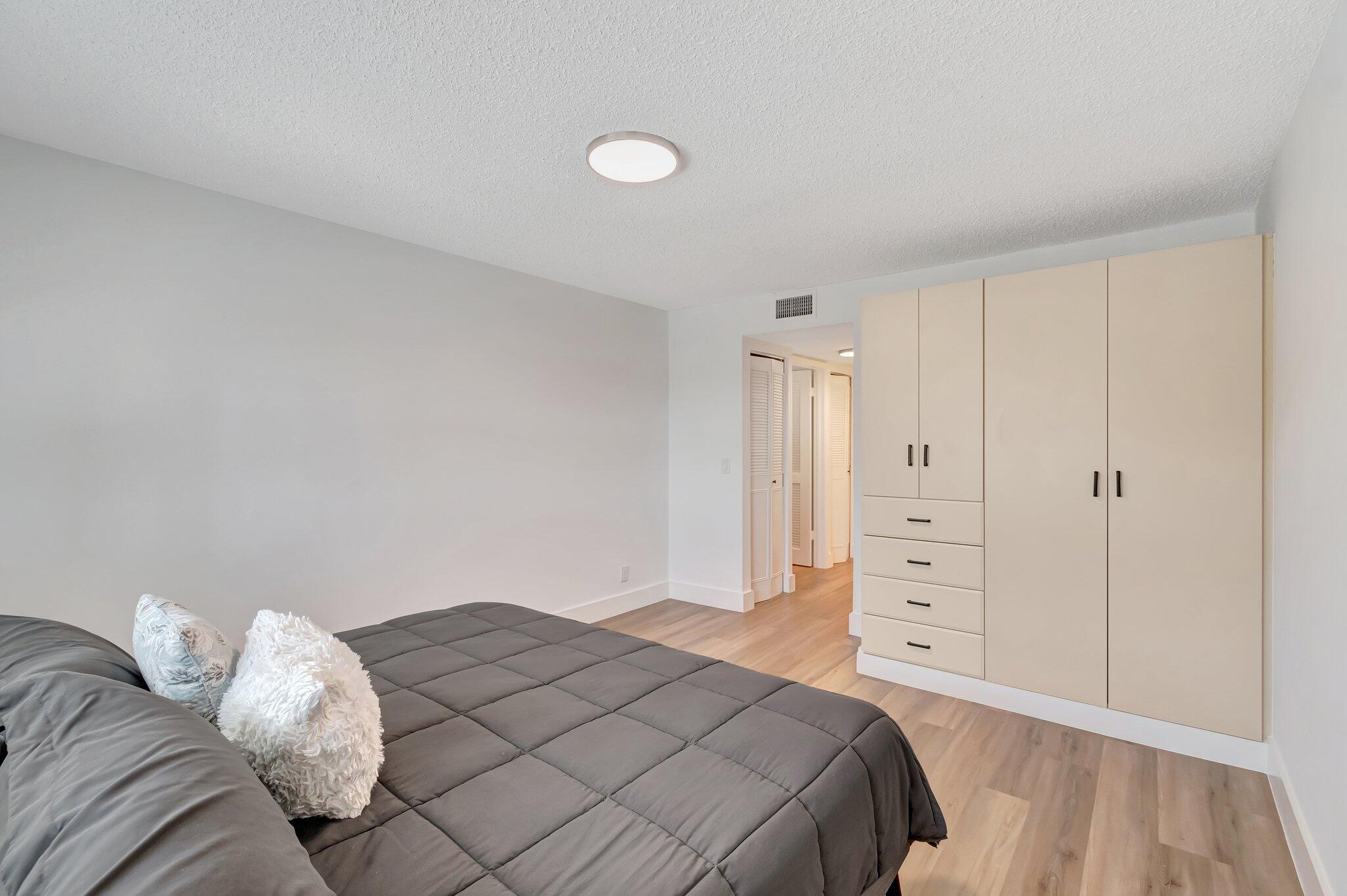 Welcome to this beautifully remodeled 2-bedroom, 2-bath residence located in the highly desirable Colonial Club, an active 55+ Intracoastal waterfront community in Boynton Beach.This spacious second-floor corner unit features two large master suites, each with its own en-suite bathroom and generous closet space, perfect for full-time living or hosting guests. The condo has been completely renovated from top to bottom, including a brand-new roof, new front doors, updated interior doors, remodeled bathrooms, bedroom wardrobes, and high-end finishes throughout.Enjoy the light-filled open layout, a modern kitchen with stainless steel appliances and quartz countertops, and a hurricane impact glass-enclosed patio--ideal for year-round enjoyment.