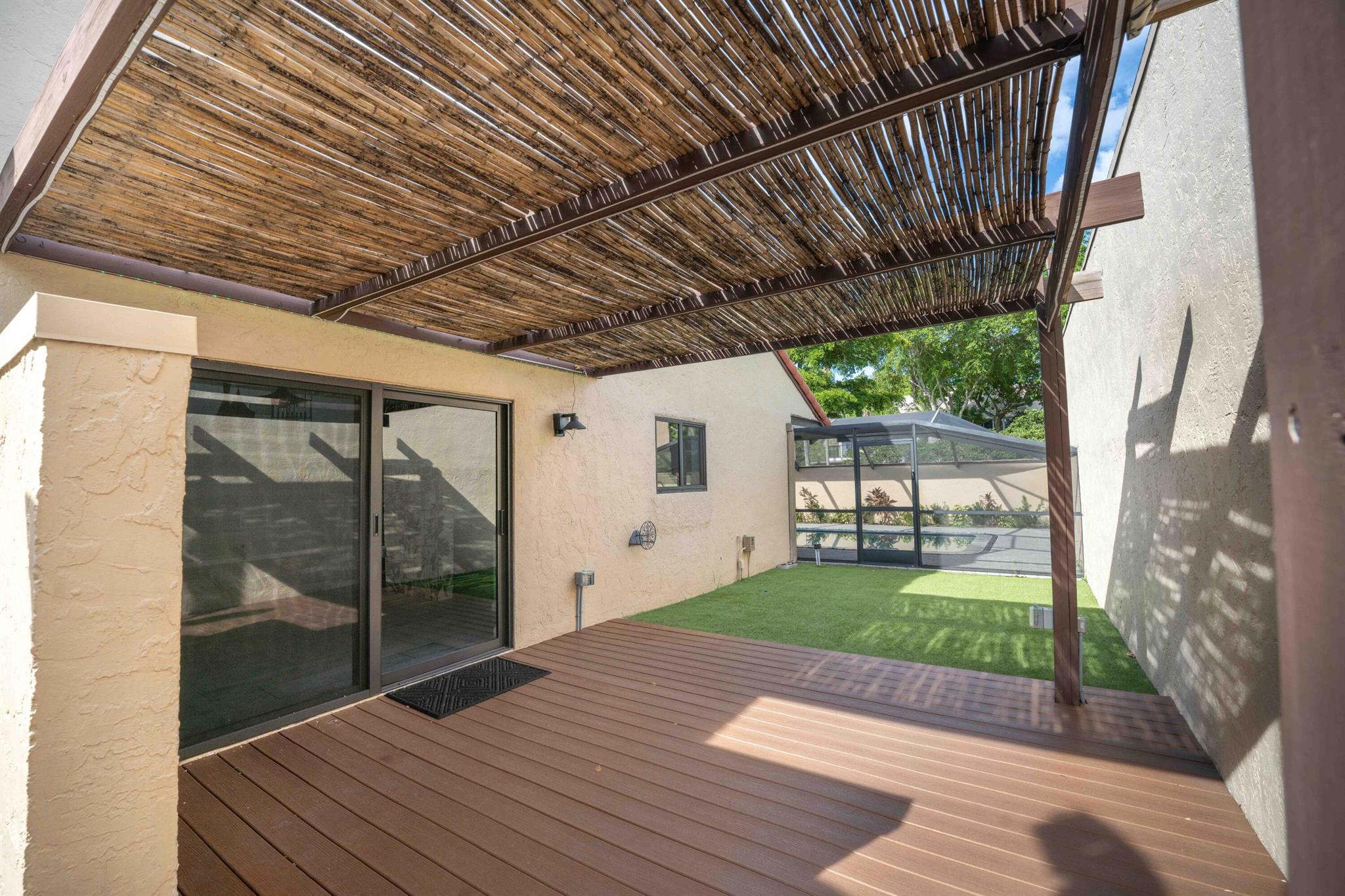 Beautifully updated 3BR/2BA pool home with den in desirable Boca Raton neighborhood. Hurricane-impact windows and doors. Smart home features include interior/garden lighting, garage door with multi-profile settings, and smart irrigation system. Kitchen boasts GE Profile dual-drawer dishwasher and double oven electric range. Enjoy a heated saltwater pool, turf grass, and dining room that opens to a pergola-covered deck--perfect for entertaining. The home also features built in speakers in the living room, den & garage! Finished garage with A/C, custom storage, expansive closets with drawers in both hallway and garage. The community is close to places of worship & includes a community pool!. The rental price includes cable, HBO, WIFI, and the front landscaping! including pool maintanence