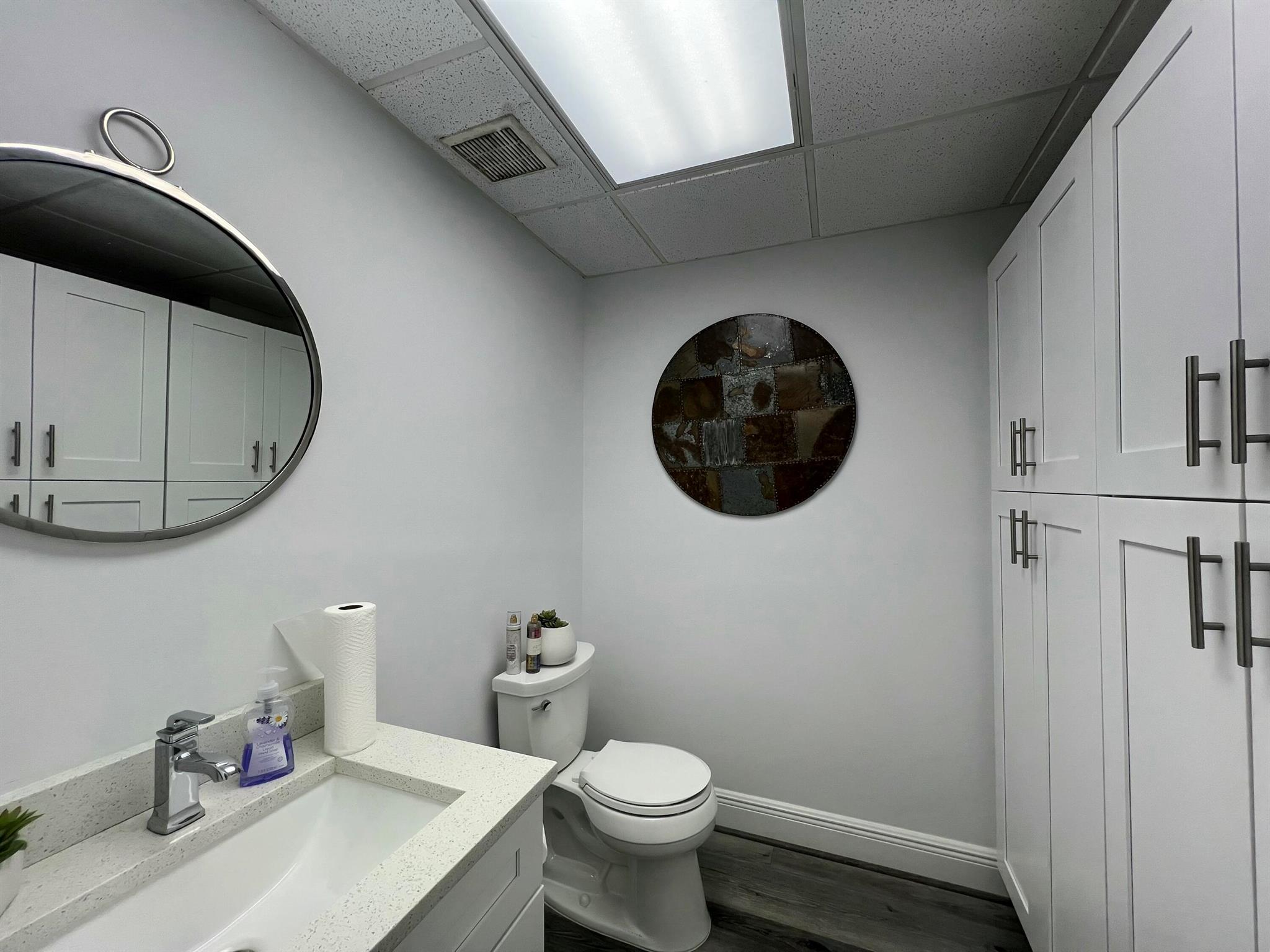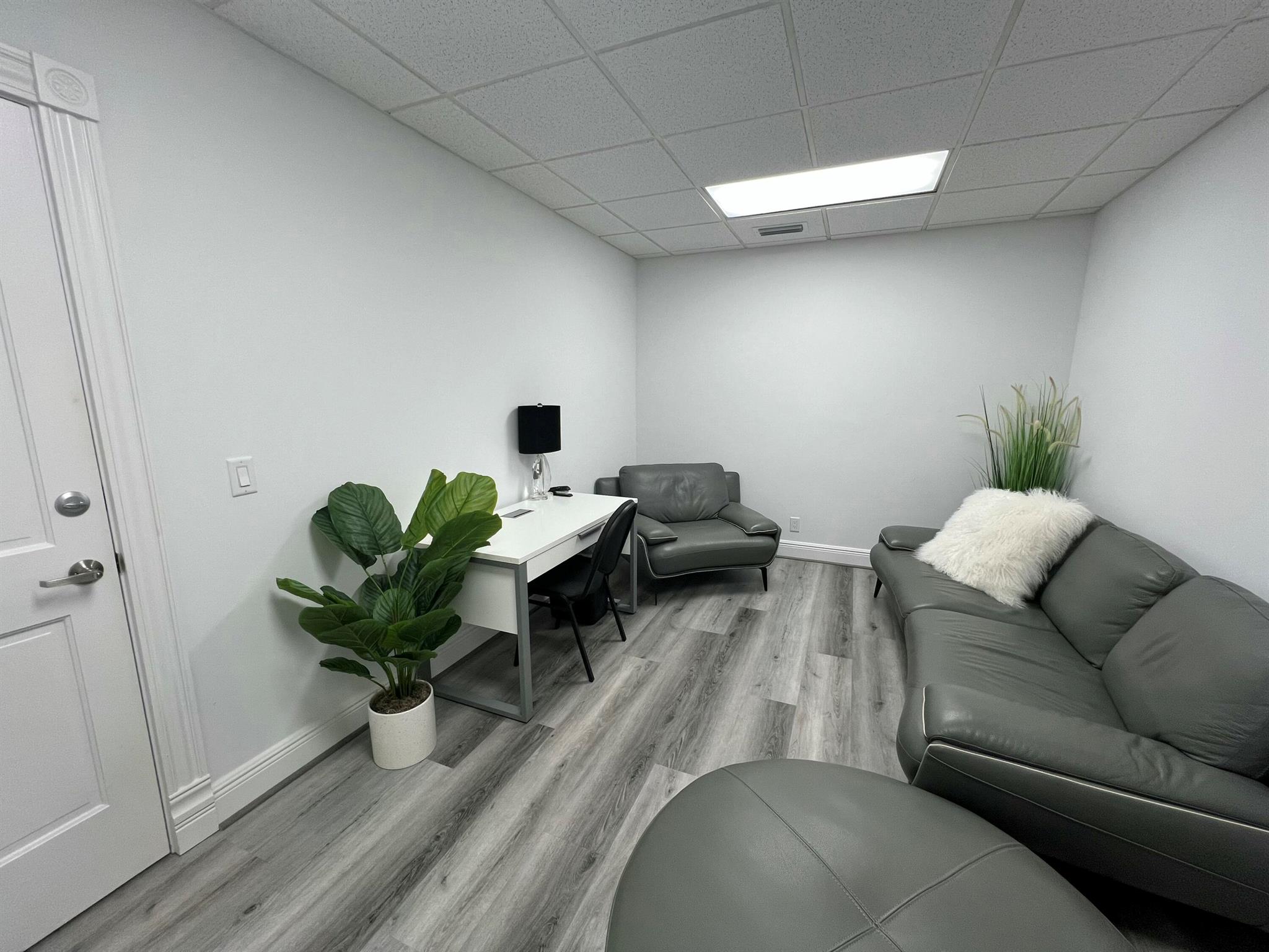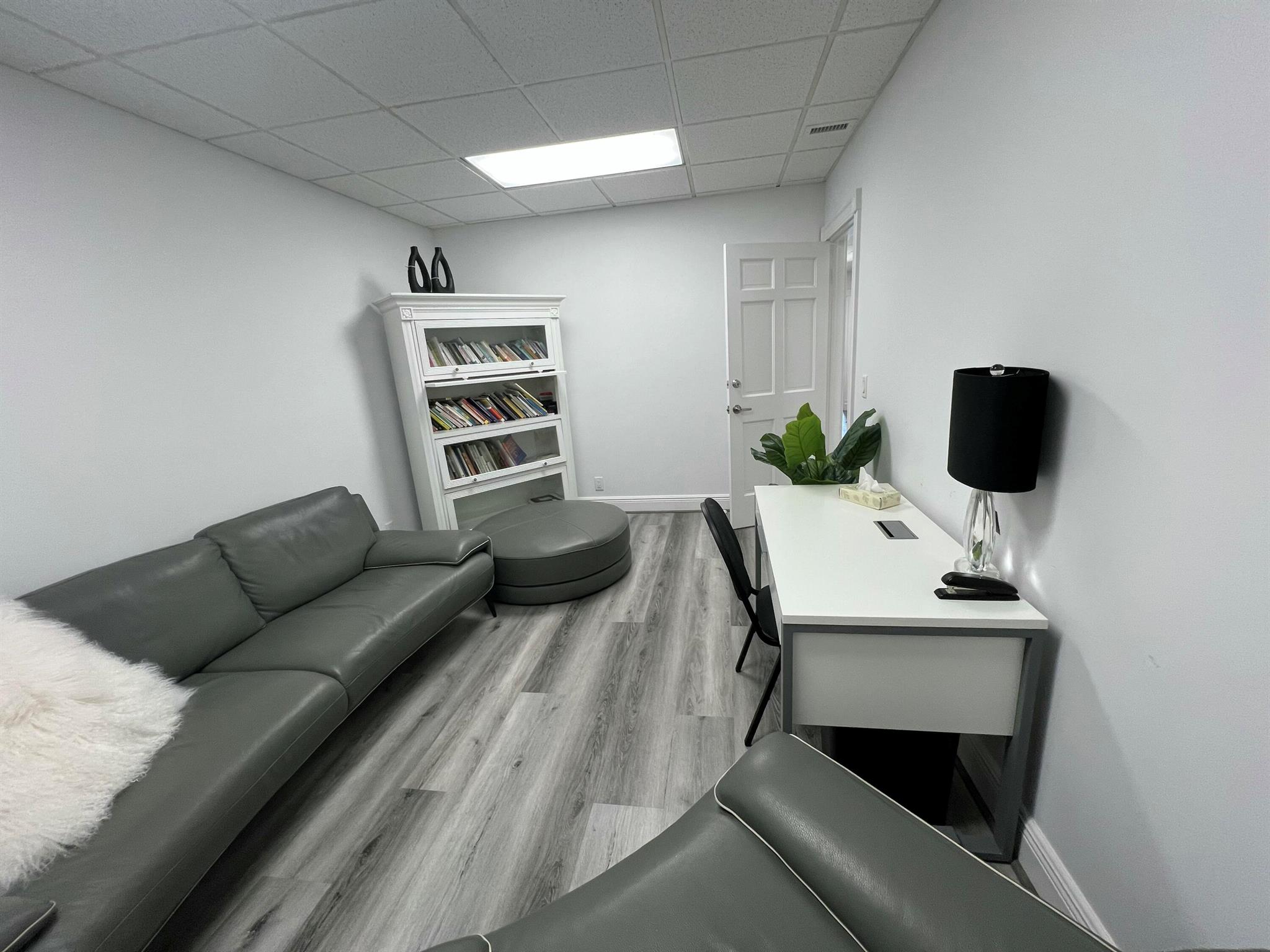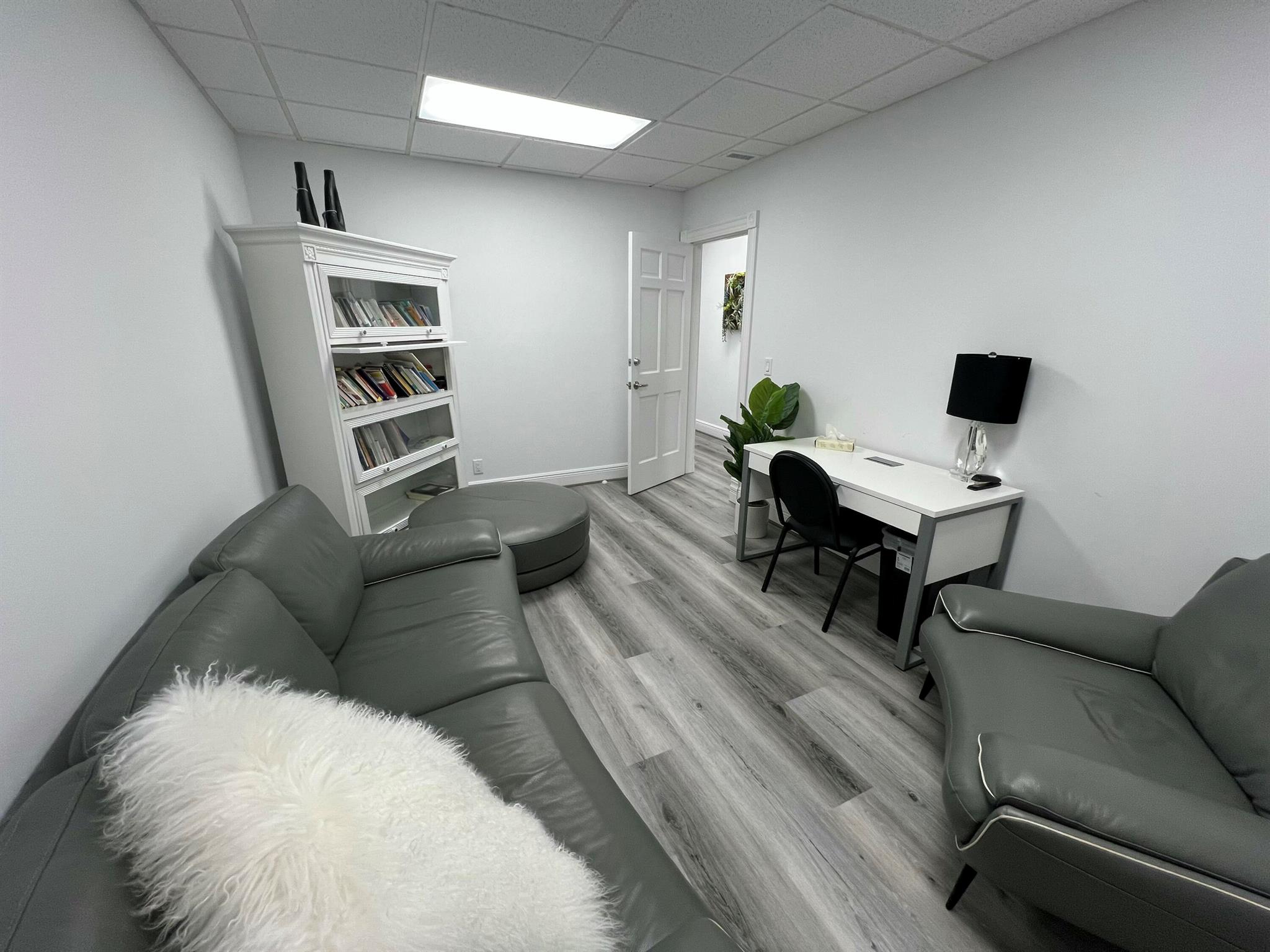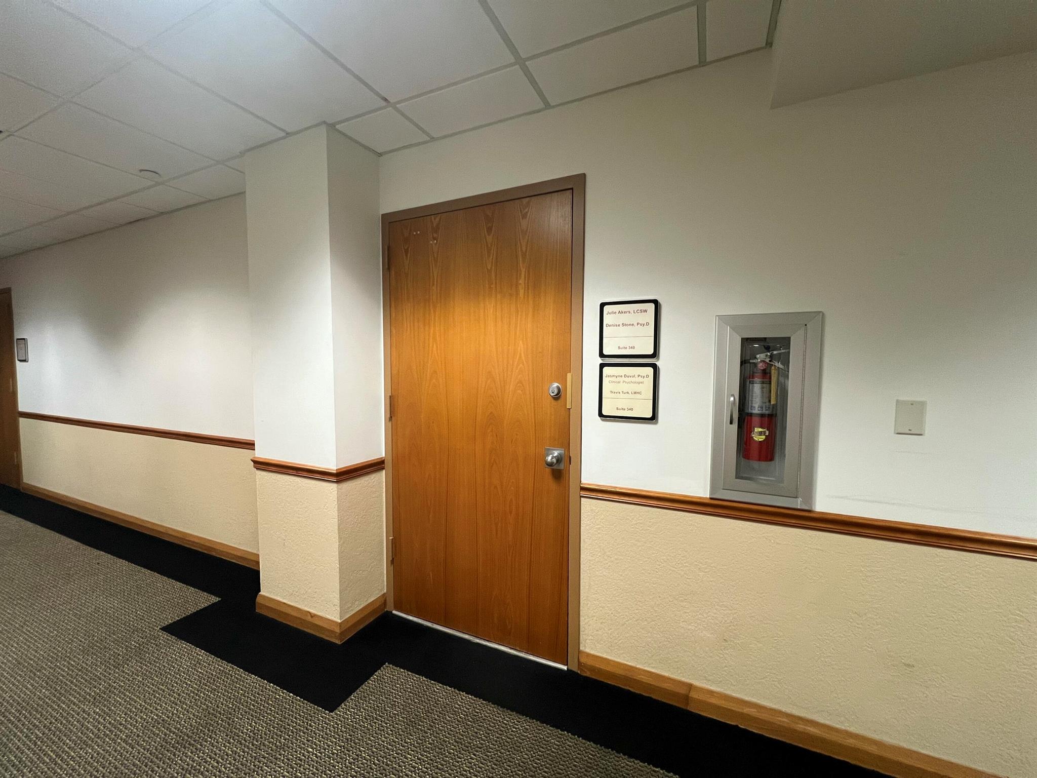 FULLY FURNISHED PRIVATE OFFICE in shared suite. $750 mthly/includes utilities and Includes access to waiting area, bathroom, and kitchenette. Private storage area can be added to lease as well as potential to add covered parking space. Private mailbox for suite also included. Building has elevator access to unit on 3rd floor and tons of open parking. Join quiet semi-private suite of professionals. Can also be rented unfurnished.