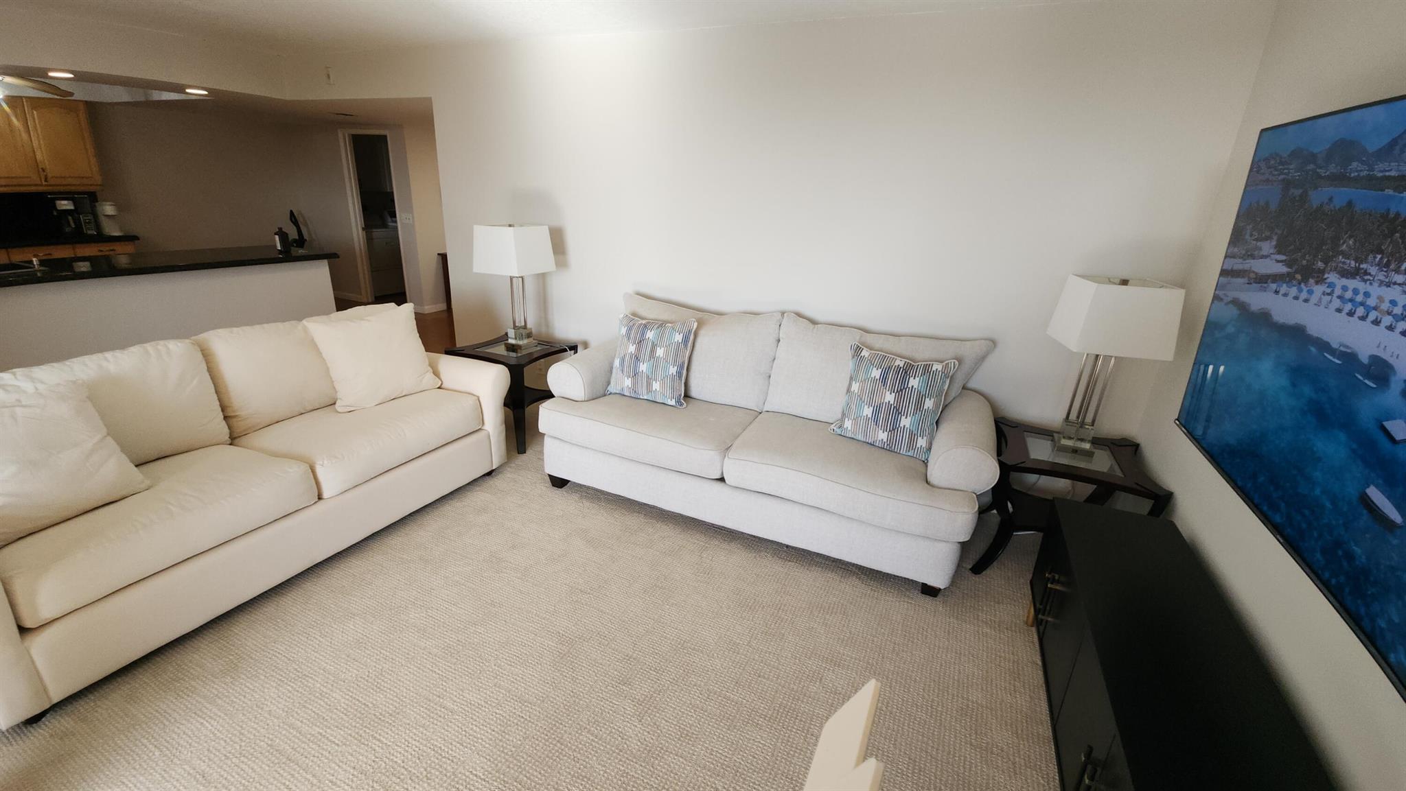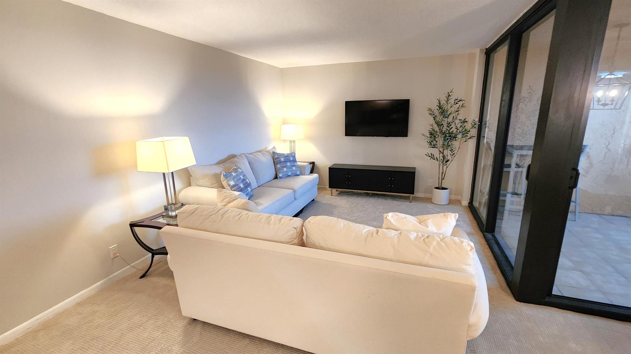 Awesome off seasonal fully furnished rental. Top floor, available through December 2025, tastefully furnished, recently painted, open kitchen overlooking the living area. Great lake views, all impact windows, immaculate. 30 days minimum, rent includes water, cable, wifi and monthly allowance for electric consumption. Walk to shopping and entertainment, minutes from I-95, FAU and downtown Delray. 2 pools, fitness, hot tub, clubhouse, and more, fast approval.