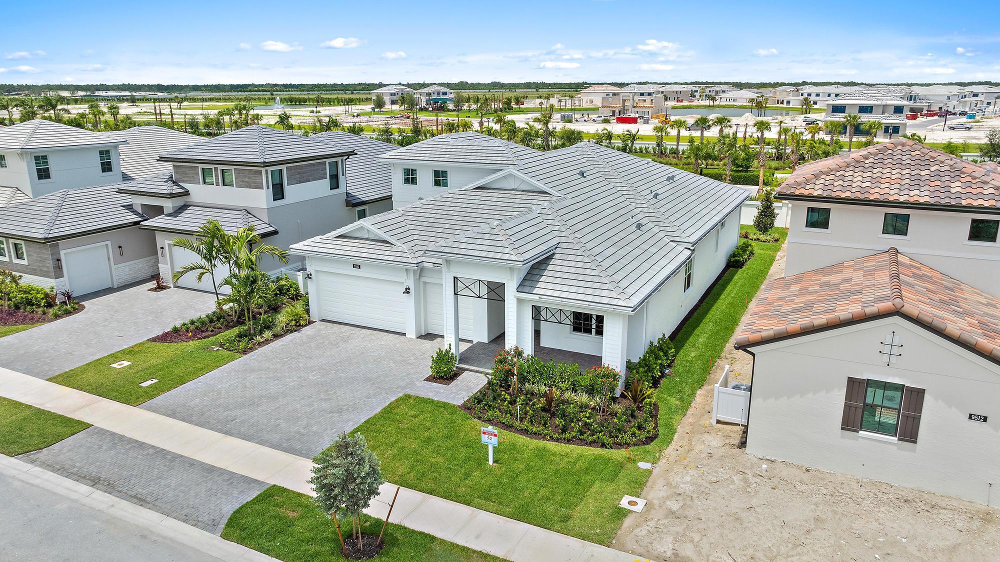 This brand-new Paige floorplan built by Kolter Homes is located within the gated community of L'Ambiance at Avenir. This home includes 4 bedrooms 4 bathrooms, in which the 4th bedroom and bathroom are a 2nd floor bonus option. This Paige also includes a 3-car garage and a 16' wide by 10' tall sliding impact glass door leading to the lanai. The owner's suite includes the deluxe shower with an oversized walk-in closet, and the flex room offers the perfect space for multi-purpose. There is a 5' privacy wall on the lanai with gas, electric and water connections and the backyard offers ample space for your entertaining needs!