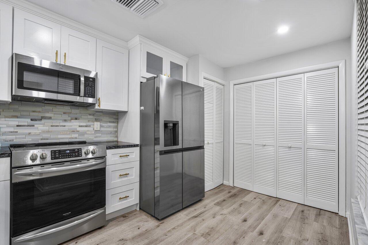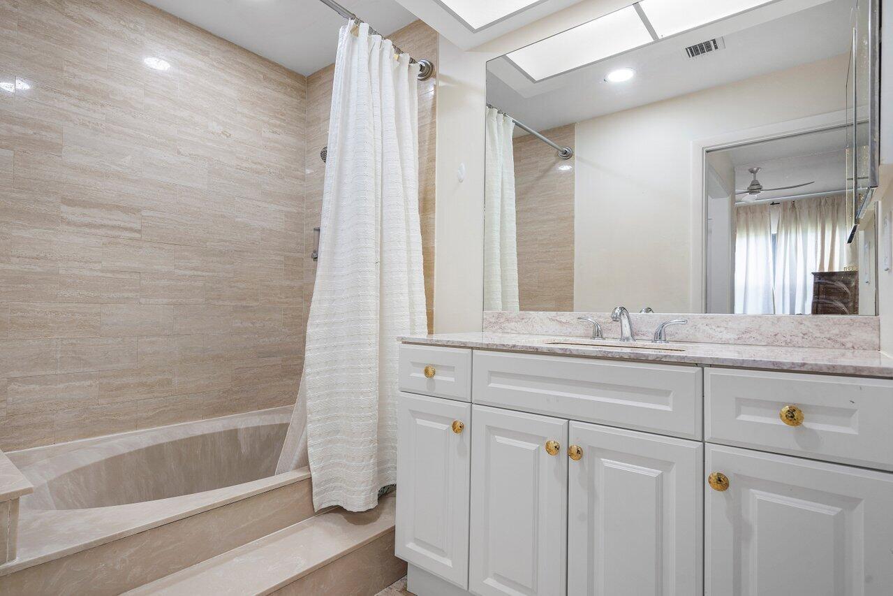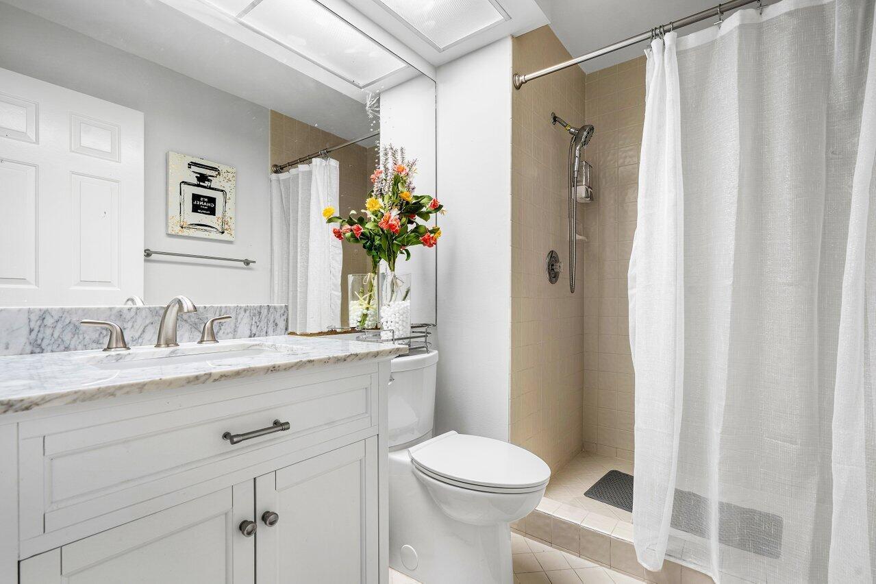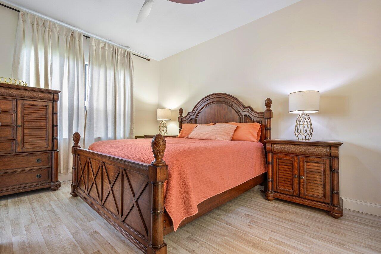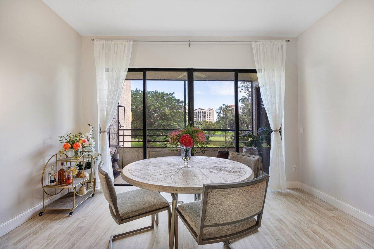 Discover the perfect blend of elegance and comfort in this beautifully designed and renovated 2-bedroom, 2-bathroom condo, located in the prestigious Boca Pointe community. This stunning home features a thoughtfully designed split floor plan, ensuring privacy and convenience for all. The homes features a brand new A/C unit and hot water tank and newer kitchen appliances (2022) Step inside to find a bright, airy living area with updated laminate floors that seamlessly flow into a modern kitchen. The kitchen is a chef's dream, complete with stainless steel appliances, sleek finishes, and dramatic black and white swirl granite countertops. The expansive bar island provides additional seating, making it an ideal spot for entertaining or casual dining.