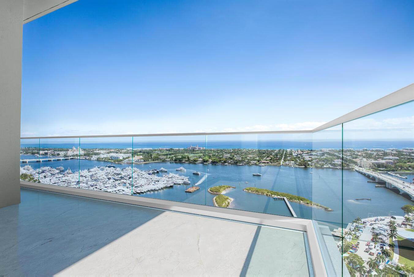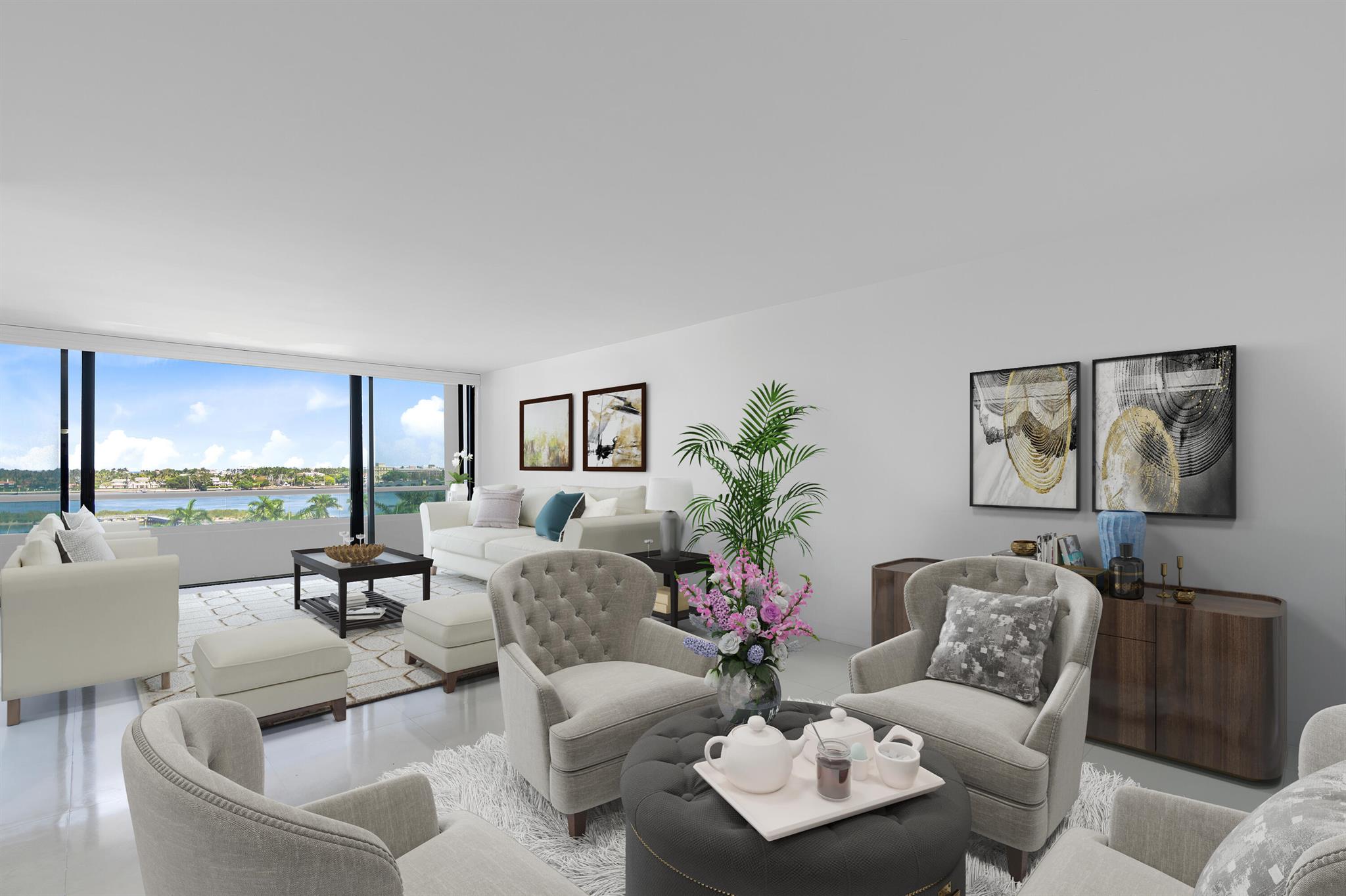 Enjoy luxury living in this full service building with sweeping views of the ocean and Intracoastal waterway. Offering 24 hr. security with guard at gate, valet, concierge,garage parking and all the services of 5-star hotel, plus two swimming pools, fitness center, tennis and pickleball and conference room. Features of this 2 BR 2.5 BA include lovelywhite porcelain flooring, white modern open chef's kitchen and bathrooms, washer/dryer, new hurricane impact doors with motorized shades, feeding onto spacious balconies. Newelevators banks take you directly into your apartment. Minutes to Palm Beach, ocean, restaurants, shopping, Kravis Arts Center and airport.