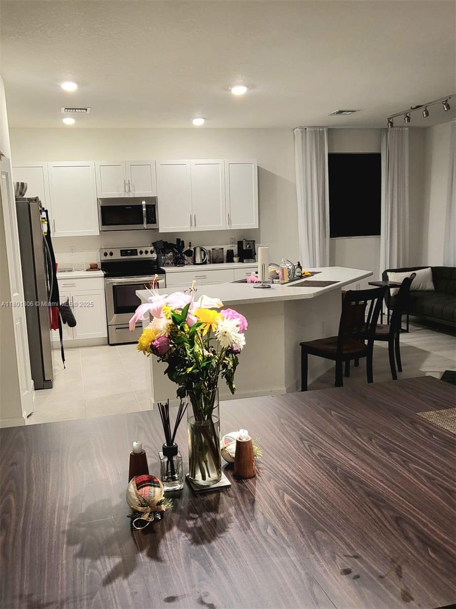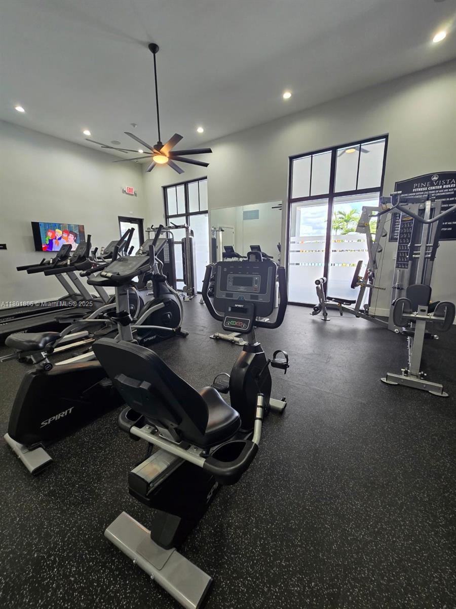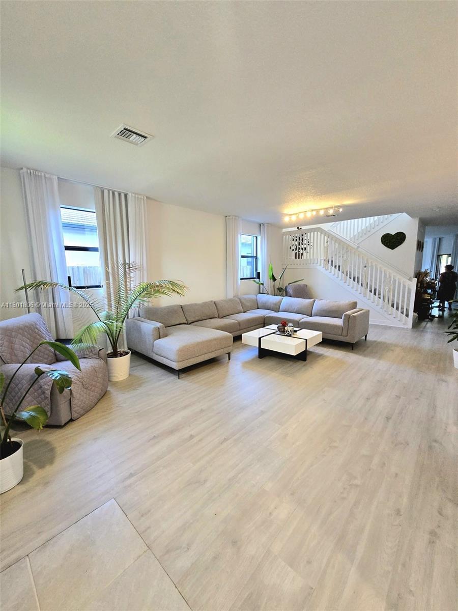 Welcome to this partially furnished 5-bedroom, 3-bath home in a gated community.The entire house features upgraded laminate flooring and blackout curtains throughout, and one room is fully equipped as a Tonal fitness studio. The open-concept layout flows directly to a fully outfitted backyard oasis with custom pergola, hot tub, outdoor furniture, and built-in grill—ideal for year-round entertaining. Eco-friendly upgrades include rooftop solar panels and an electric-vehicle charging station. The attached two-car garage offers ample storage and direct access. Residents enjoy resort-style living with a bus stop at the community entrance and top-rated schools across the street. Shopping, banks, pharmacies, cafes, Walmart, Publix, the post office, and Home Depot are within walking distance.