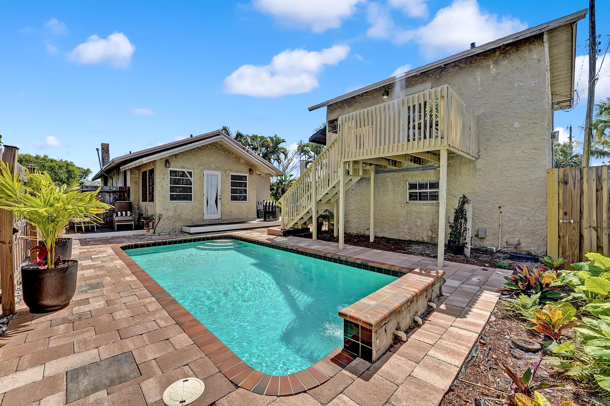 Nestled on the desirable north side of Downtown Lake Worth, this charming updated 1925 residence offers a unique rental opportunity with two distinct living spaces. The second floor hosts a cozy bright and inviting 1-bedroom, 1-bath apartment, showcasing timeless Mizner-inspired architecture blended with modern coastal finishes.Step outside to a fully fenced private backyard oasis featuring a large, heated pool surrounded by brick pavers and wood decking--perfect for relaxing, entertaining, or enjoying al-fresco dining in the Florida sunshine.This property is available fully furnished or unfurnished and is just moments from Lake Worth's vibrant