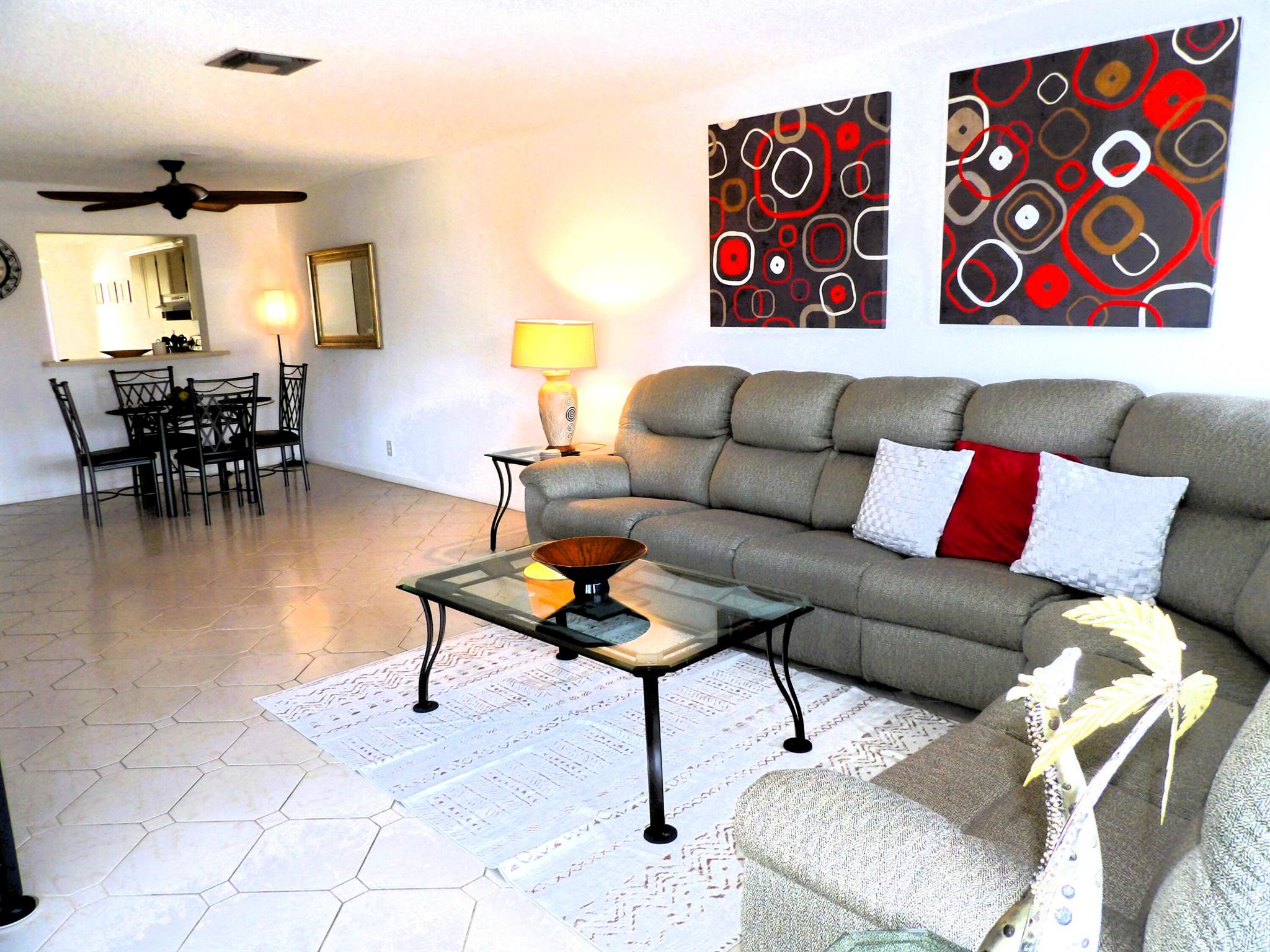 Seasonal lease -Short term rental $2950 per month, 3 months minimum plus tourist tax or $1,850 per month for annual lease. Offered furnished/turnkey. Comfortable corner apartment on the second floor with views of the lake, canal, and green area, in the 55+ community of Palm Greens. Principal and guest bedrooms both with views of the green area, canal, and lake. Laminate flooring, 2 bathrooms, one completely remodeled. Spacious living/dining room with ceramic flooring, enclosed balcony with screen door. New air conditioning, water heater, dishwasher, and microwave. The new Palm Greens clubhouse is nearing completion. Close to shopping, 15 minutes from downtown Delray and the beach. Includes basic cable, internet, and water