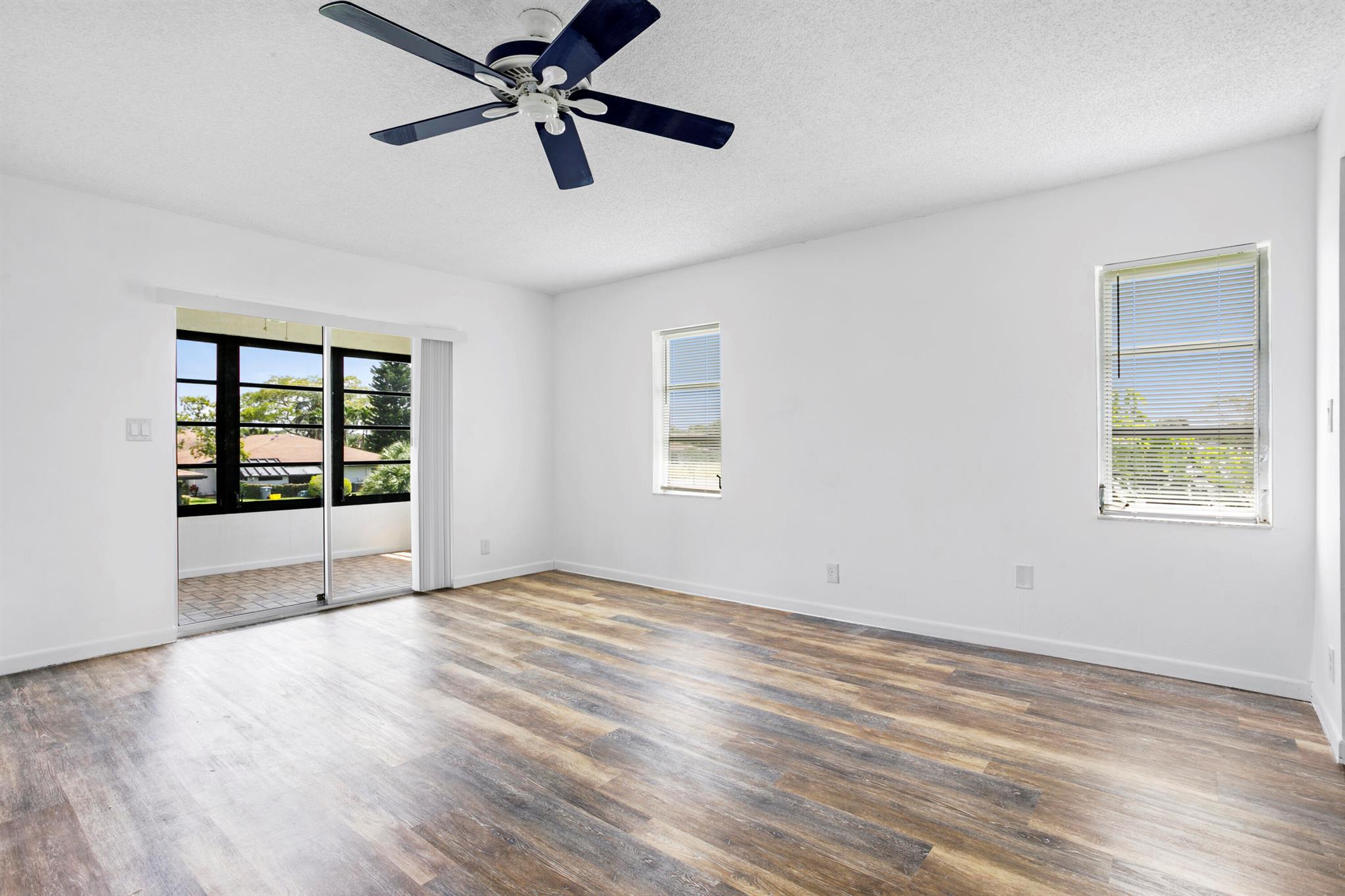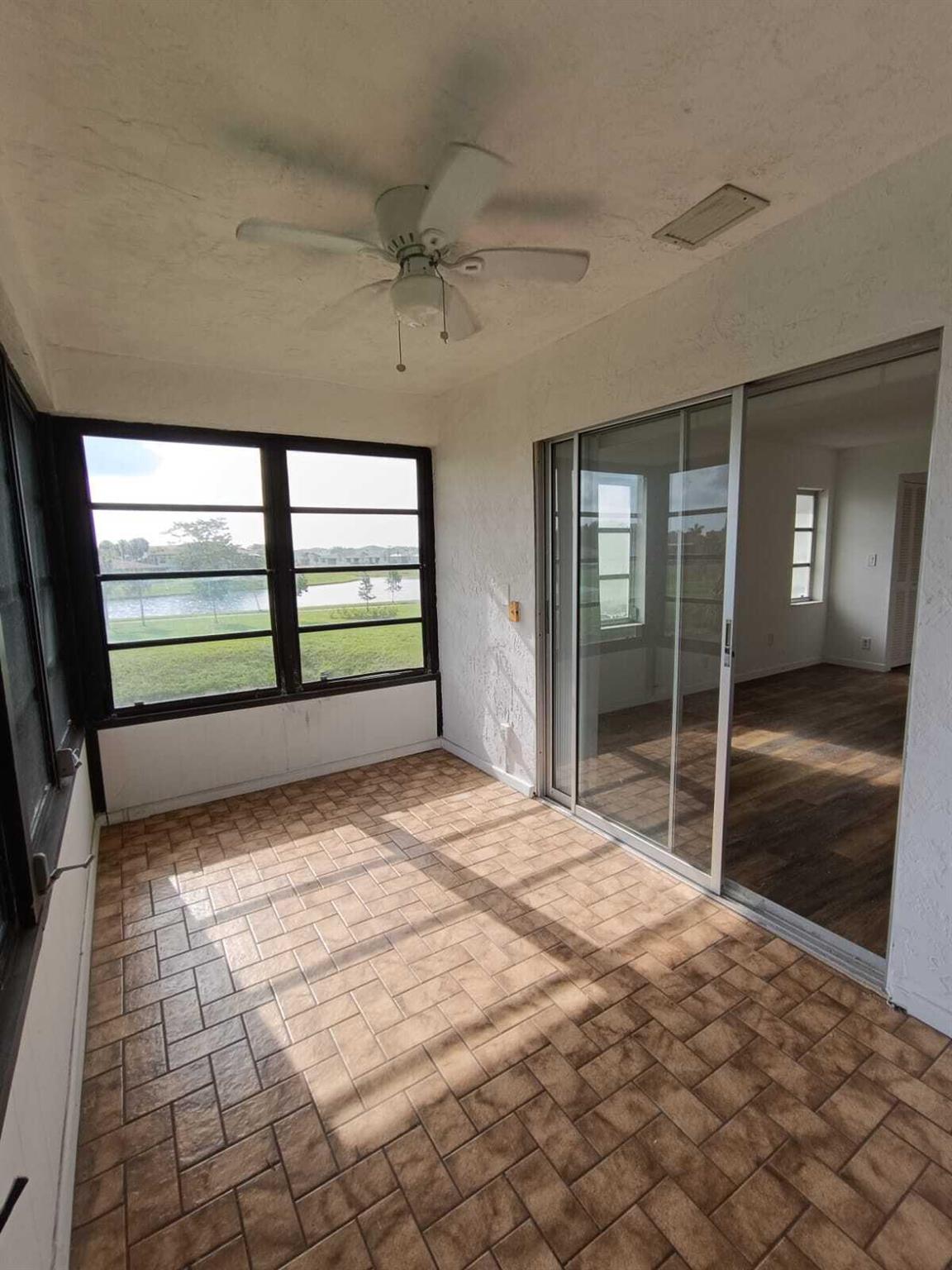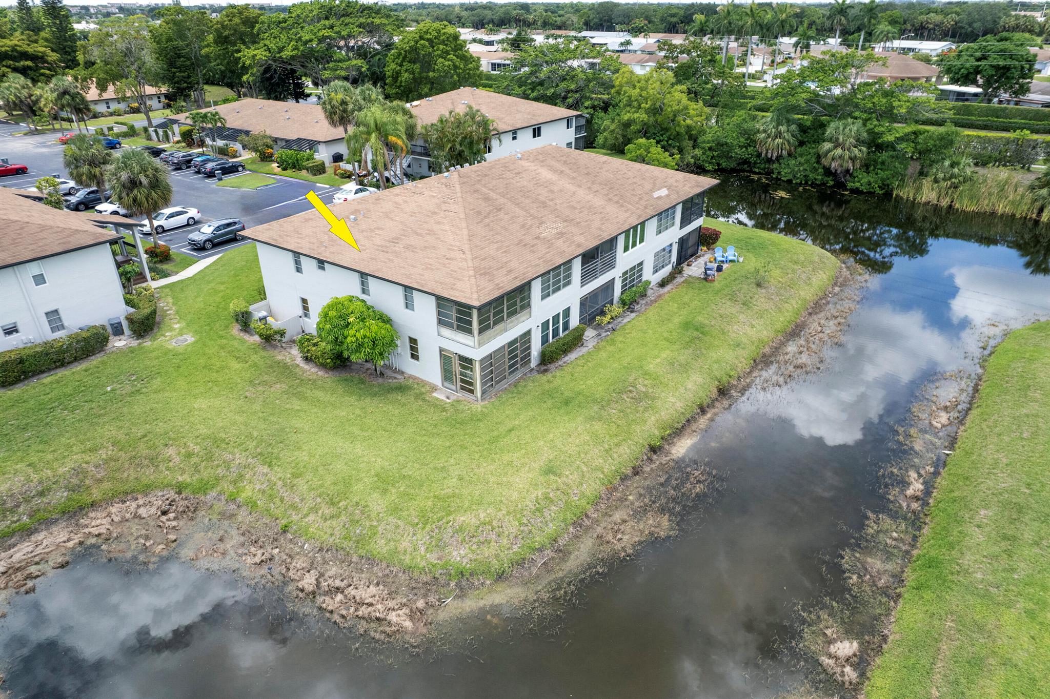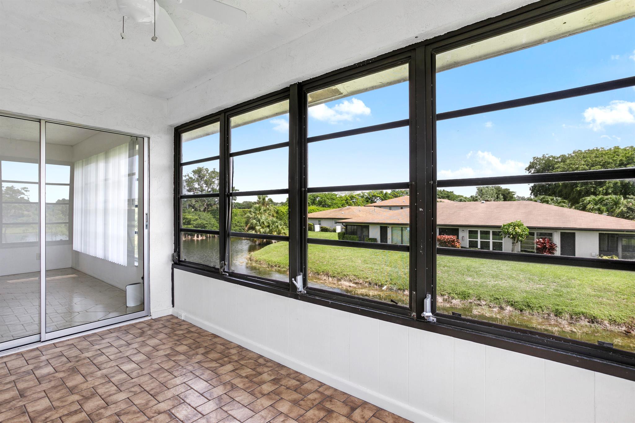 Comfortable corner apartment on the second floor with views of the lake, canal, and green area, in the 55+ community of Palm Greens. Principal and guest bedrooms both with views of the green area, canal, and lake. Laminate flooring, 2 bathrooms, one completely remodeled. Spacious living/dining room with ceramic flooring, enclosed balcony with screen door. New air conditioning, water heater, dishwasher, and microwave. The new Palm Greens clubhouse, valued at $1 million, is nearing completion. Close to shopping, 15 minutes from downtown Delray and the beach. Includes basic cable, internet, and water