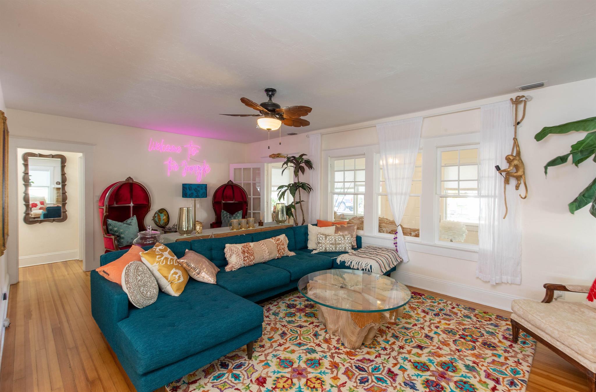 This absolutely charming, totally renovated single family home is ideally situated in North Palm, just walking distance from the water! The chic interior features 2 bedrooms, 1 full and 1 half bathrooms, a Florida room, and a open patio perfect for outdoor dining. This property is offered fully furnished! The home has the beautiful original wood floors throughout the living spaces and gorgeous modern tile in the kitchen and Florida room. The kitchen offers butcher block counters, white shaker cabinets with a stunning blue tile backsplash, and updated stainless appliances with a gas range. The outdoor patio features designer oversized grass inlaid pavers and beautiful tropical landscaping. Utilities are included up to $350/month, no pets allowed.