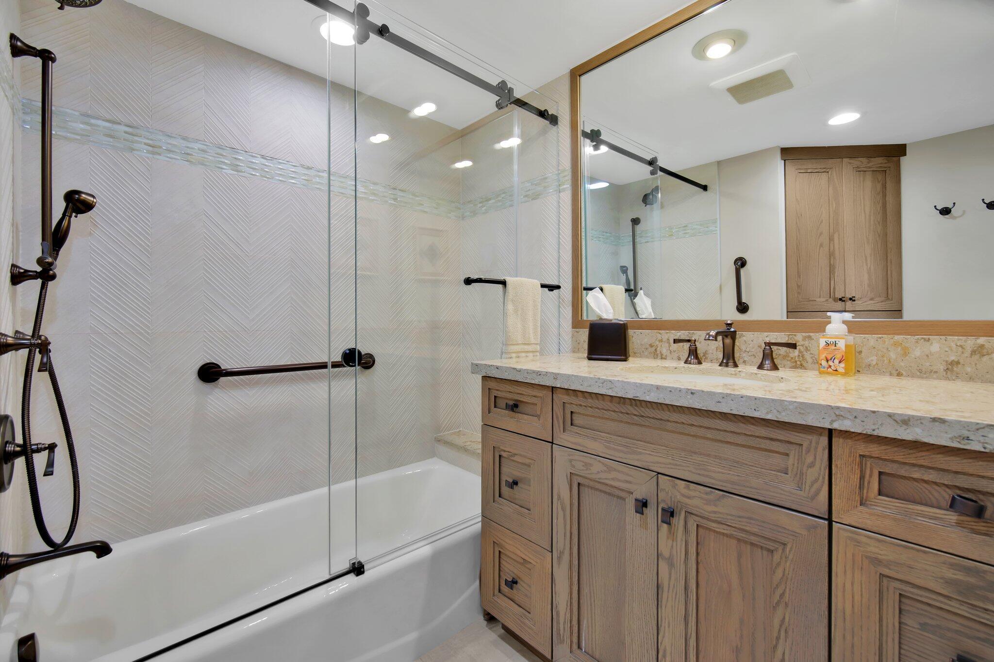 Welcome to your perfect winter retreat! This beautifully furnished and renovated, 2 Bed, 2 Bath island-inspired condo offers unparalleled views of the Intracoastal and ocean--all from the comfort of your screened Lanai. Watch the boats glide along the intracoastal and soak in the serenity of San Remo's exclusive waterfront lifestyle. Located in a sought-after boating community with private beach access, San Remo is just minutes from the Boca Inlet, Downtown Boca Raton and Delray Beach where you can indulge at trendy restaurants and explore a multitude of shopping options. This impeccably maintained residence is professionally designed with a tropical Tommy Bahama flair and it's light, bright and features Impact Glass, custom window treatment, eat-in kitchen, GE profile appliances with