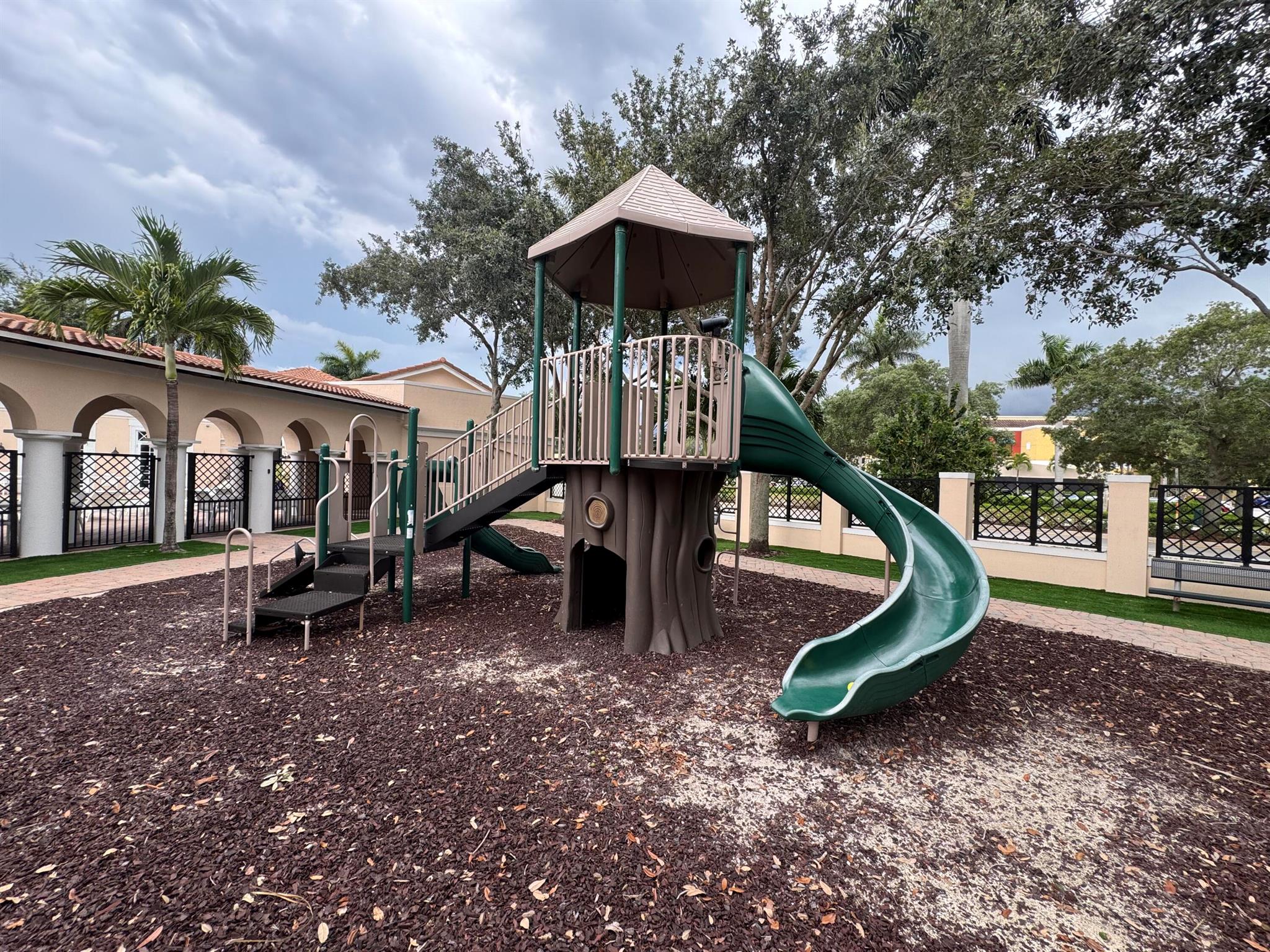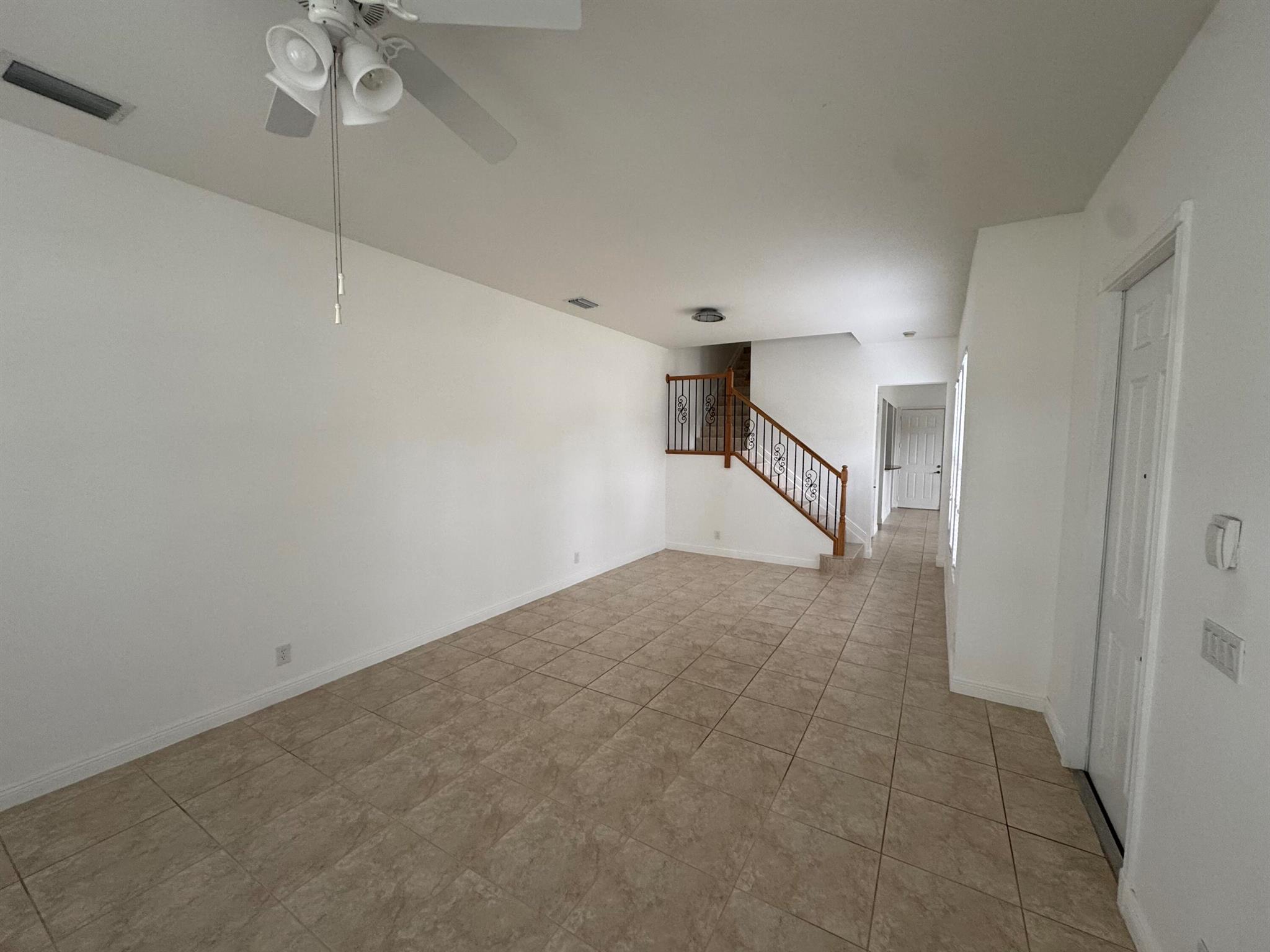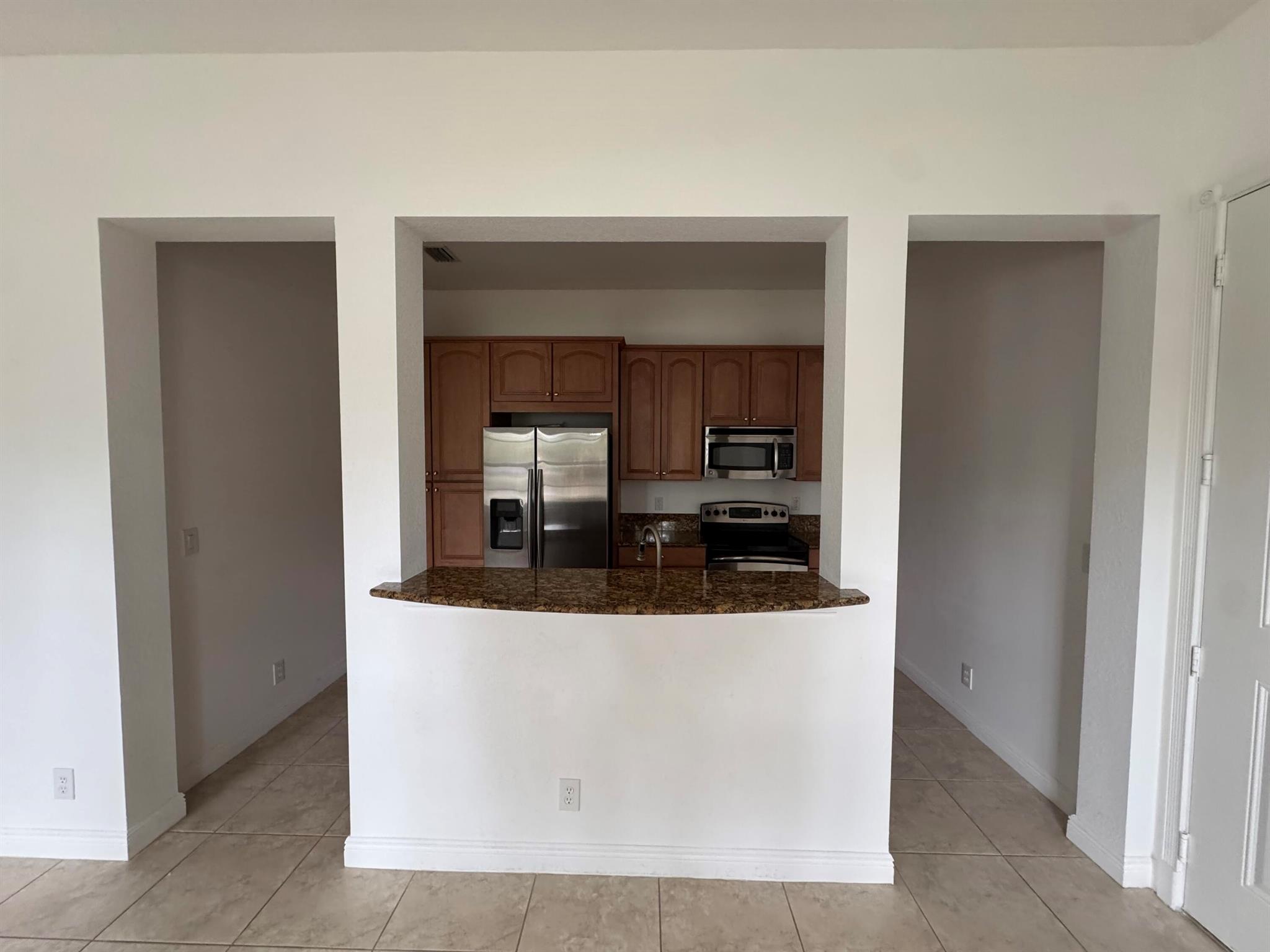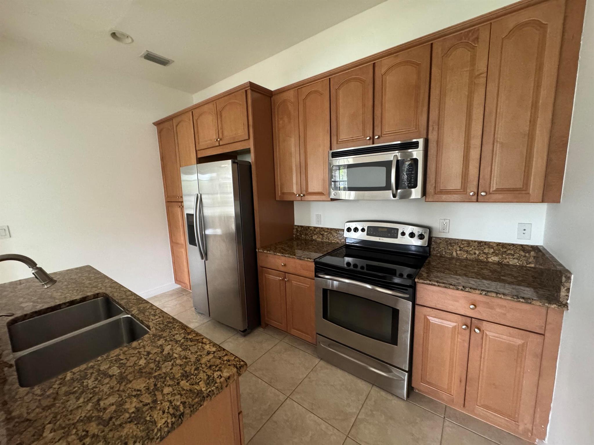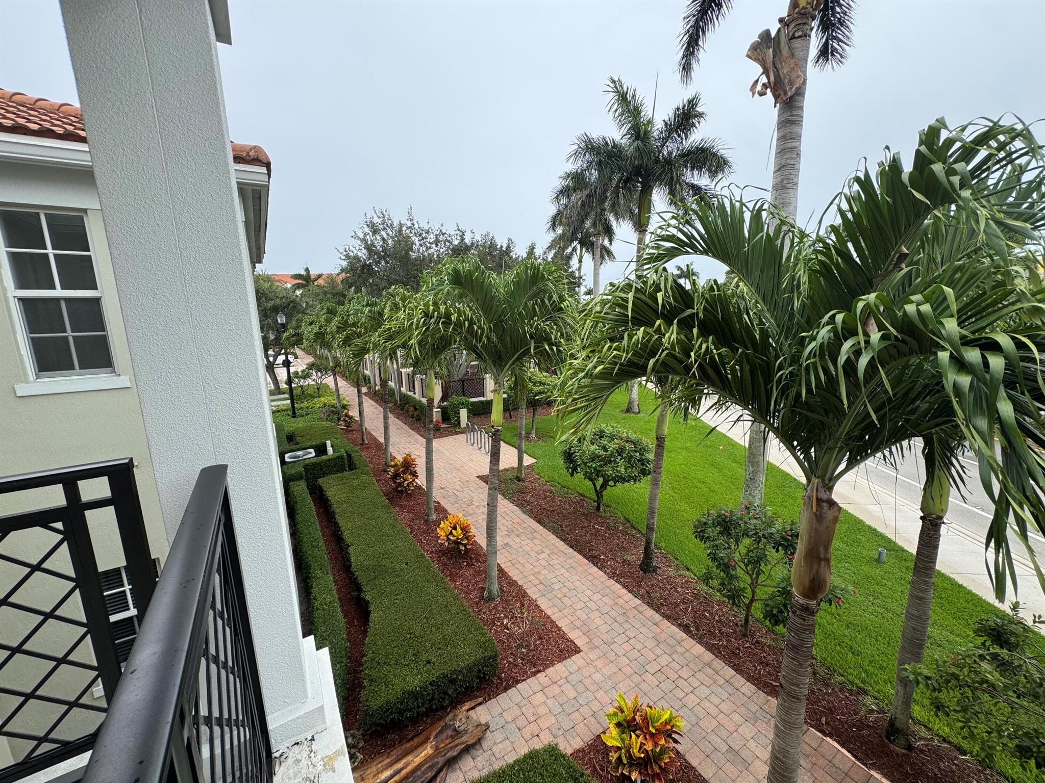 This meticulously, spacious, end unit 3-bedroom, 2.5-bath townhome offers the perfect blend of comfort and convenience in a beautiful, well-maintained community. Enjoy generous living spaces inside and out! The kitchen boasts warm cabinetry, granite counters, stainless steel appliances, an island with breakfast bar and tile flooring throughout. Two living spaces living/family room and dining room and a half bath on the first floor. Open, but private gated patio right out of your front door. The primary bedroom is a spacious retreat with 2 large walk-in closets, an ensuite bathroom, dual sink vanity, soaking tub, and separate shower. Open the door to a spacious balcony and enjoy the tropical palms around this unit. Two additional bedrooms and bath, a second floor laundry room with