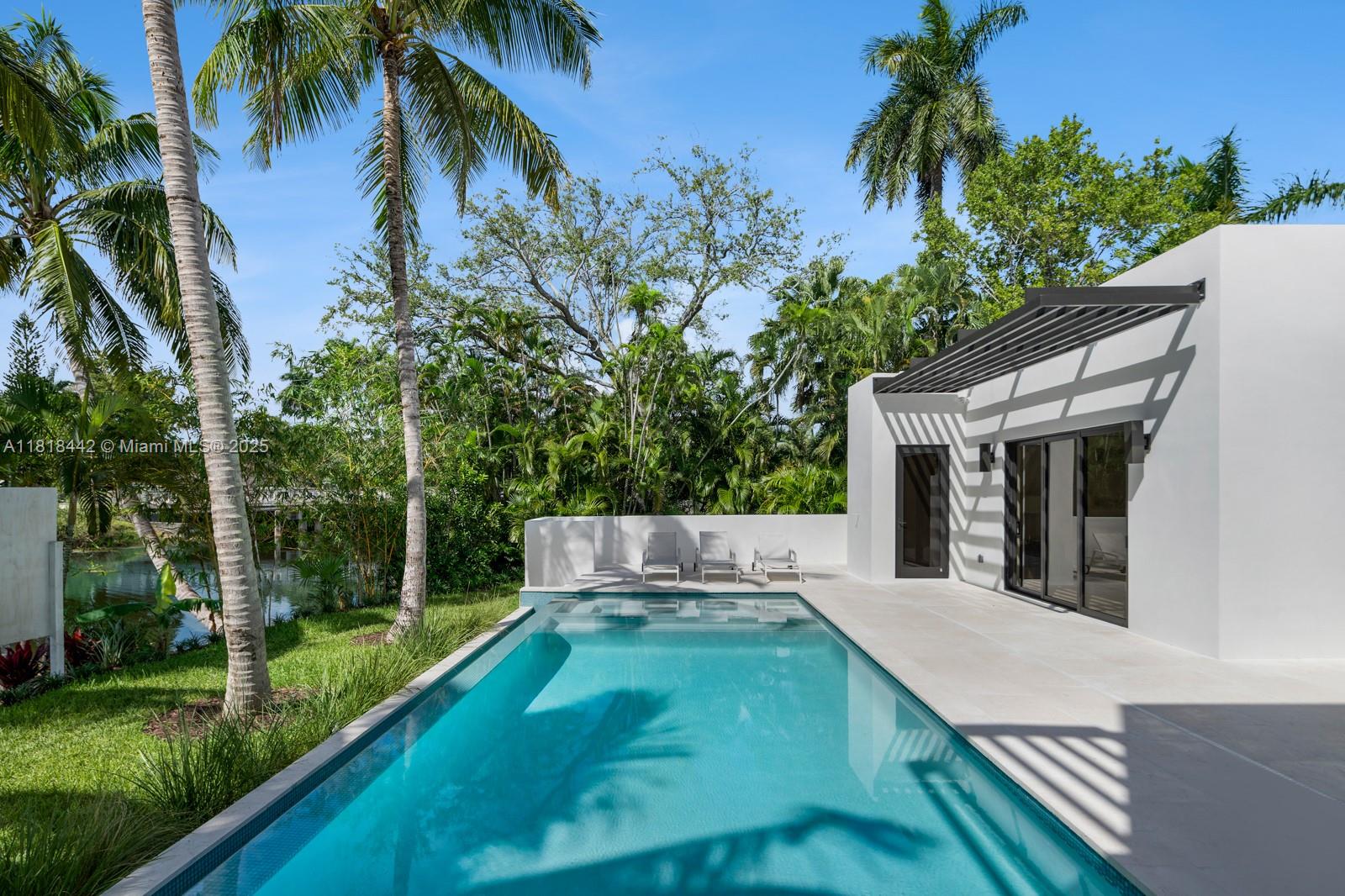 WATERFRONT BRAND NEW CONSTRUCTION STEPS FROM MIAMI COUNTRY DAY PRIVATE SCHOOL. A TROPICAL LUXURY ESTATE ON 20K+ LOT METICULOUSLY DESIGNED BY WORLD RENOWNED ARCHITECT KOBI KARP. SEAMLESS INDOOR/OUTDOOR LIVING ENCOMPASSING 5,775 SF 5 BEDROOMS PLUS OFFICE/DEN + 5 FULL BATH AND 2 HALF BATHS. MILLWORK BY ITALKRAFT WITH STUNNING MASTER CLOSET WITH GLASS DOOR SHOWCASES AND LED LIGHTING. OVERSIZED KITCHEN ISLAND WITH ALL GAGGENAU APPLIANCES INFINITY EDGE POOL + JACUZZI WITH CABANA BATH AND OUTDOOR SHOWER OVERLOOKING THE TRANQUIL 100 FT OF CANAL FRONTAGE WITH DUCKS AND TURTLES. TWO LARGE PRIMARY SUITES AND SECOND FLOOR BALCONY WITH BOOK MATCHED STONE IN BATHROOMS. DRAMATIC CEILING HEIGHTS THROUGHOUT WITH VAST LIVING AREAS. EXPERT LANDSCAPING WITH IRRIGATION SYSTEM AND EXPANSIVE DRIVEWAY.