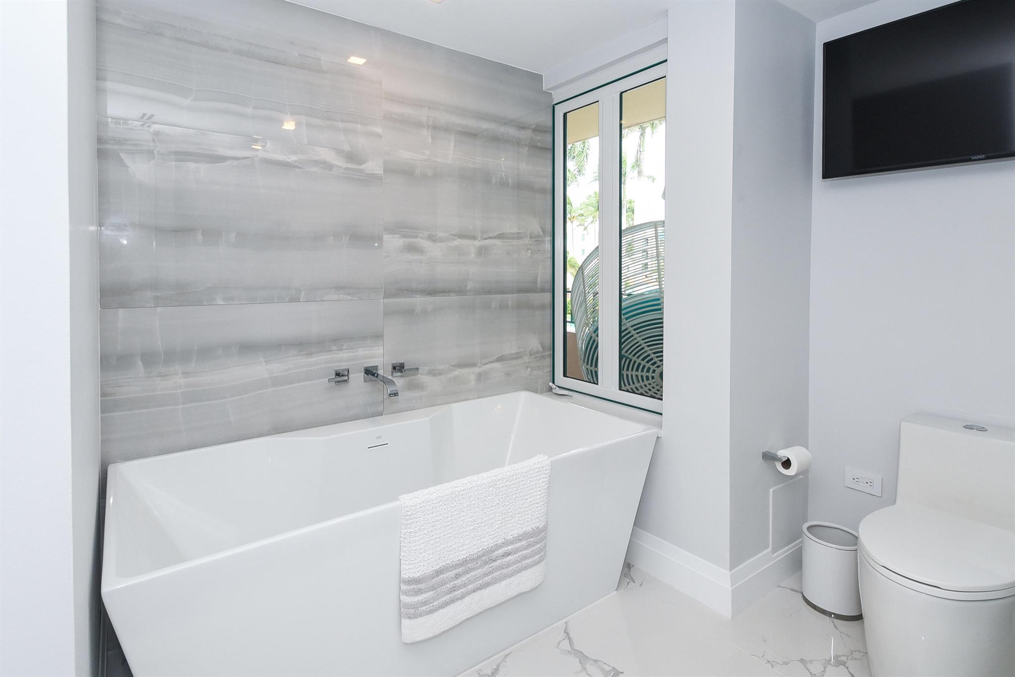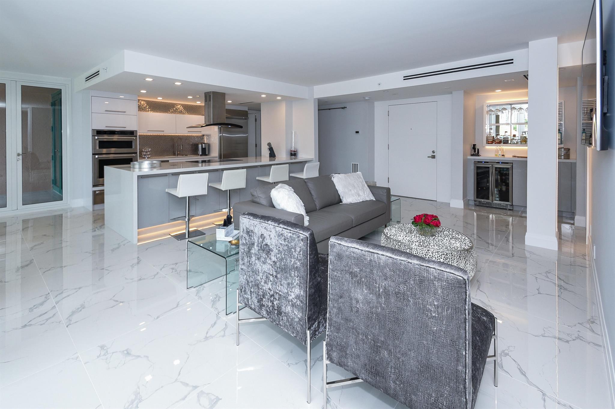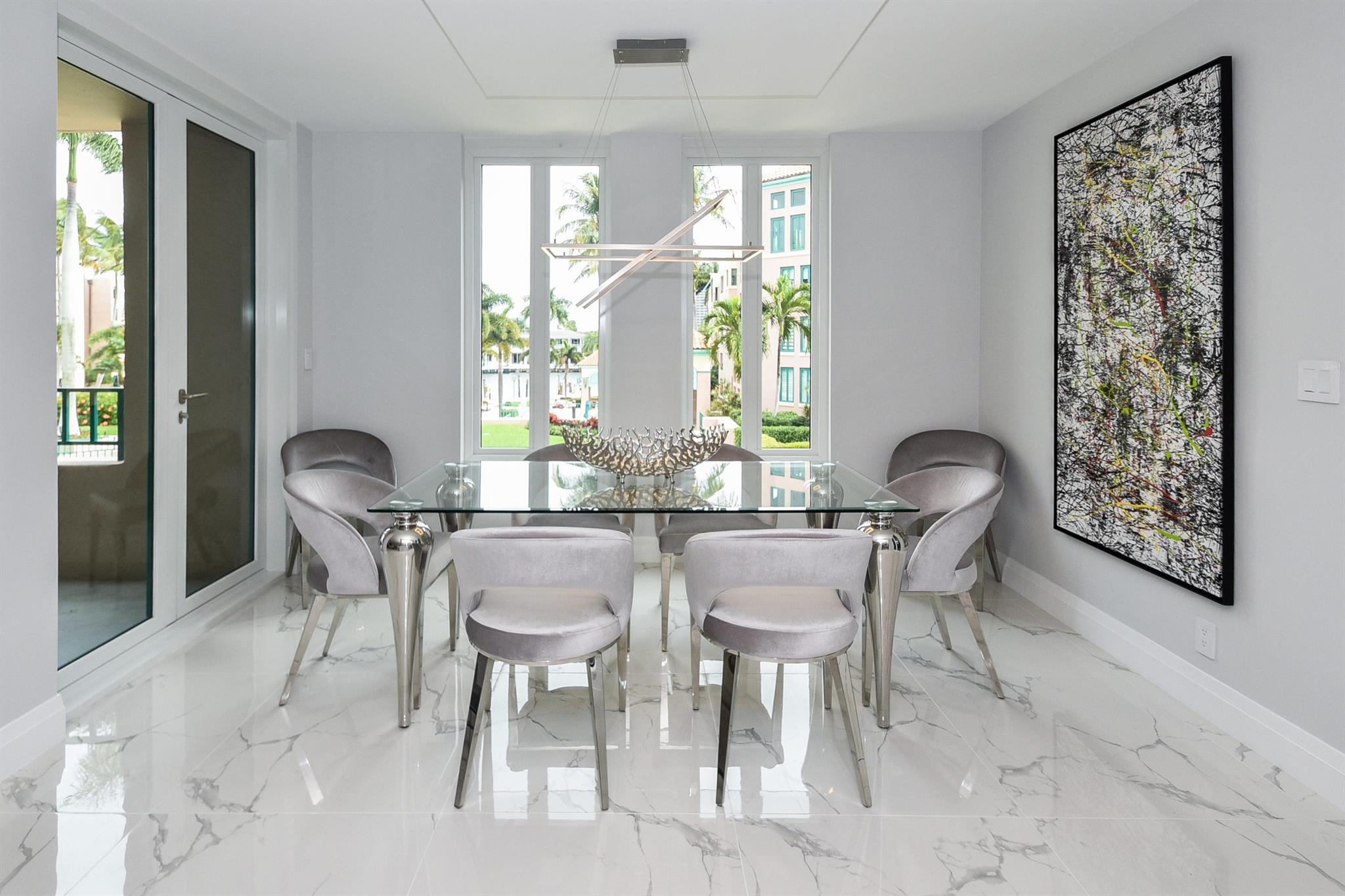 AMAZING INTRACOASTAL VIEWS! AVAILABLE 45 FT. BOAT SLIP No expense spared! Modern decor with incredible thought given to details of this reconfigured open floor plan...This stunning furnished/turn-key in the Mizner village / Boca Raton resort grounds in the center building of Mizner court! SLEEK KITCHEN and stunning Bathroom Cabinetry with tons of storage, self-close doors and drawers, led lighting, beverage center, dimmers everywhere... even on the backlit led lighting, Impact Windows, huge balconies and so much more! Waterfall quartz top 12 foot island with incredible storage, Gorgeous exterior renovation already finished 2025. This unit provides added convenance with security located on ground floor.(120 is only building that has this) Garage with car charging capability at no cost!