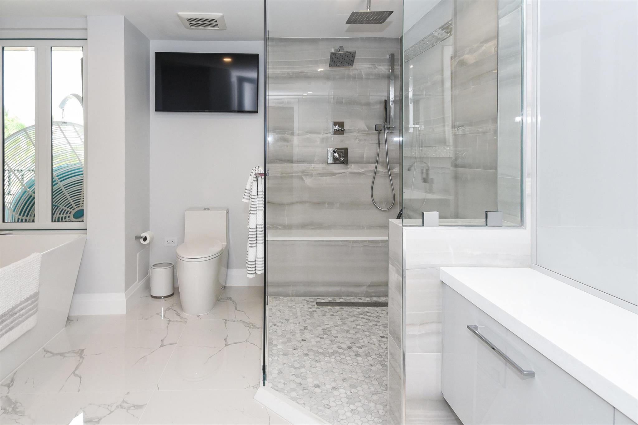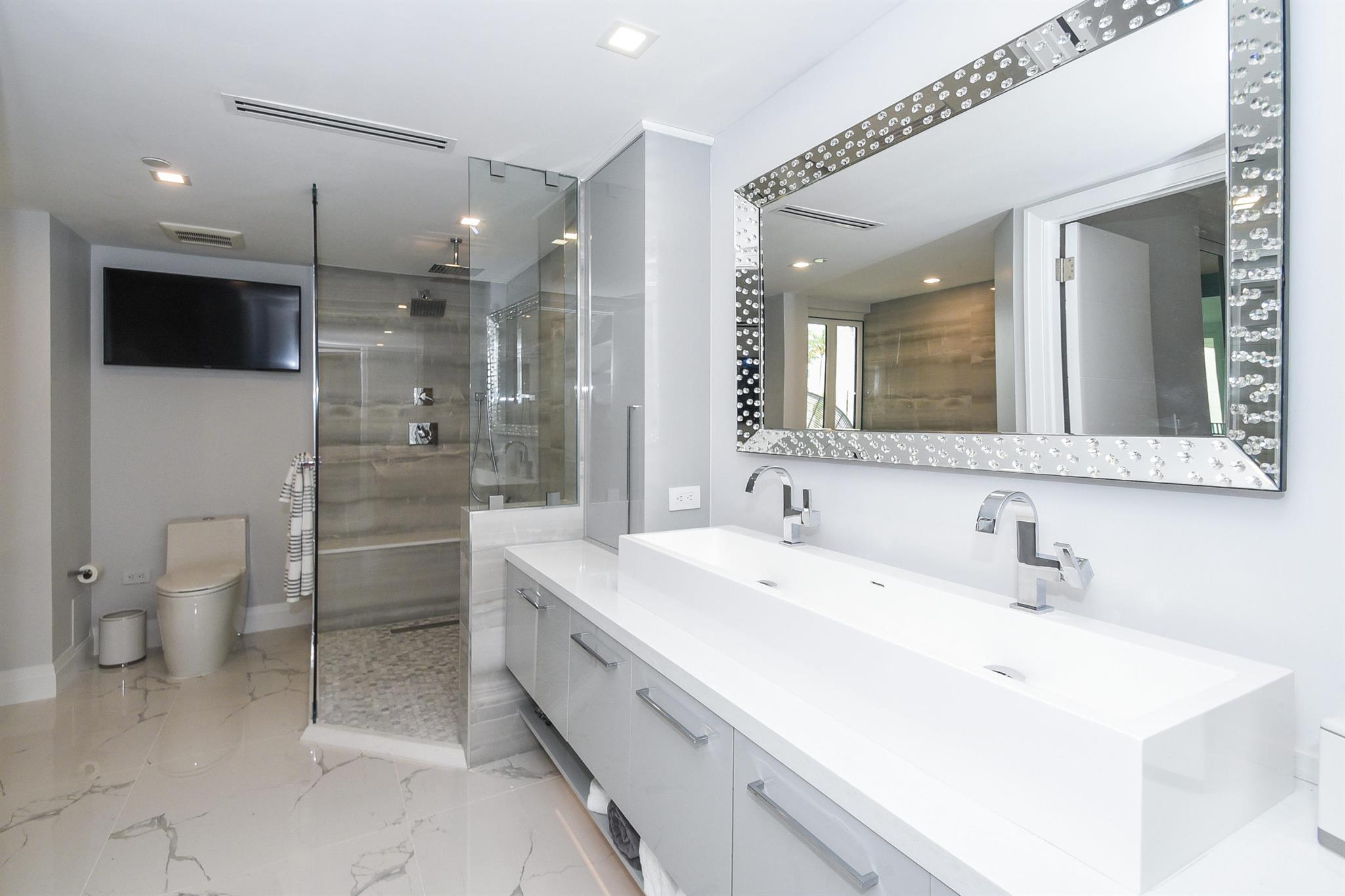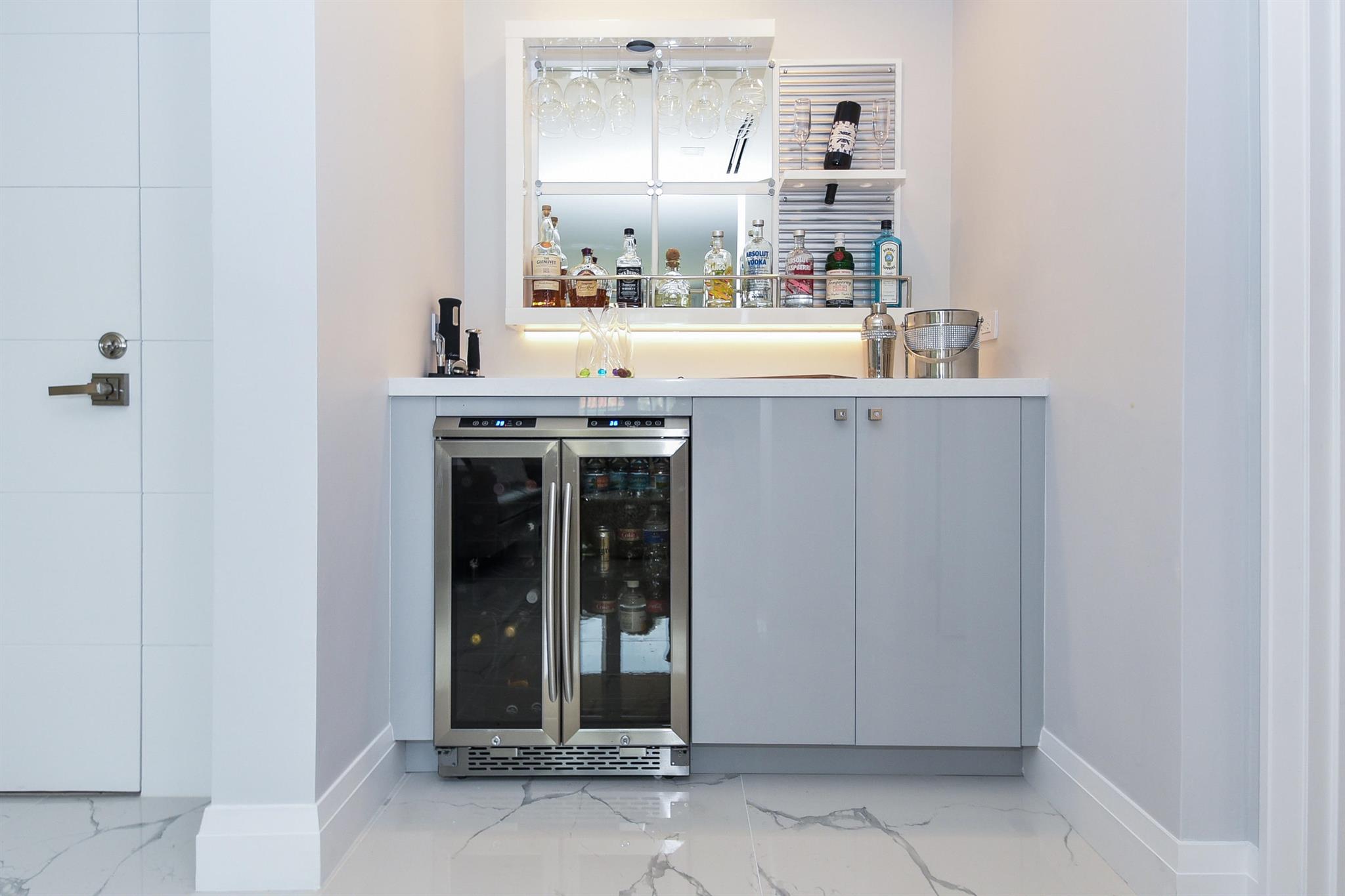 AMAZING INTRACOASTAL VIEWS! AVAILABLE 45 FT. BOAT SLIP No expense spared! Modern decor with incredible thought given to details of this reconfigured open floor plan...This stunning furnished/turn-key in the Mizner village / Boca Raton resort grounds in the center building of Mizner court! SLEEK KITCHEN and stunning Bathroom Cabinetry with tons of storage, self-close doors and drawers, led lighting, beverage center, dimmers everywhere... even on the backlit led lighting, Impact Windows, huge balconies and so much more! Waterfall quartz top 12 foot island with incredible storage, Gorgeous exterior renovation already finished 2025. This unit provides added convenance with security located on ground floor.(120 is only building that has this) Garage with car charging capability at no cost!