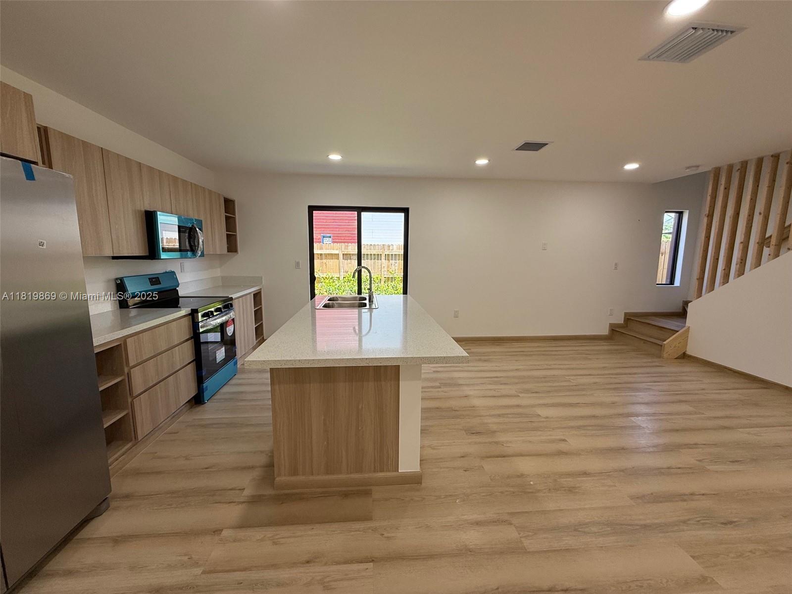Beautiful New Construction Townhome in Florida City! Be the first to live in this stunning, spacious two-story townhome offering modern design & comfort throughout. Enjoy open-concept living areas with gorgeous oak-colored laminate flooring that flows seamlessly from room to room. The stylish kitchen features stainless steel appliances, white cabinetry, and sleek quartz countertops, perfectly positioned to overlook the inviting living spaces—ideal for everyday living & entertaining. Step outside to a cozy private patio, perfect for gatherings with friends or simply relaxing. This home offers 4 generously sized bedrooms and 3 full bathrooms, providing ample space for family or guests. Additional highlights include impact windows throughout & the convenience of an in-unit washer and dryer.