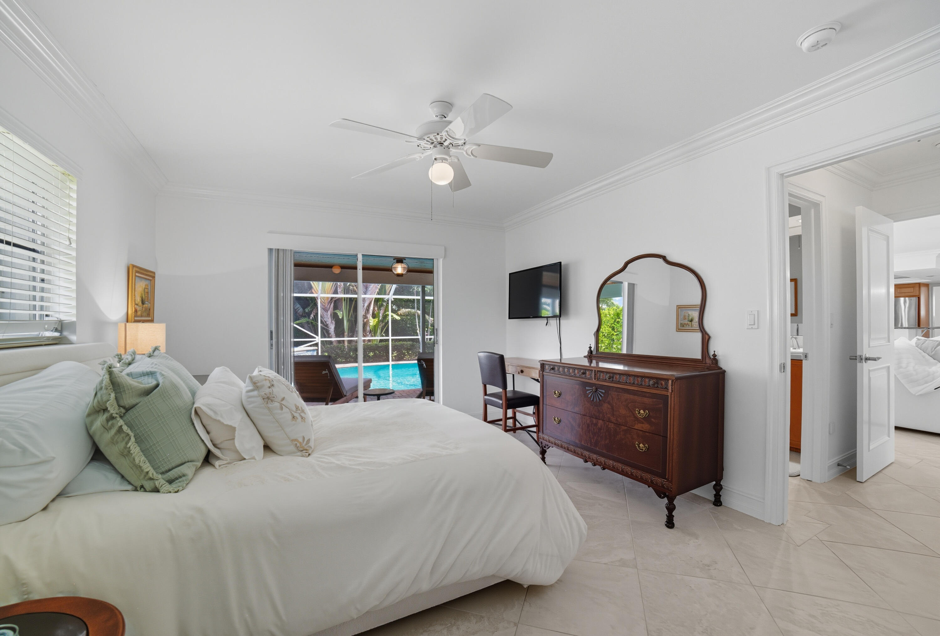 FOOTSTEPS AWAY TO WHITE SANDY BEACHES!! This stunning turnkey, furnished, split plan 3 bedrooms, 2.5 baths, 2 car garage home is just walking distance to the beach on Singer Island!! This luxurious home features include; gourmet kitchen with center island, granite countertops, stainless steel appliances, wood cabinetry with pass-through from kitchen to screened in pool area, porcelain 20'' tile floors throughout, plantation shutters, wood ceiling inserts with cove lighting in kitchen and master bedroom, walk in closets, master bathroom with jacuzzi tub, seamless glass shower, wood vanities and wood accent ceiling. The location is a short bike ride to John D. MacArthur beach state park, pickle ball, 5-star restaurants, shopping and only 15 miles to Palm Beach International airport.