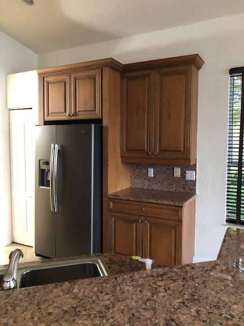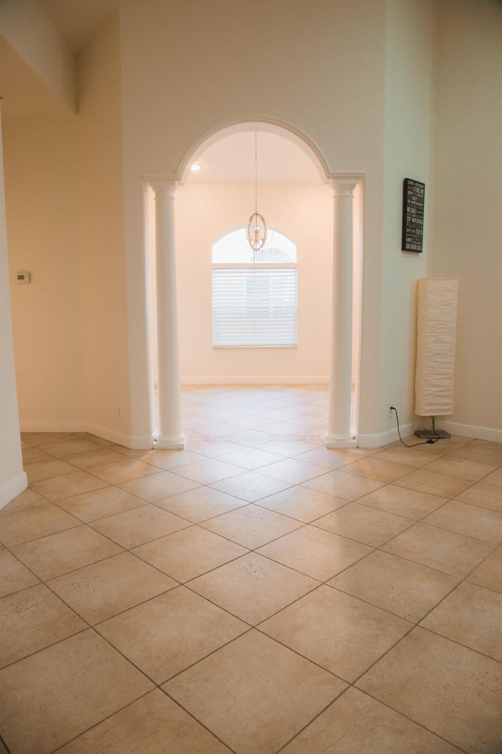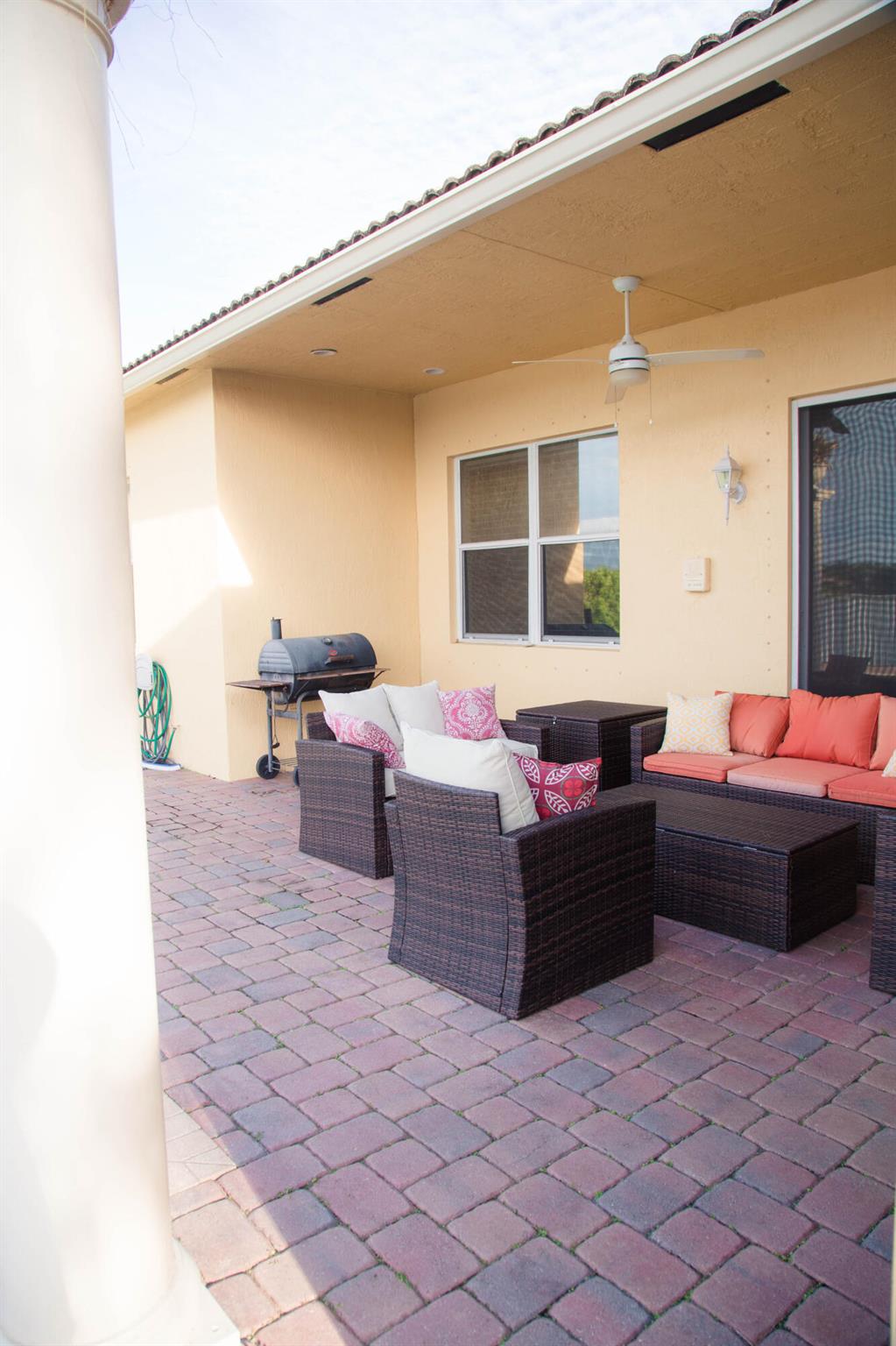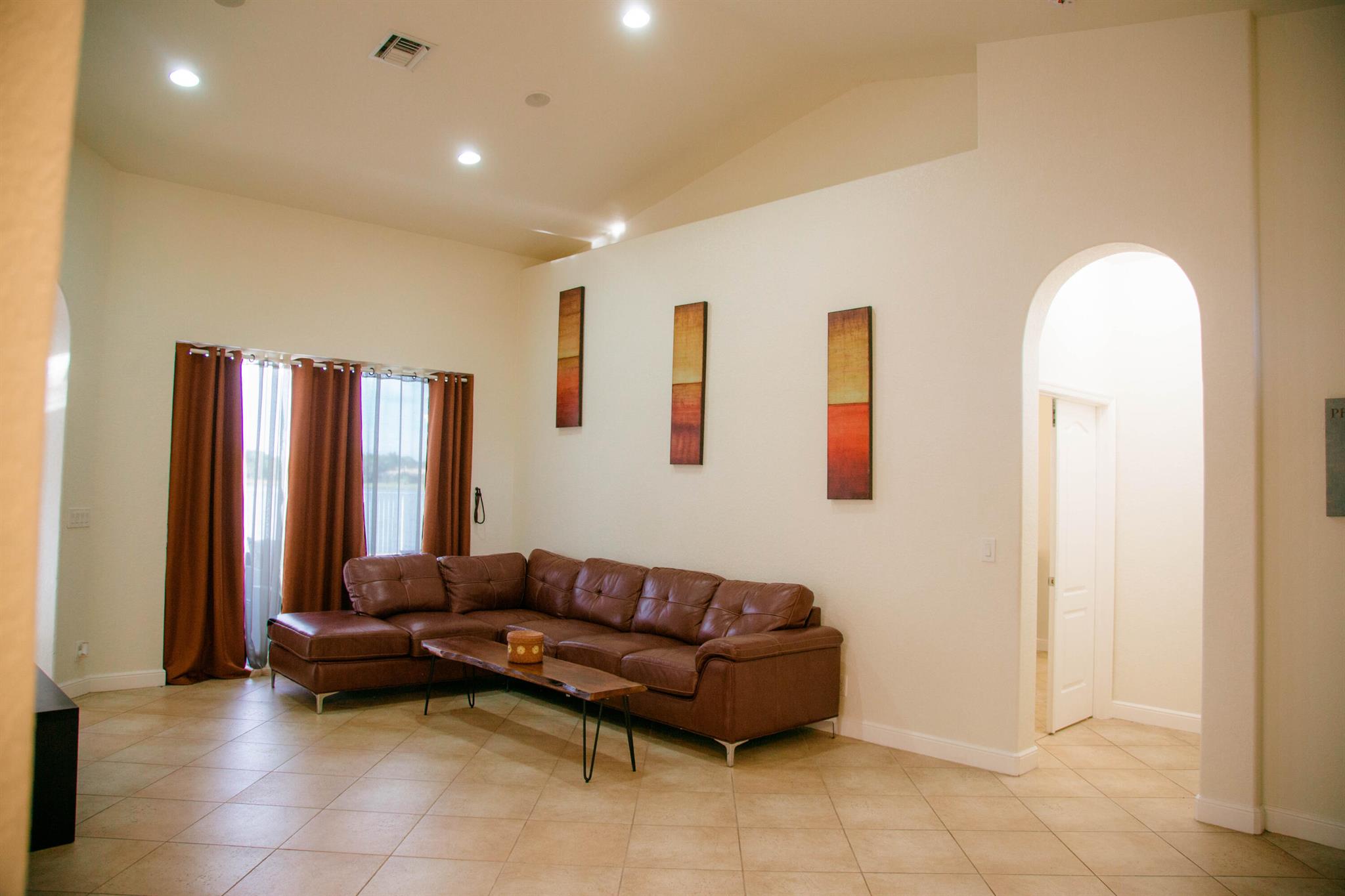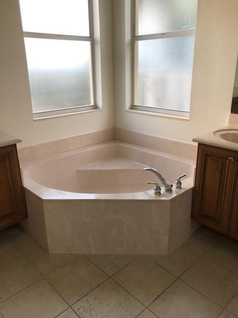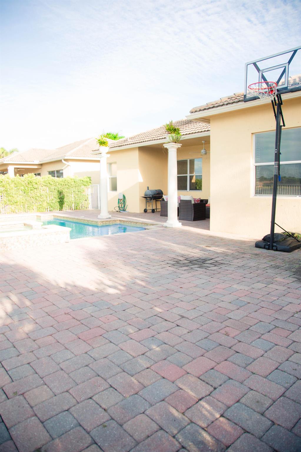 Your own Beautiful Private Pool and Jacuzzi Tub on the lake with covered patio. Spacious 3bd/2.5ba, fully tiled floors, granite countertops in open floor plan kitchen into family room. Windows and 2 sliding glass doors to the covered patio, pool on the large lake. Appliances: Refrigerator, Range, Microwave, Dishwasher, garbage disposal. W/D in roomy laundry room. Paver driveway with parking for 4 cars including 2-car garage with 2 remote openers. MBR has two walk-in custom closets. MBath has a large garden tub and separate shower. Monthly lease payment does not include weekly pool cleaning but does include lawn care. Roma modal. Portofino Shores is a well-manicured, gated community offering a comfortable home life for families and individuals of all ages.
