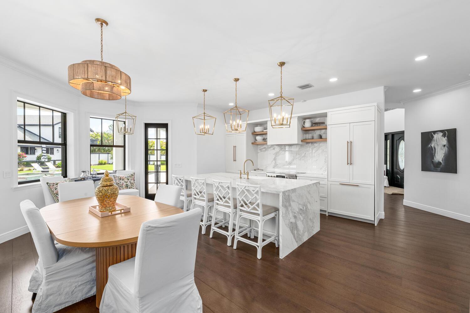 Price Breakdown: The rental price for the house is $28,000 per month. Beautiful 4 acre farm situated within a very short hacking distance to Wellington International Showgrounds! The property is a double lot, measuring 3.92 acres, with a recently renovated, large 2-story house. When entering the gorgeous 2 story, 5 bedroom house you will find a large living room, dining room and two main story bedrooms.