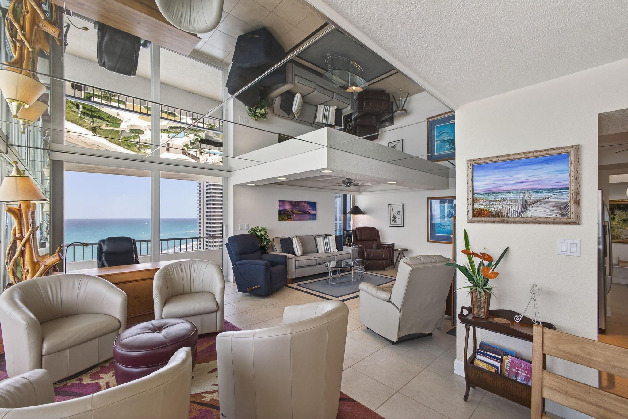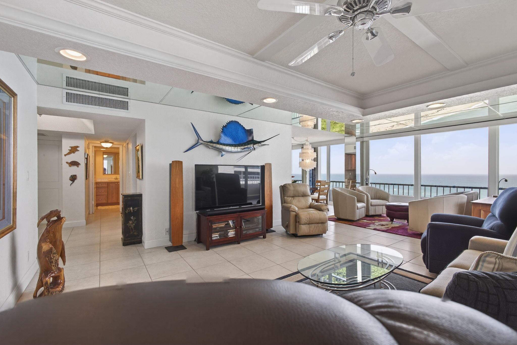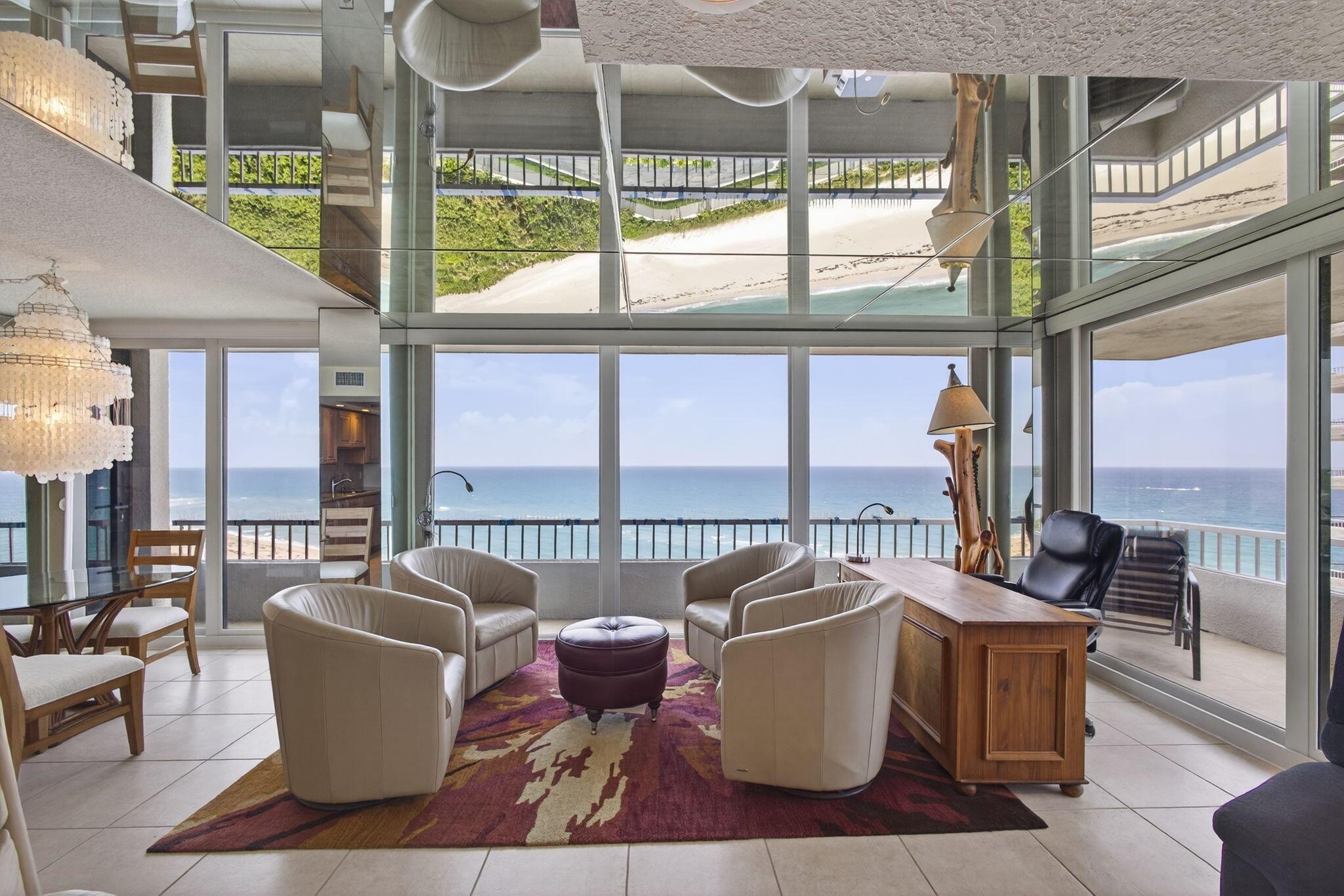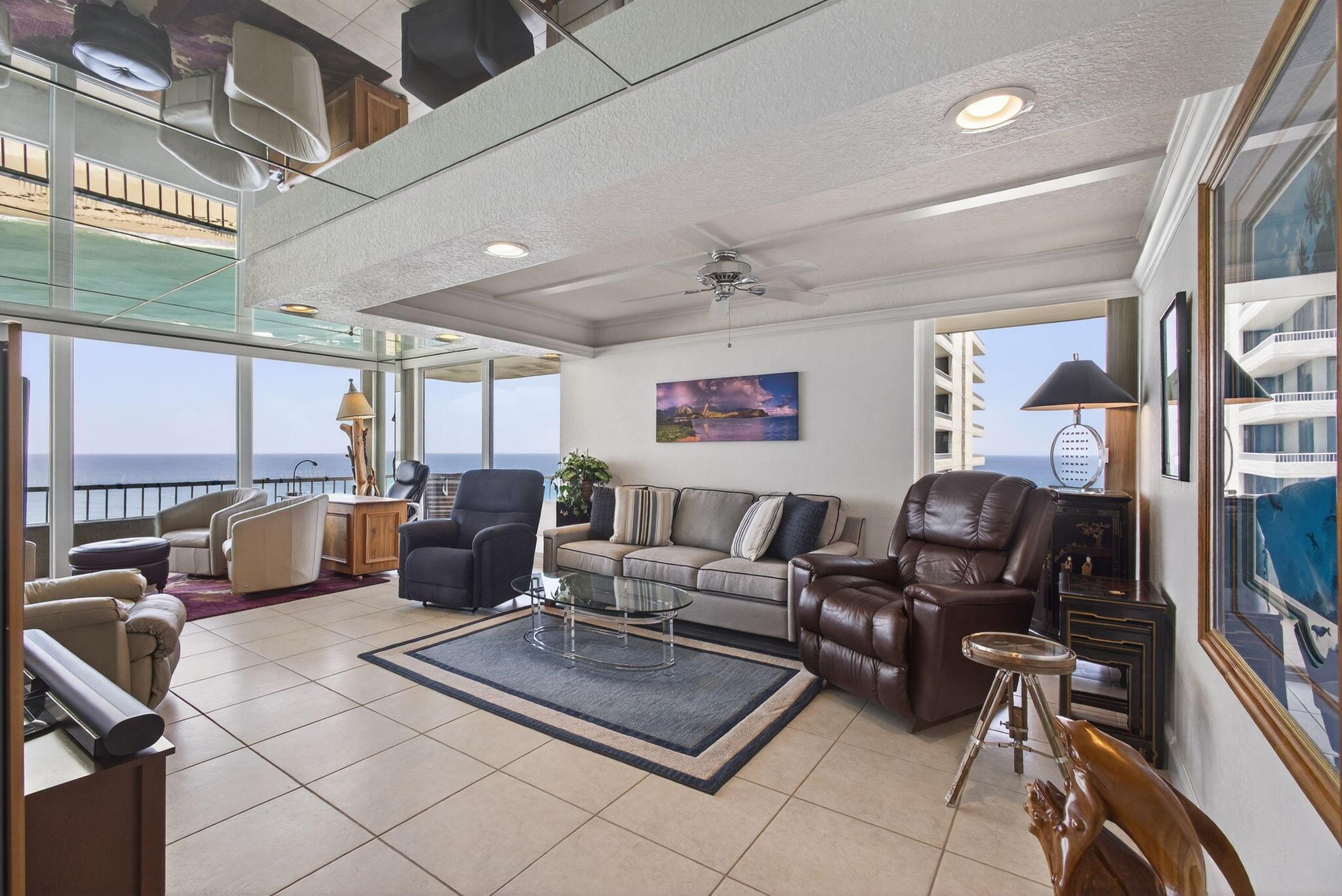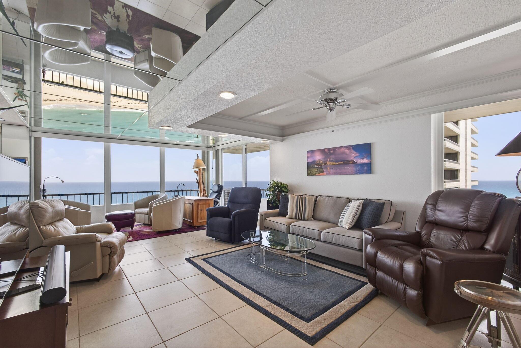 WATCH THE SPECTACULAR VIEWS OF THE OCEAN WAVES SLAPPING AGAINST THE SANDS SHORE LINE FROM YOUR LIVING ROOM RECLINER DUE TO THE MIRRORS ON YOUR CEILING AND THE INTRACOASTAL FROM YOUR FLOOR TO CEILING IMPACT WINDOWS ARE BREATHLESS.57 FOOT WRAP AROUND BALCONY CORNER UNIT ONLY 4 UNITS PER FLOOR. 2 BEDROOM 2 BATH. UPDATED KITCHEN AND BATH,ALL HIGH END FURNITURE INCLUDED. TILE AND LAMINATE FLOORS THROUGH OUT.2 HEATED POOLS,4 TENNIS COURTS,SHUFFLE BOARD,PUTTING GREEN,CLUBHOUSE, BBQ AREA,24 HOUR MANED SECURITY GATE. MANAGEMENT ON PREMISES THIS CONDO CAN BE RENTED FOR SEASON $ 8500.00 PER MONTH UNTILL APRIL 30,2026. AND MOST IMPORTANT 1200 FEET OF SANDY BEACH AT YOUR FOOTSTEPS.