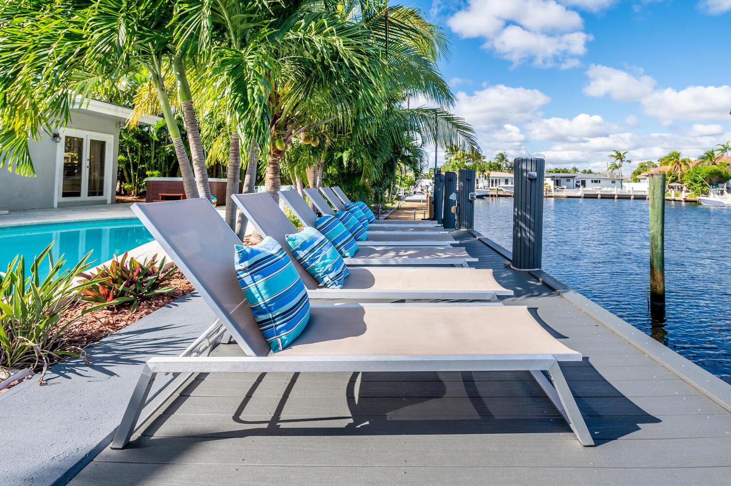 This waterfront home is the family-resort you have been looking for. Fully furnished 4 beds 3 baths, open-conceptgourmet kitchen with new appliances, bar countertop and spacious living/media room area. Relax in the private,heated pool while enjoying water views and spectacular sunsets. There's a spa in a cozy corner surrounded by lushlandscaping for privacy. The outside bar with gas grill invites for BBQ cookouts. A brand new private dock issuitable for boats up to 35 ft. Throw your lines in the water and catch your dinner. This home is off Federal Hwy (US1) and just minutes from I-95. Quick 5 min drive to beach on East Atlantic Blvd, Beach access, grocery stores, Watersport rentals, several gorgeous beach bars and waterfront restaurants nearby. SEASONAL | FURNISHED!