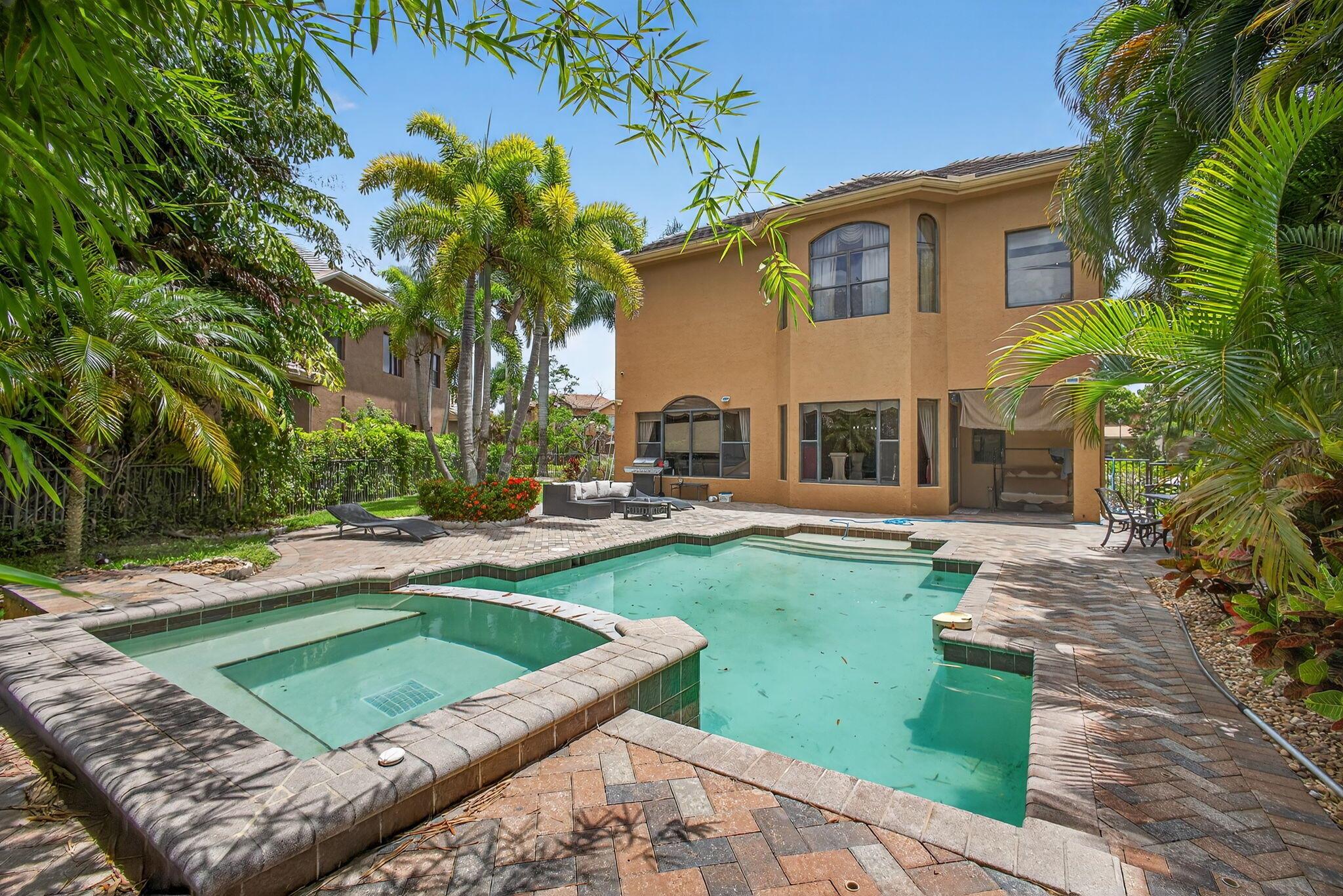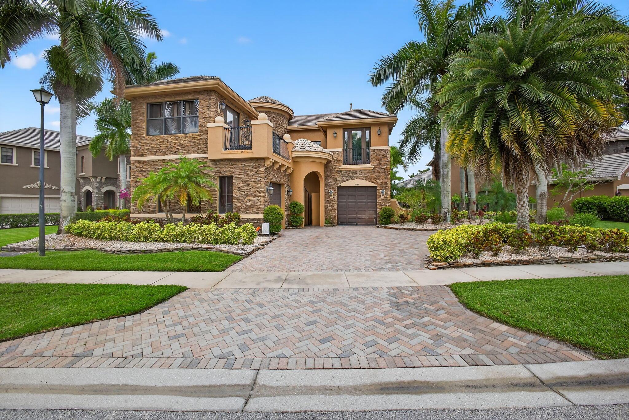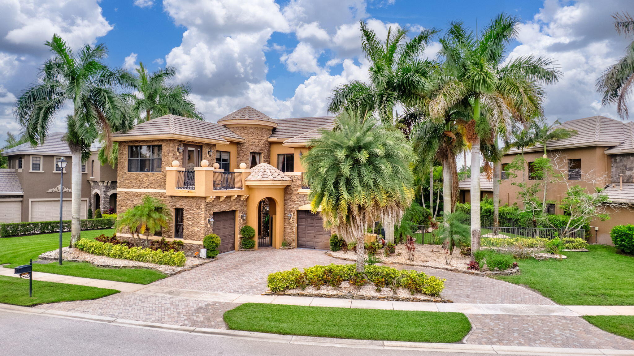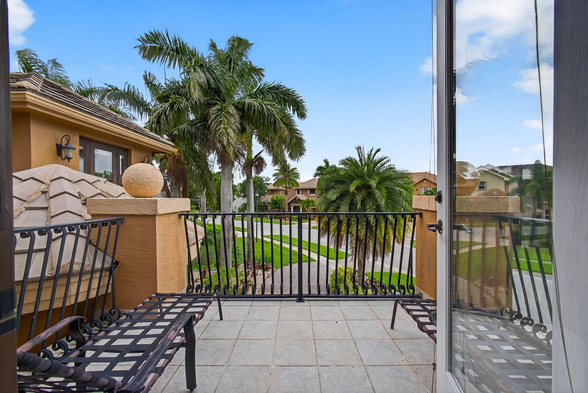 Experience luxury lakefront living in this highly desirable Moulin Rouge model, located within the prestigious, guard-gated Versailles community in the heart of Wellington. This expansive 4-bedroom, 4.5-bath pool home features a charming courtyard entrance, dual garages, and offers over 3,500 square feet of thoughtfully designed living space with an open layout ideal for both entertaining and everyday comfort.The gourmet kitchen is equipped with granite countertops, a center island, gas cooktop, double ovens, stainless steel appliances, and a dual sink with a window overlooking the backyard. Each bedroom features its own private en-suite bathroom and walk-in closet, with two bedrooms enjoying private walk-out balconies.