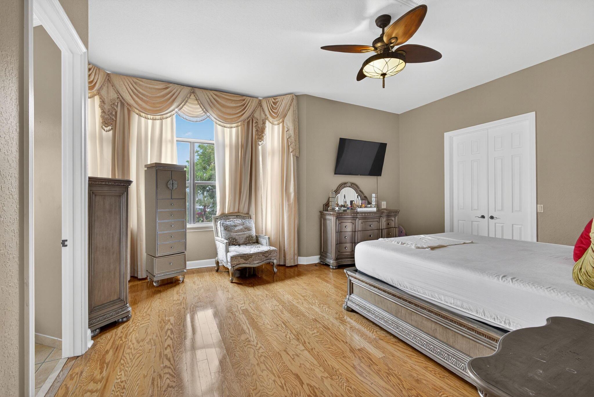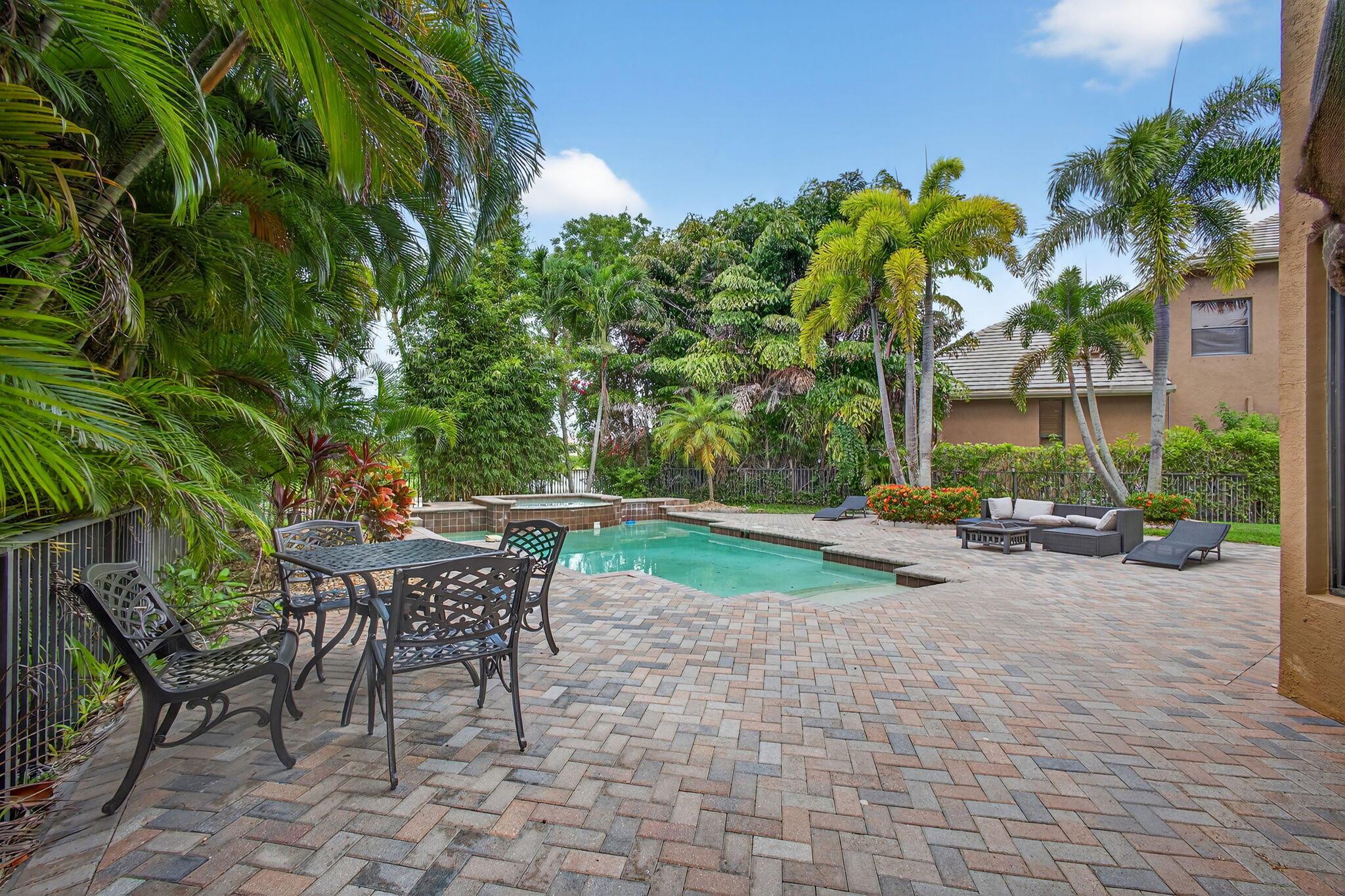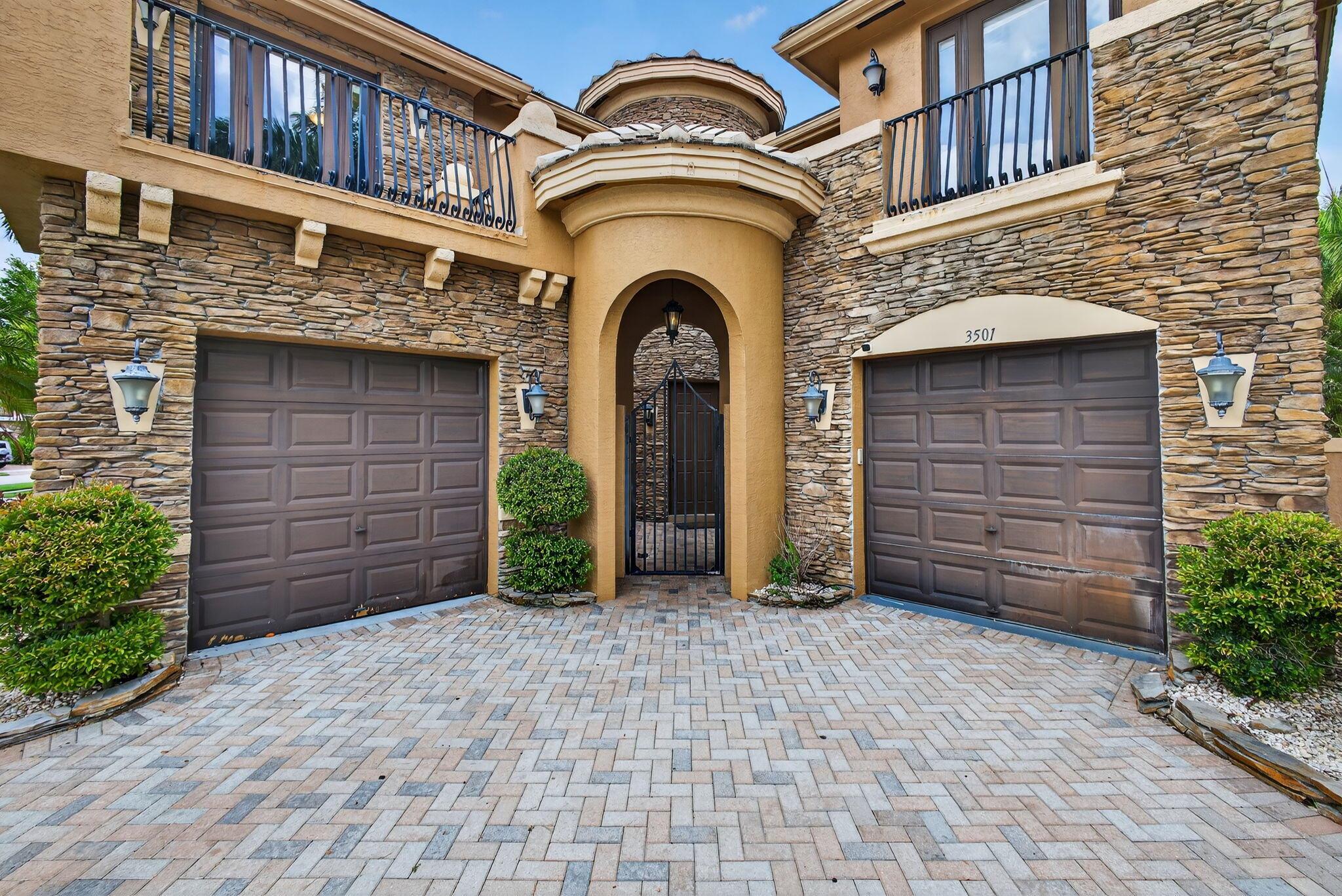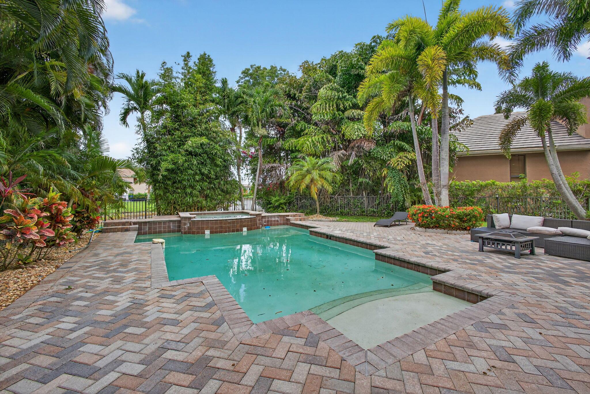 Experience luxury lakefront living in this highly desirable Moulin Rouge model, located within the prestigious, guard-gated Versailles community in the heart of Wellington. This expansive 4-bedroom, 4.5-bath pool home features a charming courtyard entrance, dual garages, and offers over 3,500 square feet of thoughtfully designed living space with an open layout ideal for both entertaining and everyday comfort.The gourmet kitchen is equipped with granite countertops, a center island, gas cooktop, double ovens, stainless steel appliances, and a dual sink with a window overlooking the backyard. Each bedroom features its own private en-suite bathroom and walk-in closet, with two bedrooms enjoying private walk-out balconies.