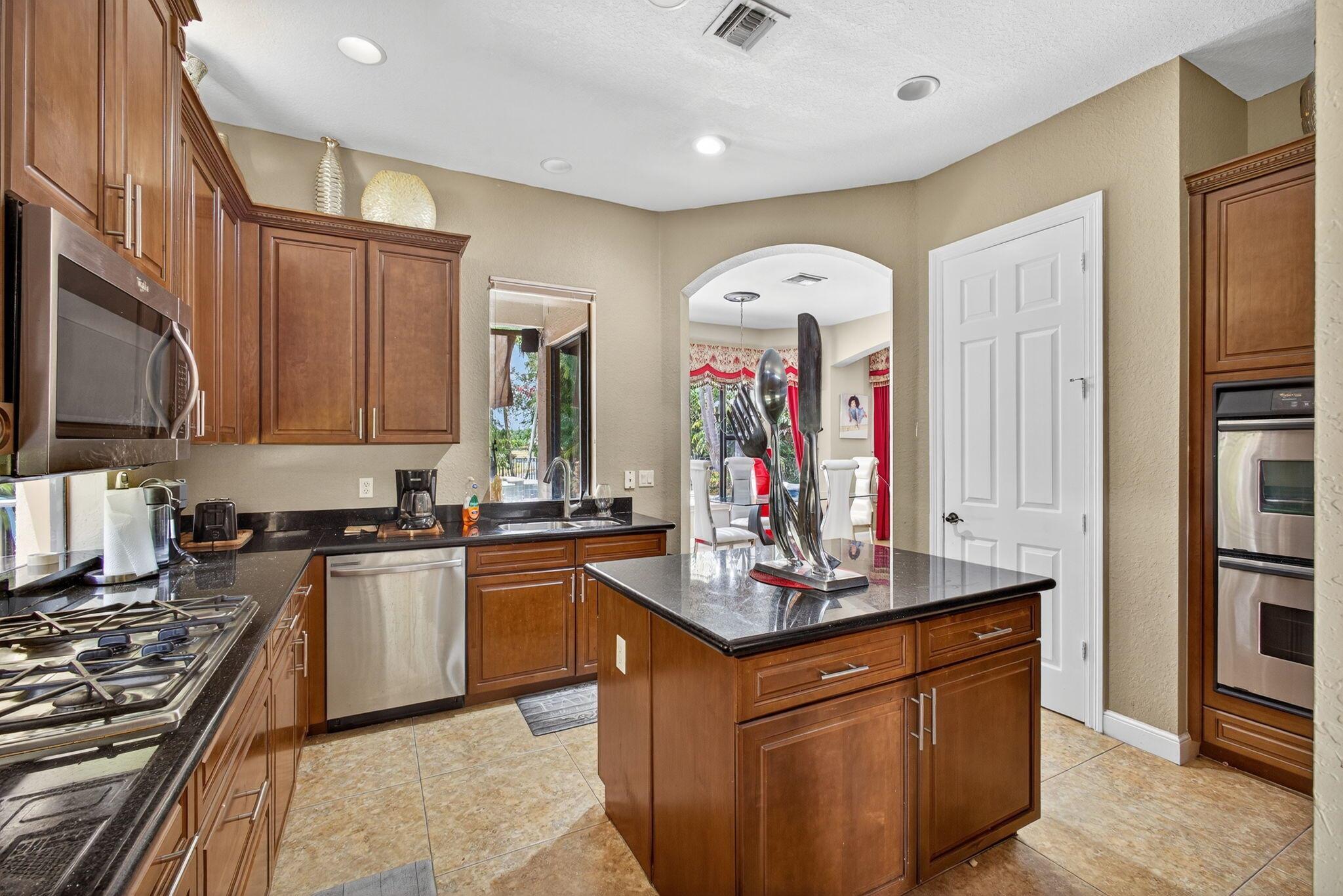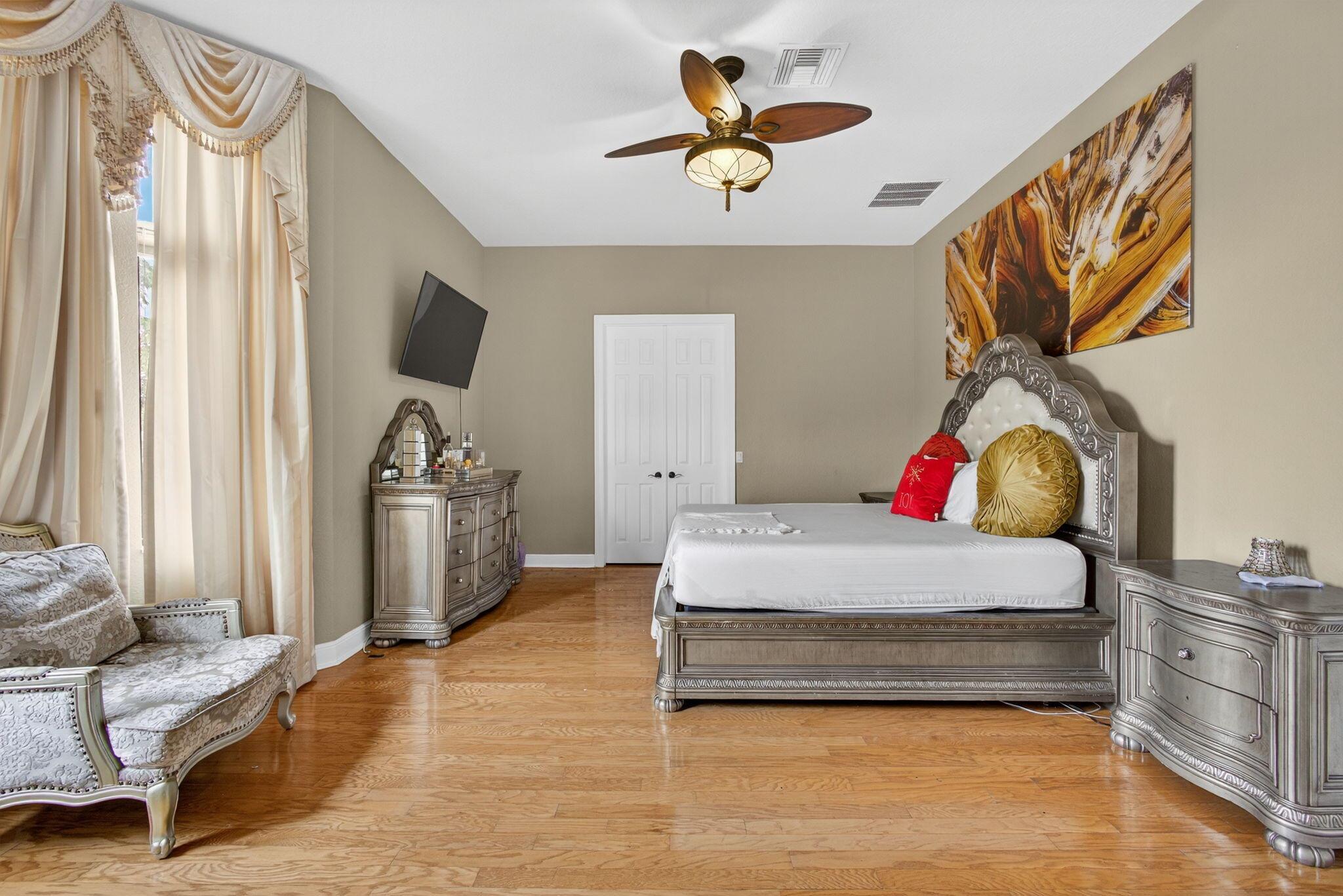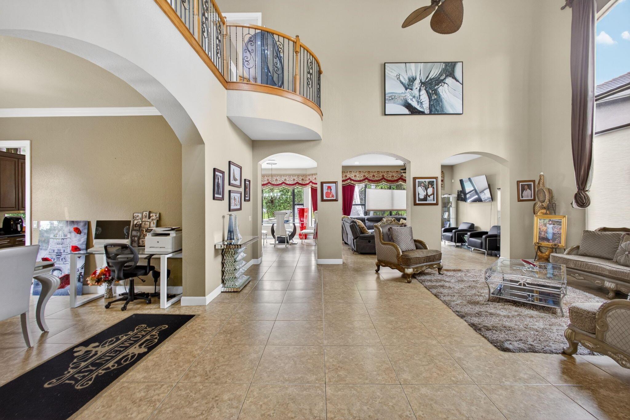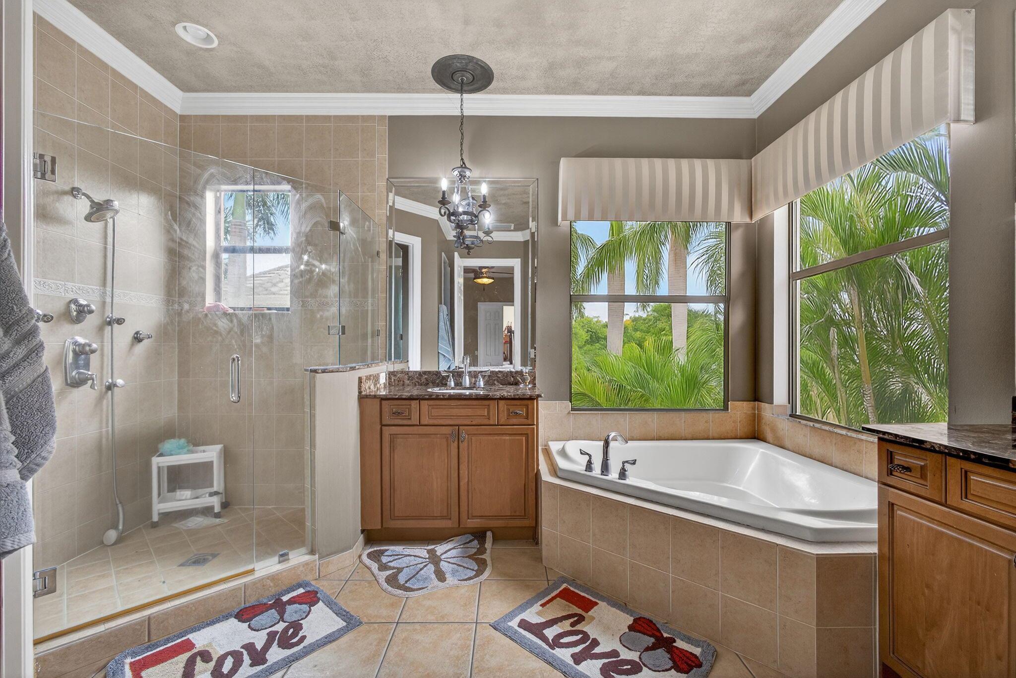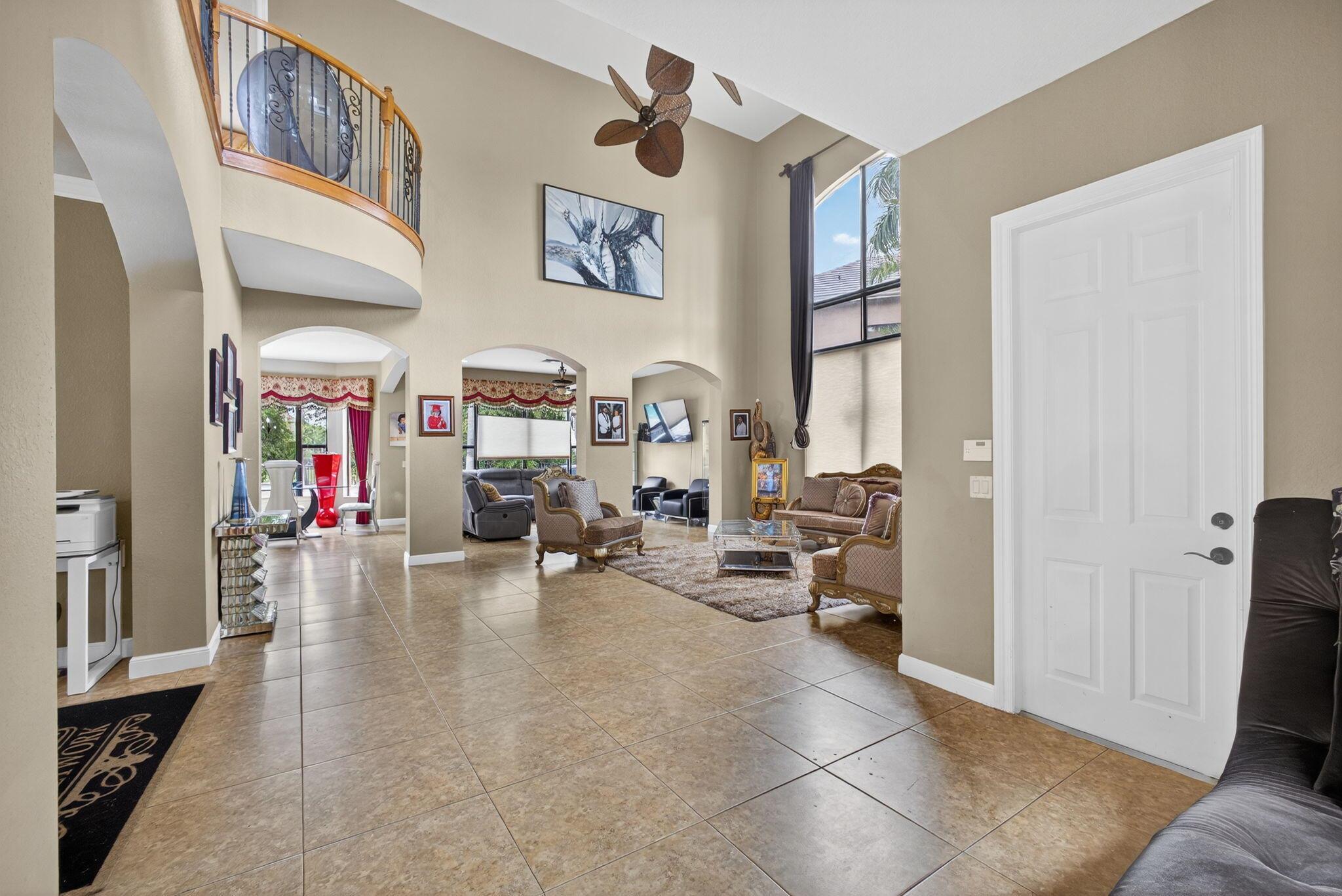 Experience luxury lakefront living in this highly desirable Moulin Rouge model, located within the prestigious, guard-gated Versailles community in the heart of Wellington. This expansive 4-bedroom, 4.5-bath pool home features a charming courtyard entrance, dual garages, and offers over 3,500 square feet of thoughtfully designed living space with an open layout ideal for both entertaining and everyday comfort.The gourmet kitchen is equipped with granite countertops, a center island, gas cooktop, double ovens, stainless steel appliances, and a dual sink with a window overlooking the backyard. Each bedroom features its own private en-suite bathroom and walk-in closet, with two bedrooms enjoying private walk-out balconies.