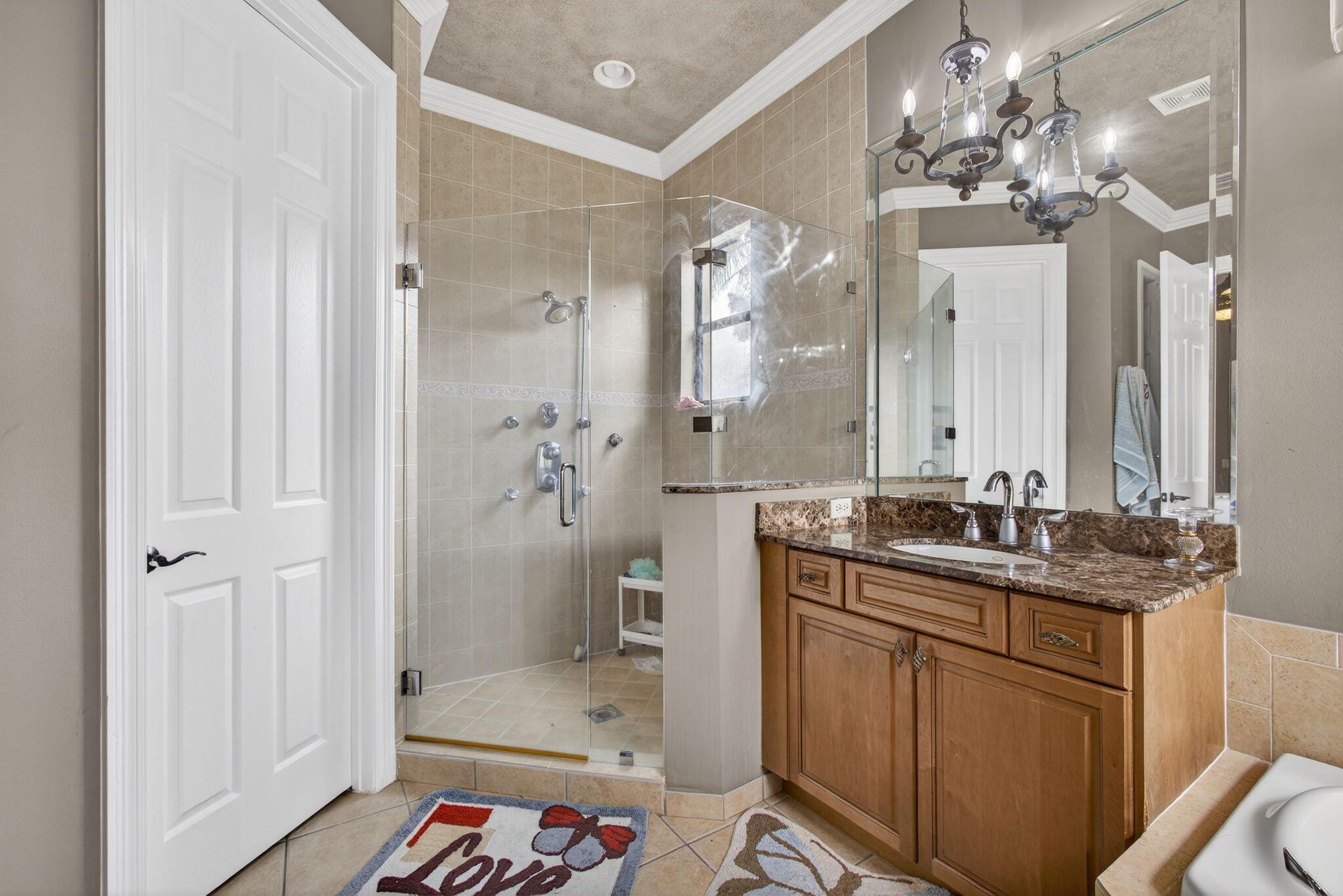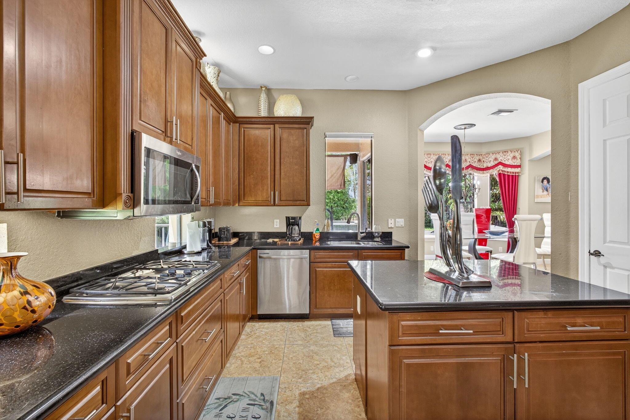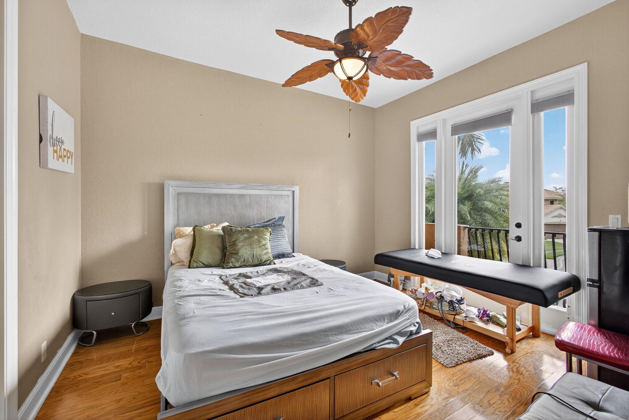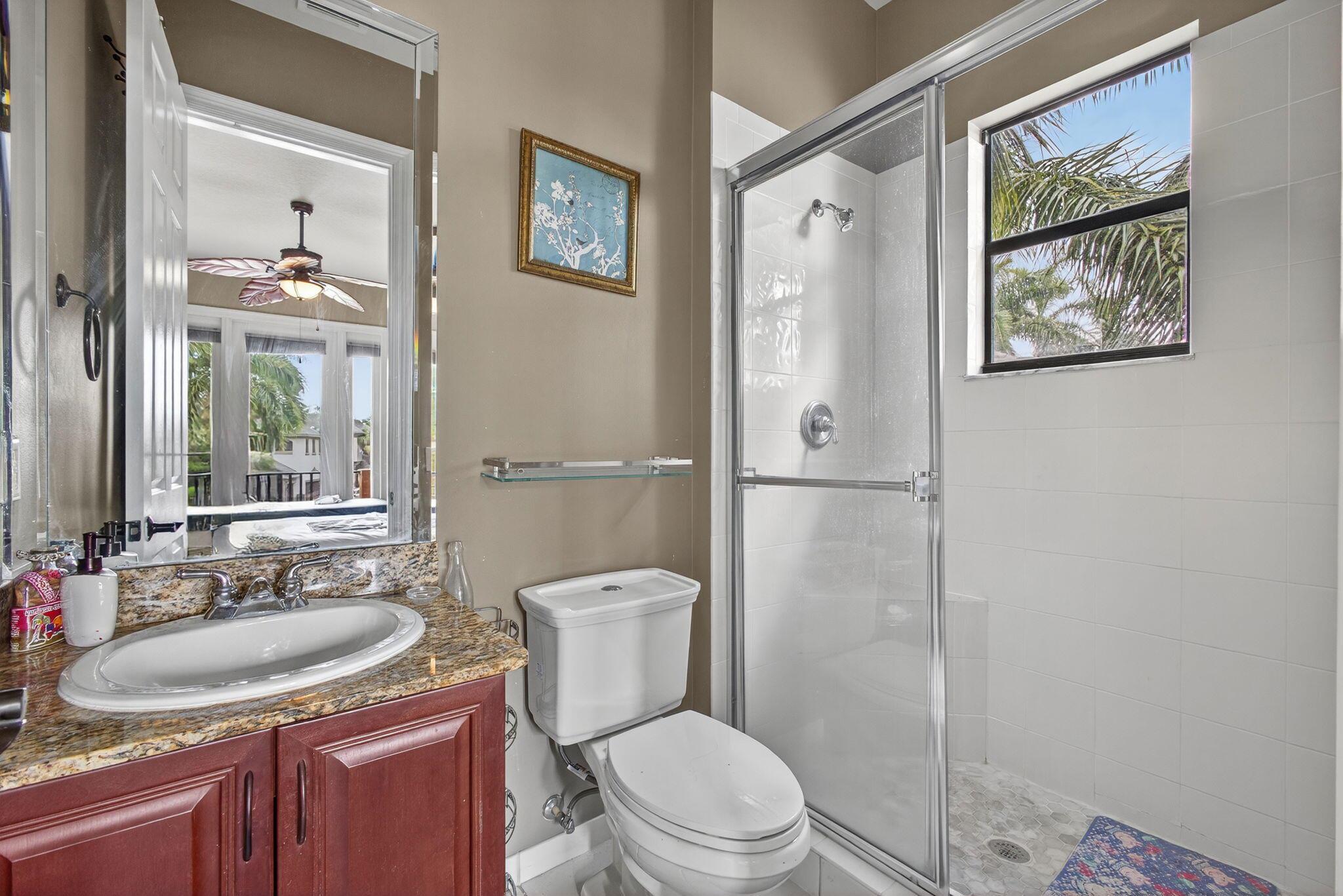 Experience luxury lakefront living in this highly desirable Moulin Rouge model, located within the prestigious, guard-gated Versailles community in the heart of Wellington. This expansive 4-bedroom, 4.5-bath pool home features a charming courtyard entrance, dual garages, and offers over 3,500 square feet of thoughtfully designed living space with an open layout ideal for both entertaining and everyday comfort.The gourmet kitchen is equipped with granite countertops, a center island, gas cooktop, double ovens, stainless steel appliances, and a dual sink with a window overlooking the backyard. Each bedroom features its own private en-suite bathroom and walk-in closet, with two bedrooms enjoying private walk-out balconies.