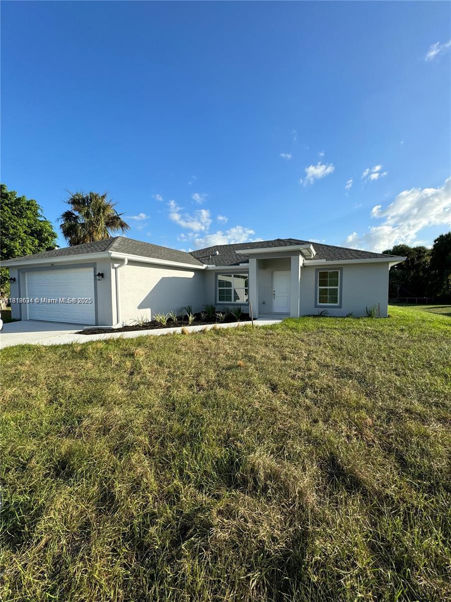 This beautiful new construction home, built in 2023, offers 4 spacious bedrooms and 2 modern bathrooms within 1,614 sq ft of comfortable living space. Situated on a generous 0.25-acre lot in the desirable Lehigh Acres community, this residence features paved roads and convenient access to local amenities. Perfect for families or investors seeking a move-in ready property with potential for customization. Don?t miss the opportunity to own a modern home in a growing neighborhood with easy access to Southwest Florida attractions.