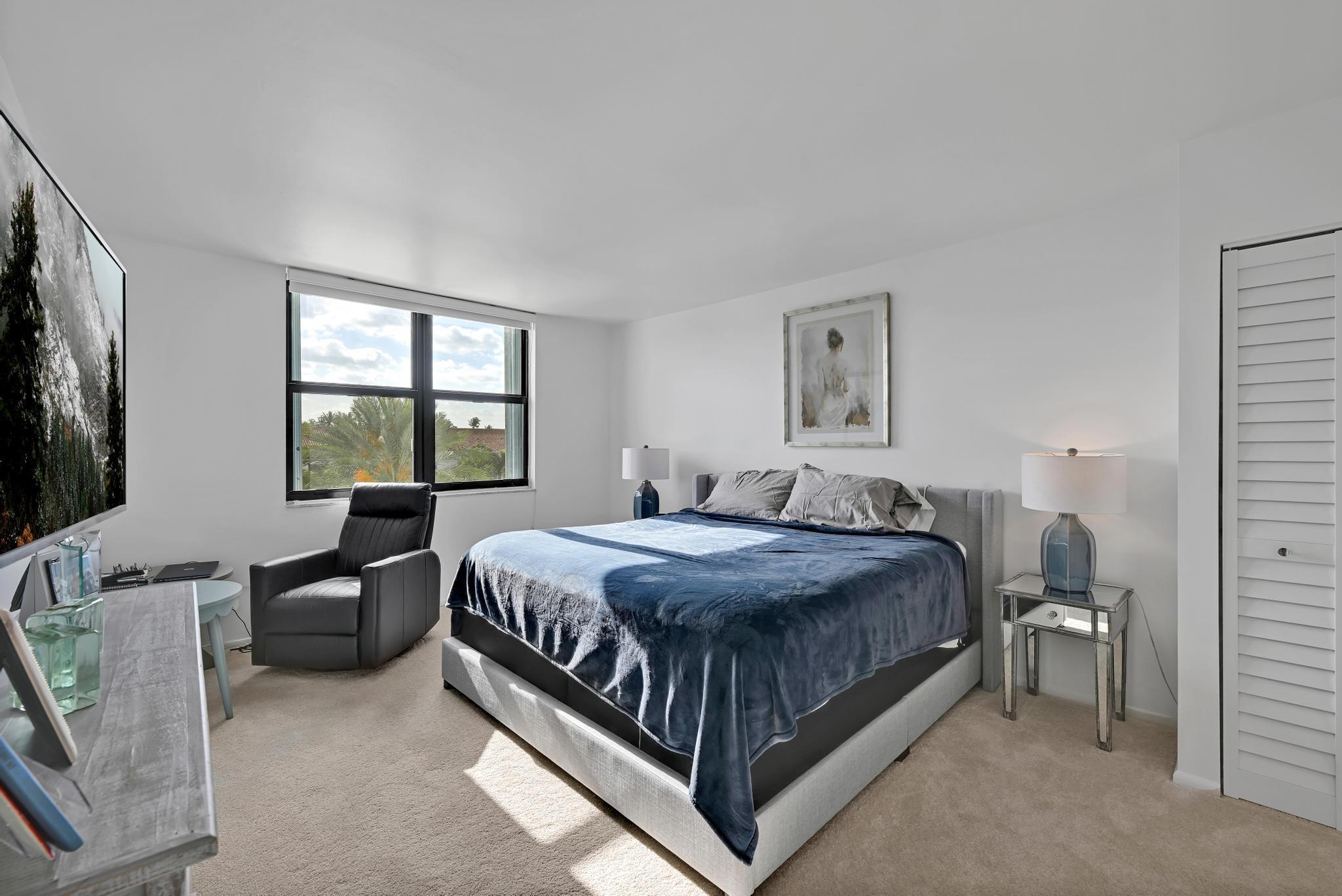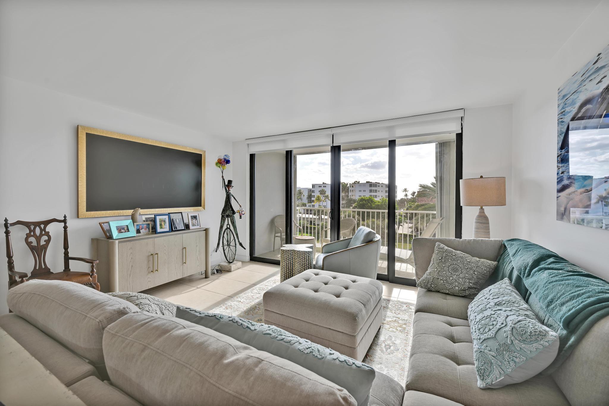 Magnificent 2 Bedroom/2 Bathroom Fully Renovated, FULLY FURNISHED, Directly on Intracoastal and Directly Across From Beach. Fully Renovated with all Impact Doors and Windows, Kitchen, Baths. Full Balcony with views of ocean and hotels (Four Seasons, Tideline). Full Amenity Building including: 24/7 Doorman, Salt Water Pool, Covered Parking, Fitness, Deeded Beach Access. Best Location, near Restaurants, Boardwalk, Farmers Market, Par 3 golf, Publix. ALSO AVAILABLE SEASONALLY (DECEMBER-APRIL) at $8,000/m