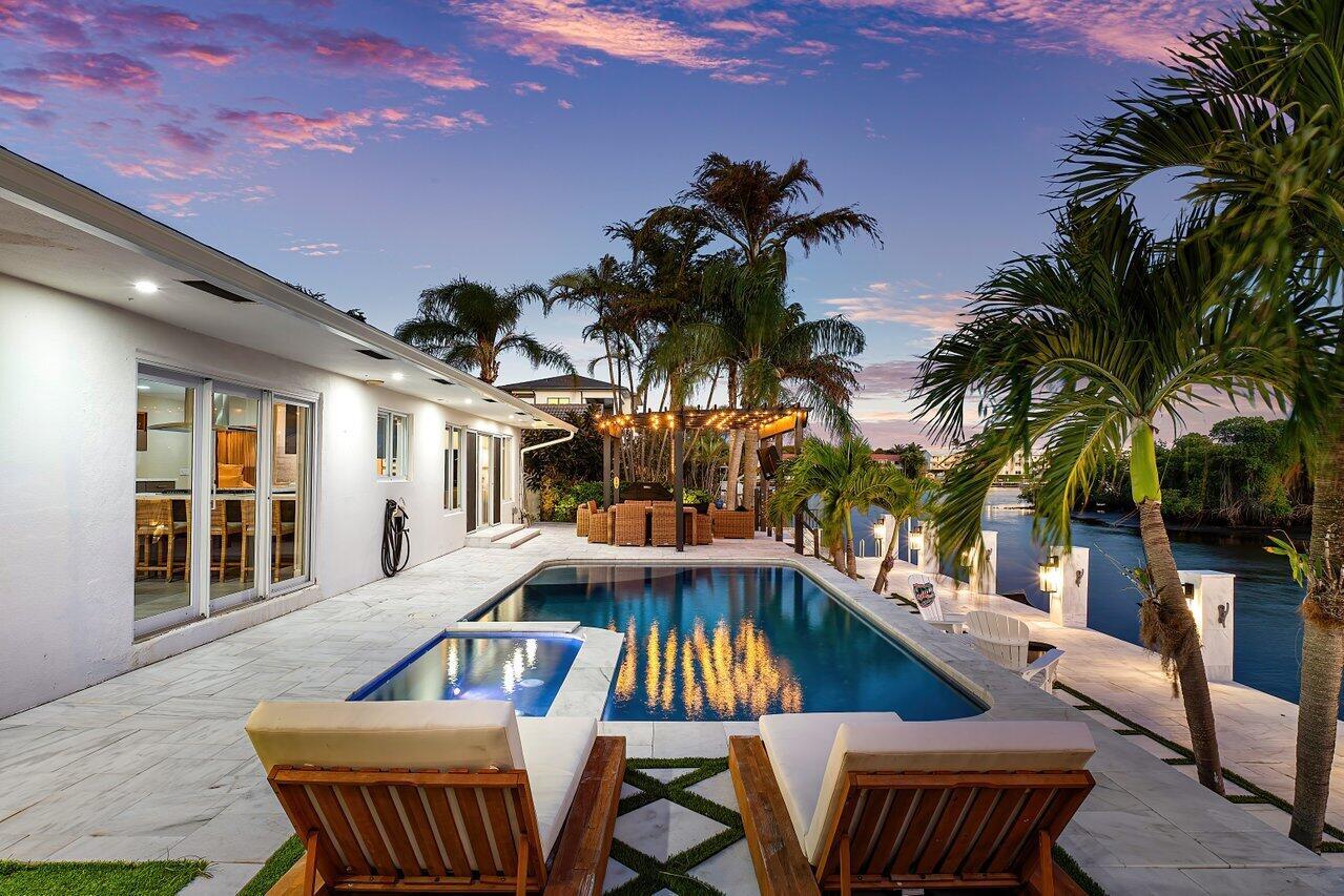 Turnkey furnished rental on 100 feet of waterfront at one of South Florida's best-kept secrets, Inlet Cay of Ocean Ridge. This property offers waterfront living in a perfectly renovated, designer furnished home. Very tranquil, private backyard with peaceful waterfront boasting commanding unobstructed views of natural mangrove islands. Open floor plan with expansive impact sliding glass doors to maximize the waterfront views. Enjoy the indoor/outdoor living with a pergola, grill, outdoor TV, infinity pool with a sun shelf and spa with waterfall feature surrounded by an expansive patio and yard. Hard wood flooring and tile throughout. Stroll to the beach. Boat to the Boynton Beach inlet and ocean. Just minutes to the attractions of Delray Beach and Palm Beach. Live a Floridian dream life!