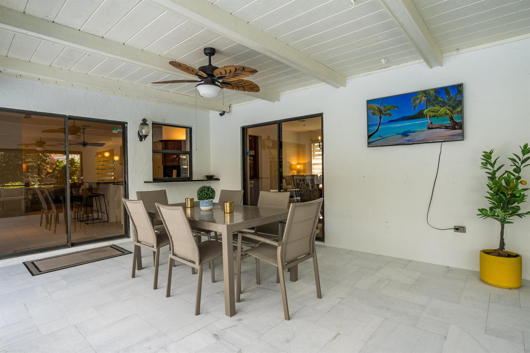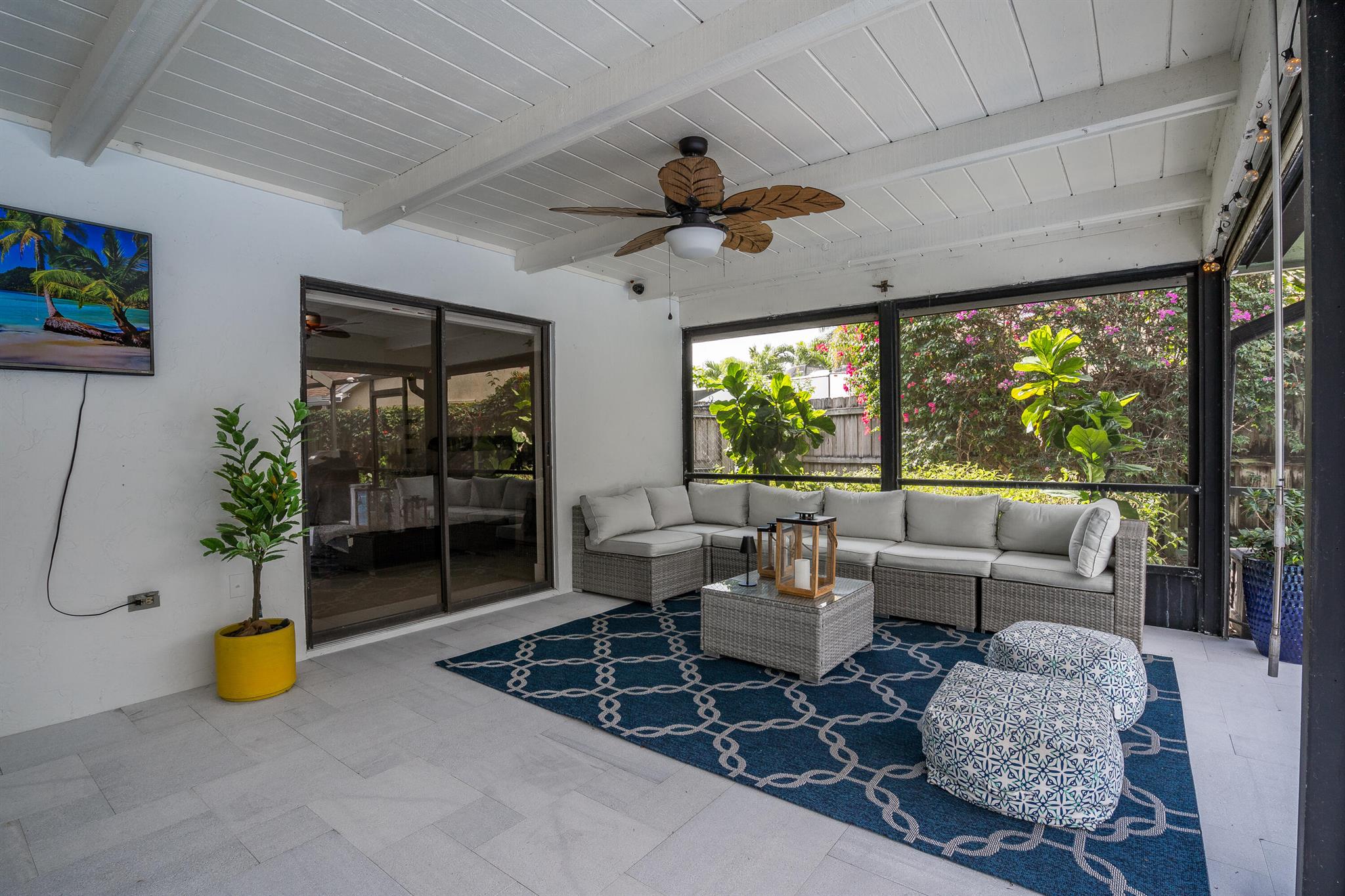 Month-to-month rental, fully furnished and with all utilities included available in the beautiful Palm Beaches recently updated 3-bedroom, 2-bathroom home is located in a quiet, well-kept neighborhood and features a heated saltwater pool with spa jets, an outdoor dining and seating area, and a private sauna. Inside, you'll find two spacious living rooms, a dining room, and a fully equipped kitchen--perfect for comfortable, turnkey living. The home is just a 5-minute drive to the beach and conveniently close to the intracoastal waterway, restaurants, bars, grocery stores, and PBI Airport. Delray Beach is only 15 minutes away, and access to I-95 is quick and easy, making this the perfect location for both relaxation and convenience.