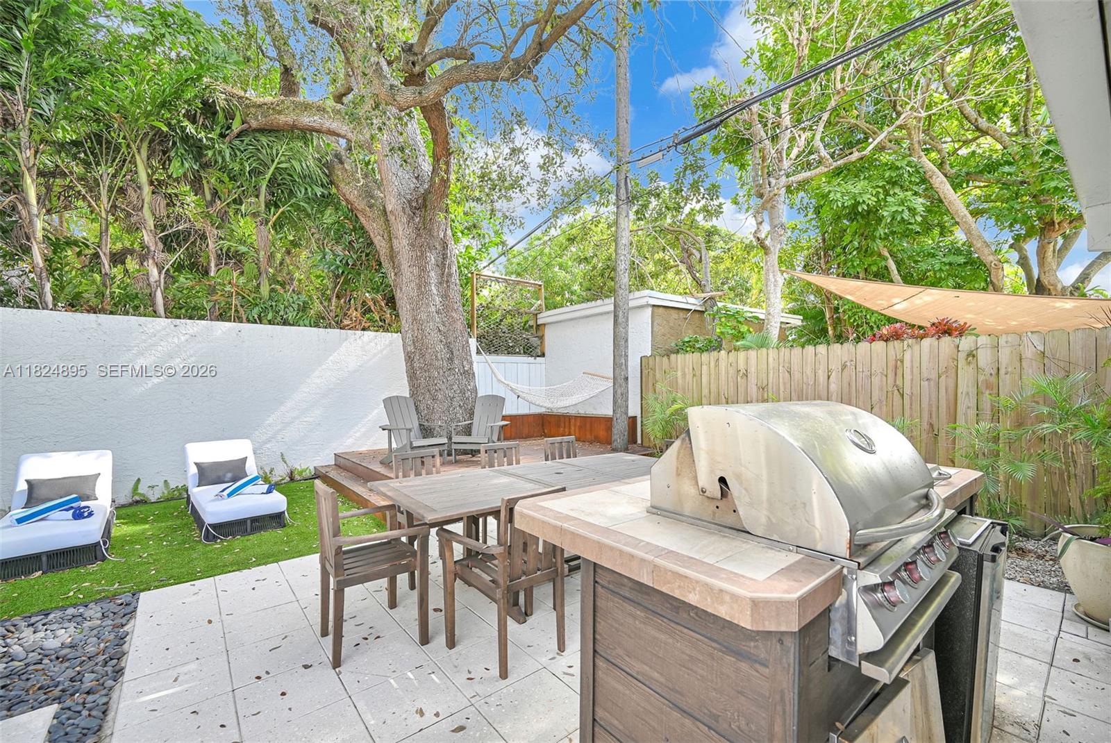 Stunning 4-bedroom, 3-bath + Massive office massive second-floor office, Perfect for live/work. home featuring a presidential master suite with 20+ ft ceilings and a walk-in closet the size of a bedroom. The property includes a detached guest house with a kitchenette and full bathroom. Enjoy a resort-style backyard with a pool, outdoor BBQ area, and beautiful landscaping — perfect for entertaining. A perfect mix of luxury, privacy, and functionality in a prime Miami location.