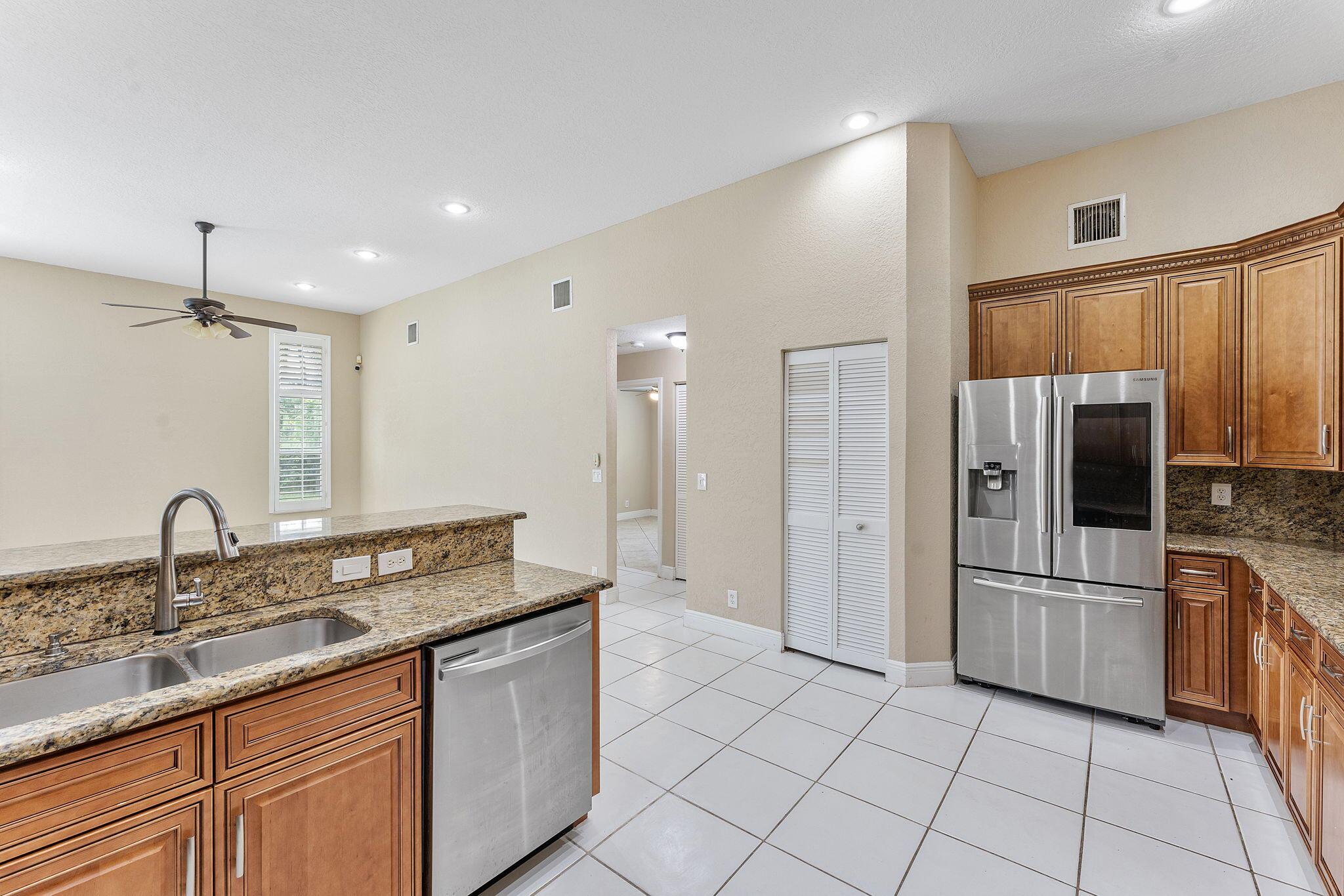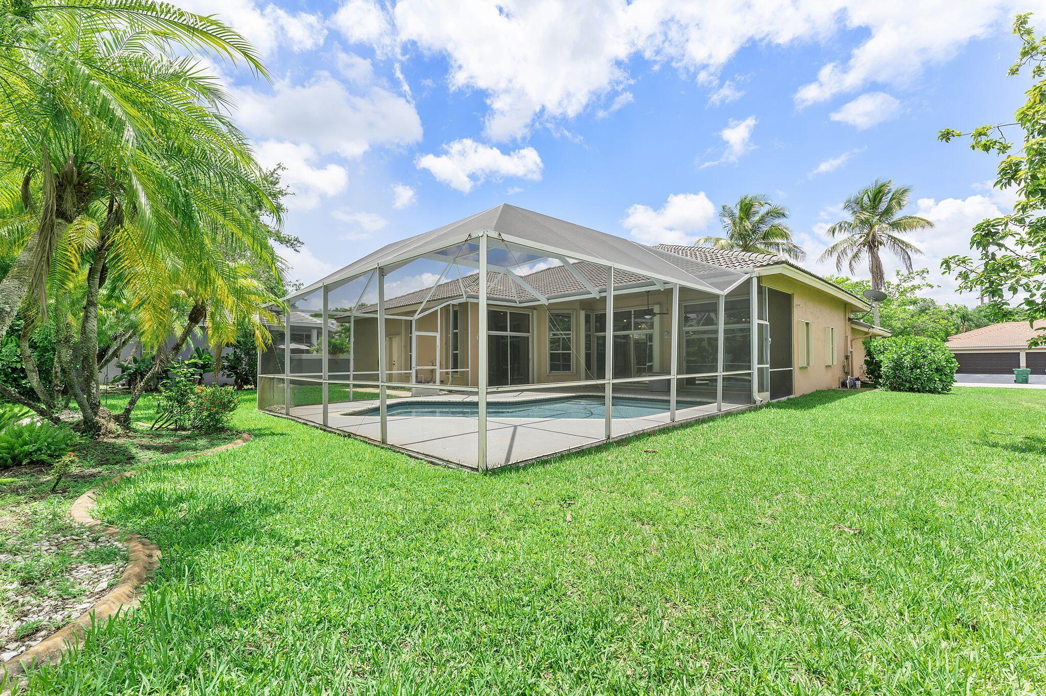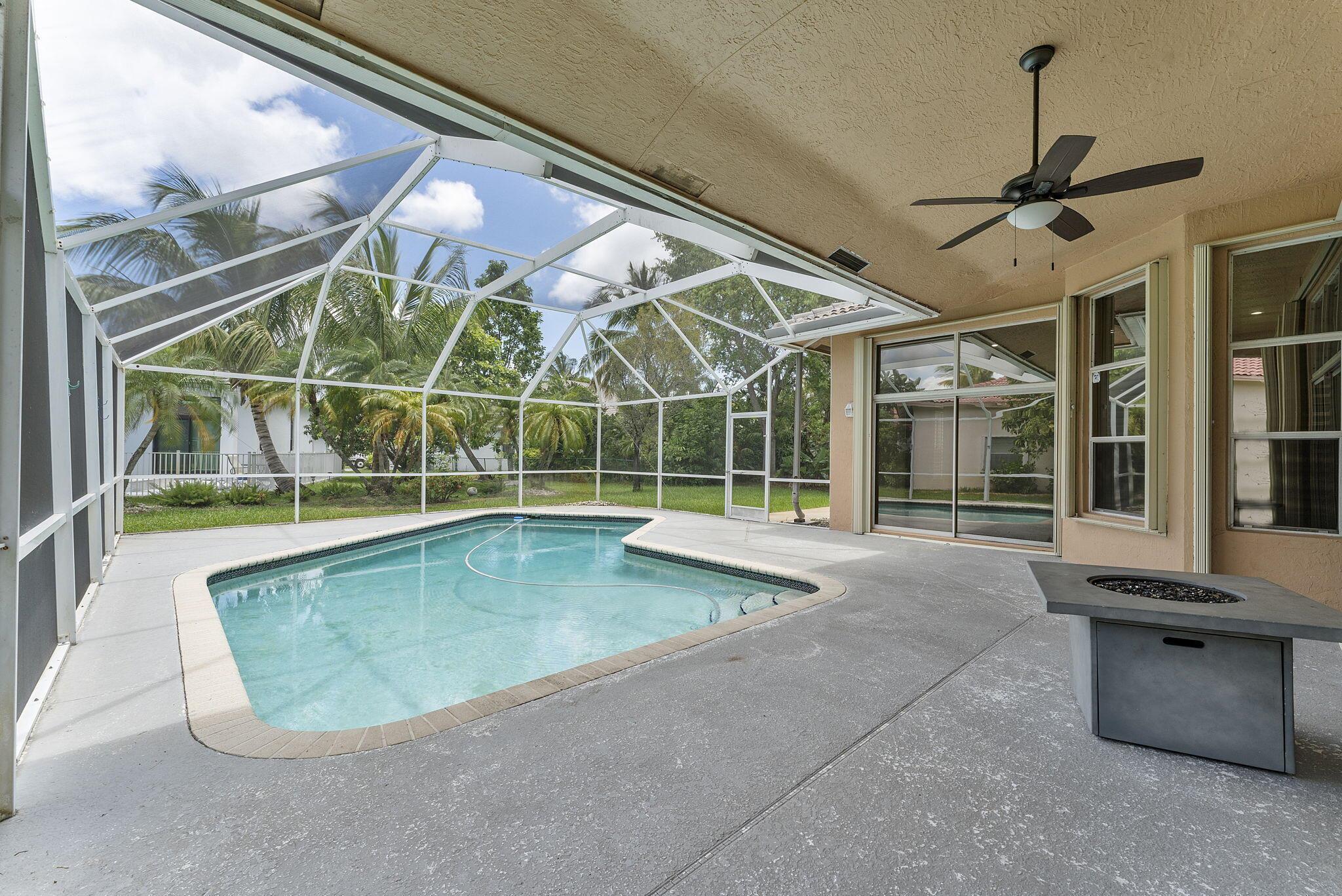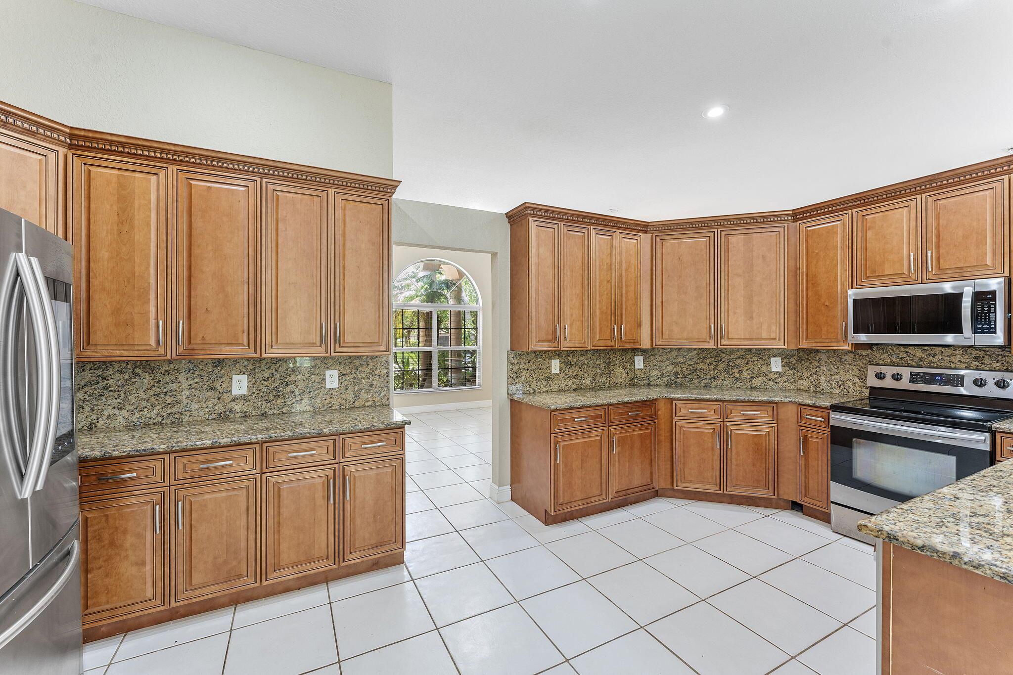 Stunning single-story estate featuring 4 spacious bedrooms and 3 full bathrooms, located in the prestigious and beautifully maintained community of Kensington Glen. This luxurious residence offers exceptional curb appeal with an extended driveway and a two-car garage. Step inside to a freshly painted, light-filled interior that flows effortlessly across elegant tile flooring. The chef-inspired kitchen, adorned with gleaming granite countertops, premium stainless-steel appliances including a state-of-the-art Samsung touchscreen refrigerator and rich wood cabinetry, perfect for culinary enthusiasts and entertainers alike. The open layout extends seamlessly to the outdoors, where a screened-in patio and sparkling pool provide an ideal setting for alfresco gatherings and relaxing