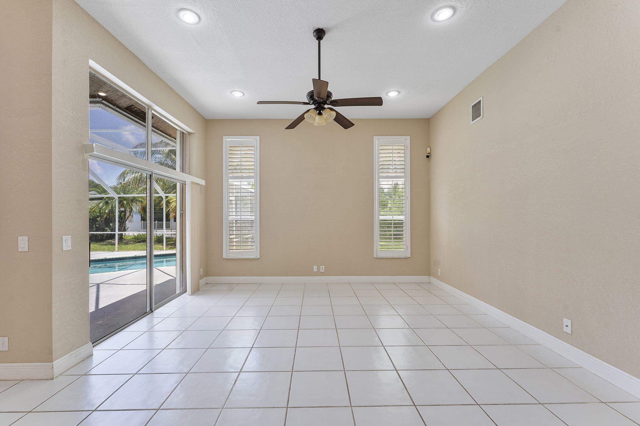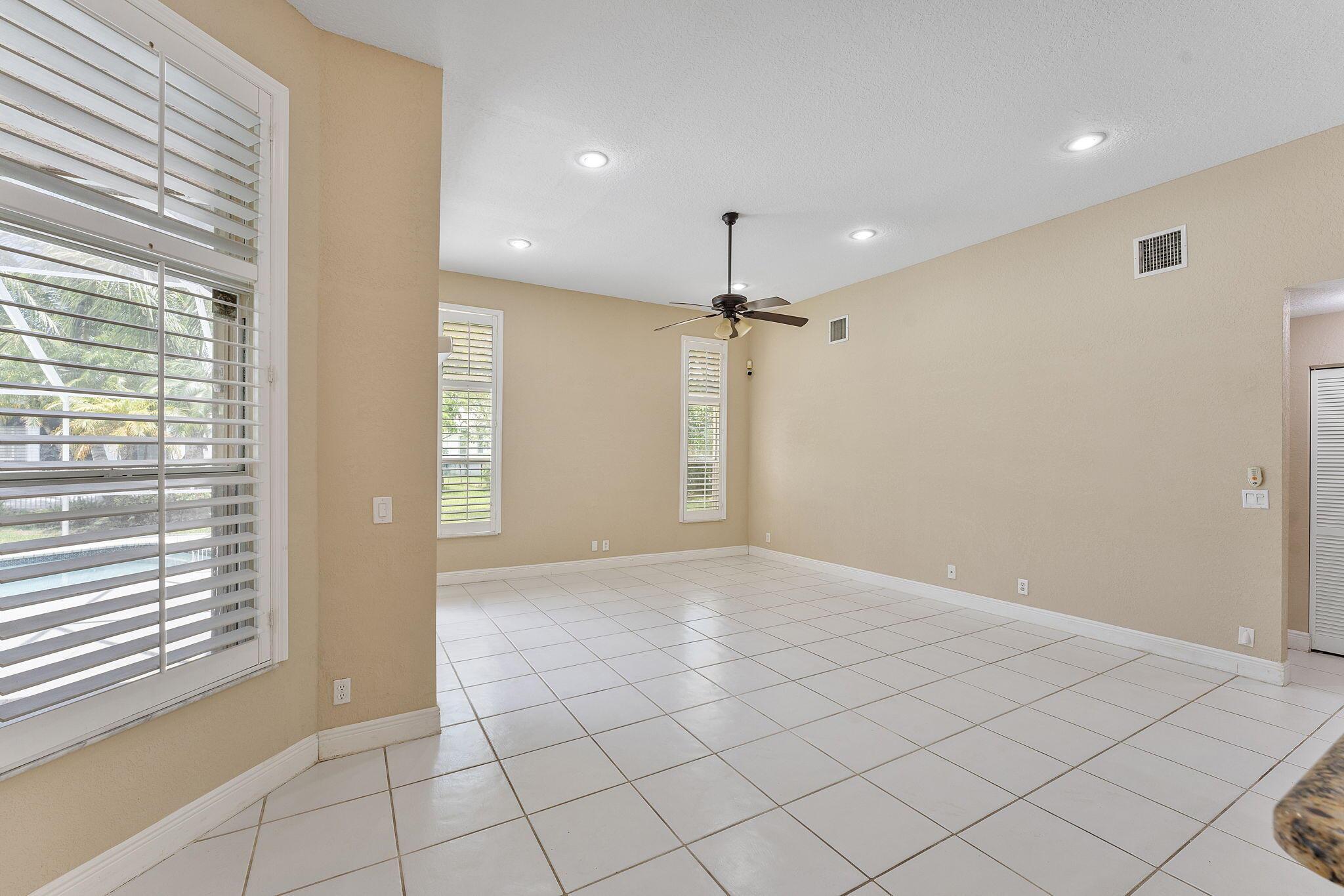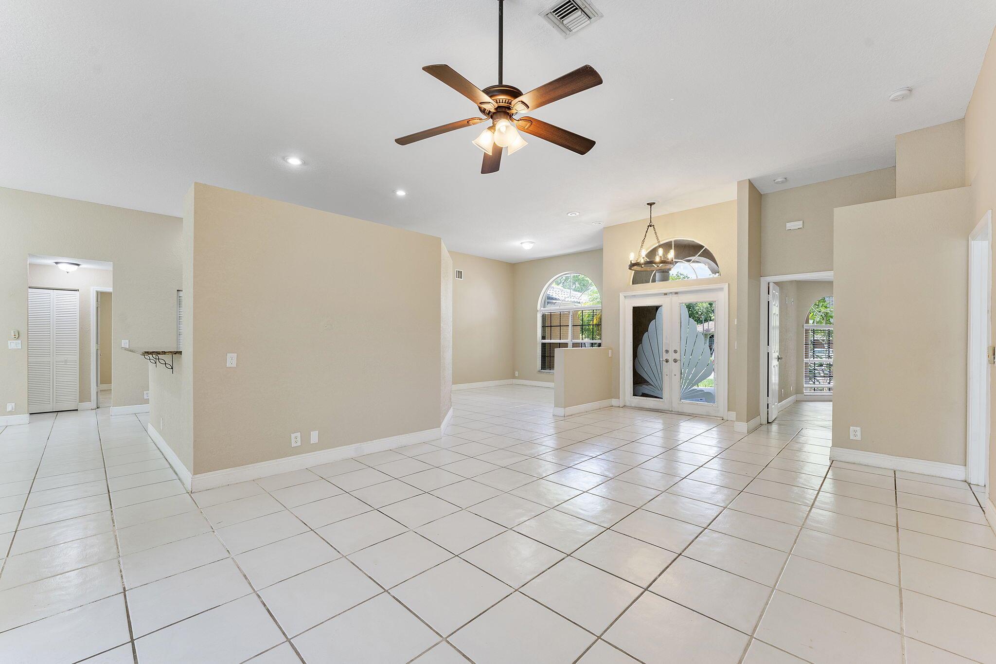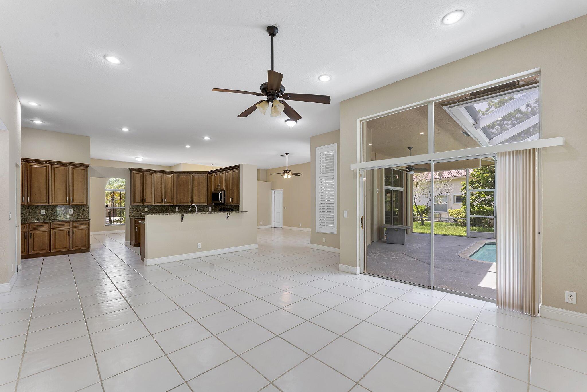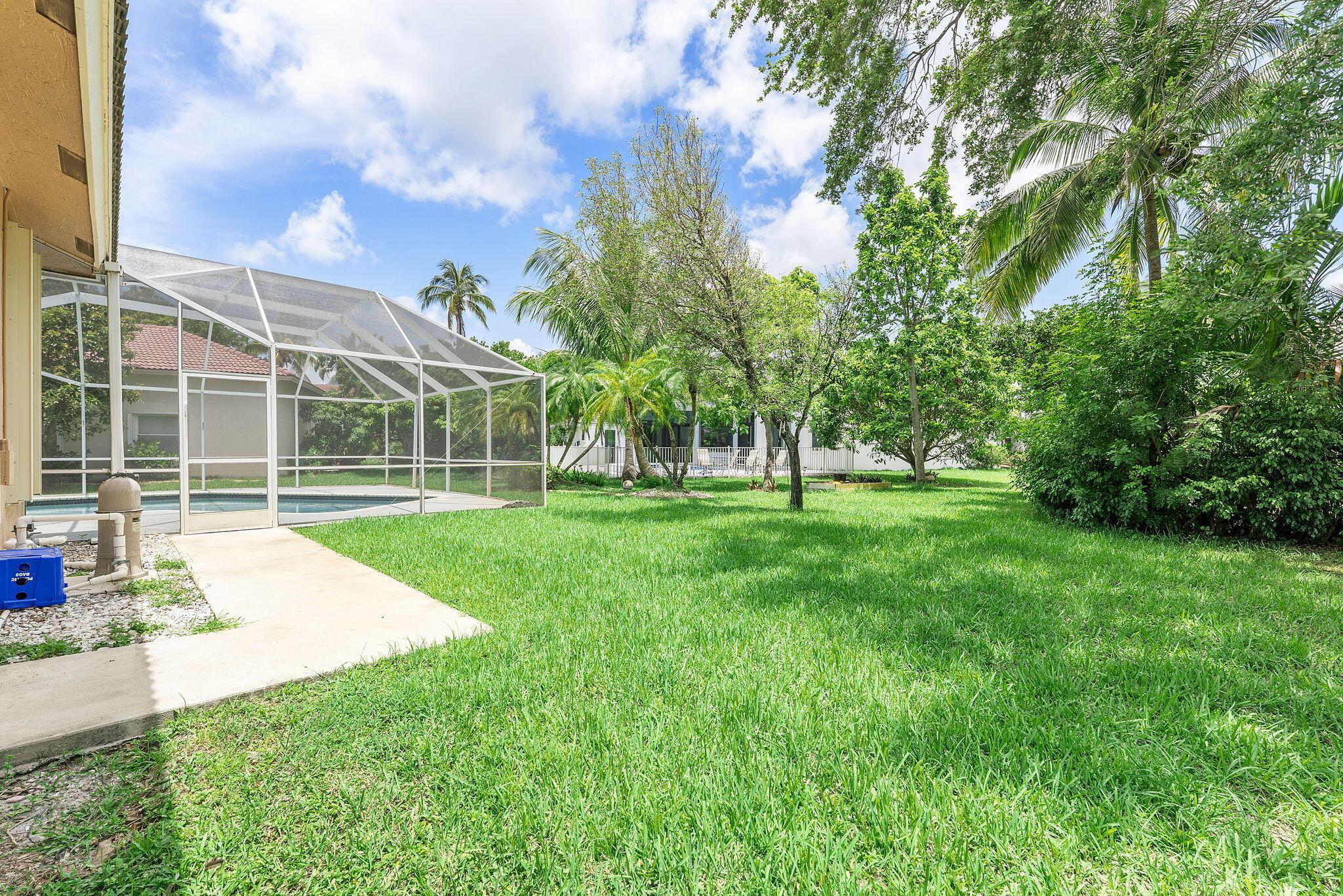 Stunning single-story estate featuring 4 spacious bedrooms and 3 full bathrooms, located in the prestigious and beautifully maintained community of Kensington Glen. This luxurious residence offers exceptional curb appeal with an extended driveway and a two-car garage. Step inside to a freshly painted, light-filled interior that flows effortlessly across elegant tile flooring. The chef-inspired kitchen, adorned with gleaming granite countertops, premium stainless-steel appliances including a state-of-the-art Samsung touchscreen refrigerator and rich wood cabinetry, perfect for culinary enthusiasts and entertainers alike. The open layout extends seamlessly to the outdoors, where a screened-in patio and sparkling pool provide an ideal setting for alfresco gatherings and relaxing