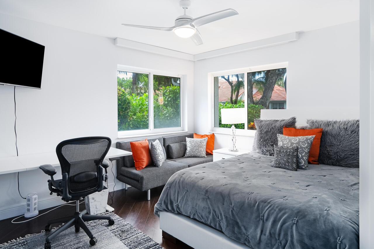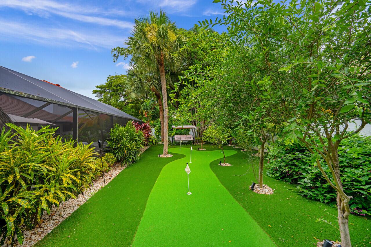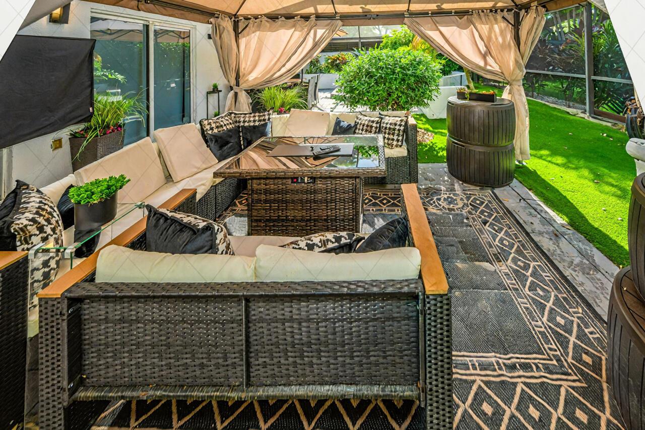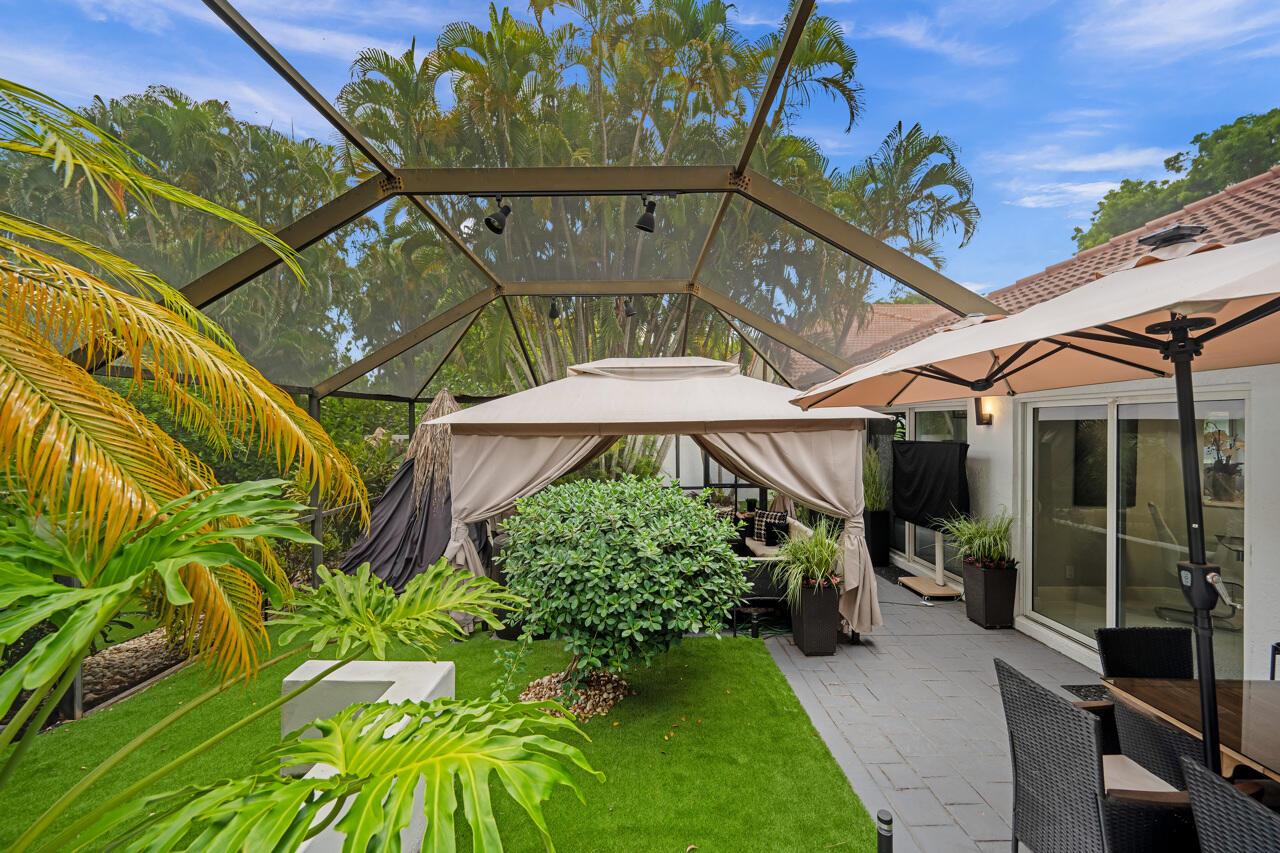 OLD COURSE GOLF MEMBERSHIP - Welcome to perfection in the Village of Cedar Cay at Broken Sound Country Club! This completely renovated one-story townhouse offers 2 bedrooms, 2.5 baths, and a stylish split-bedroom floor plan designed for both privacy and comfort. Impeccably clean and move-in ready, this rental home features soaring vaulted ceilings and sleek white porcelain tile floors that create a light and airy ambiance throughout. Enjoy designer furnishings and tasteful decor that elevate every room, from the spacious living area to the thoughtfully updated kitchen and baths. Step outside to a private, oversized screened-in patio where resort-style relaxation awaits -- complete with a covered sitting area, bubbling jacuzzi, and brand-new putting green turf for