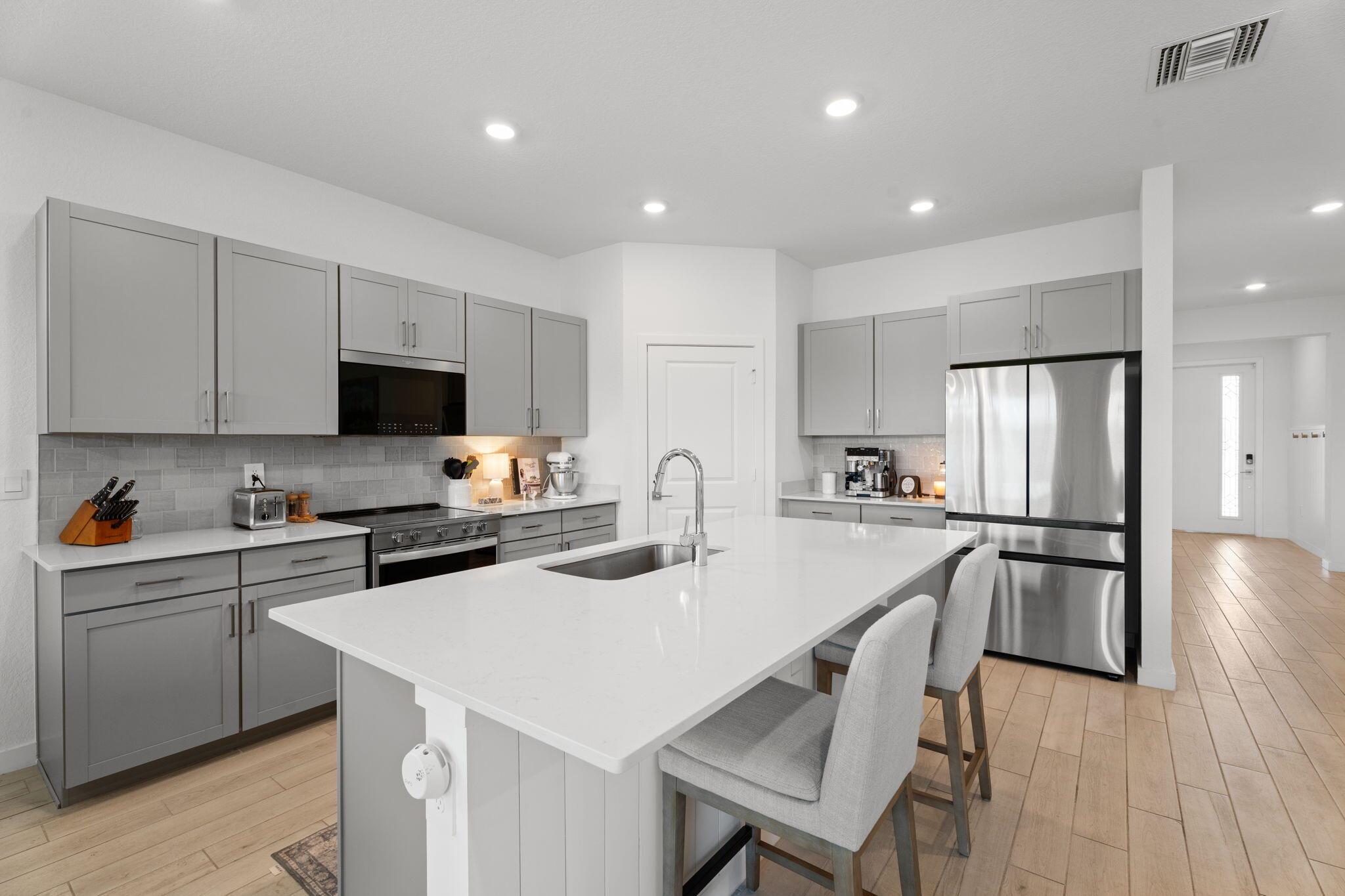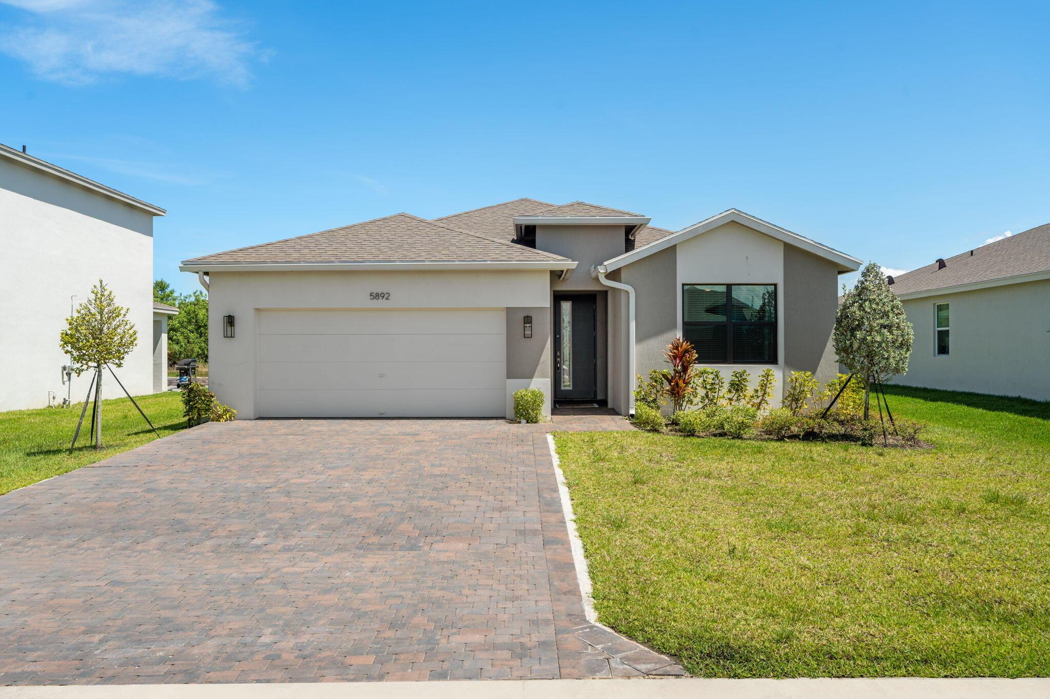 Now available for rent--this 2024-built 4-bedroom, 2-bath home is located in a gated community with a pool and cabana, and includes landscaping in the rent. With over 2,000 sq/ft of living space, it features impact glass, custom trim work including shiplap accents, and a spacious, open layout perfect for comfortable living. Enjoy incredible lake views from the fully fenced backyard.Move-in ready and easy to show. First, last, and security required at move-in.Refrigerator currently in the home does not convey. The original fridge that came with the house (now located in the garage) will be reinstalled in kitchen prior to move-in.