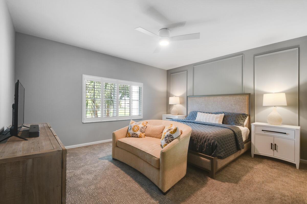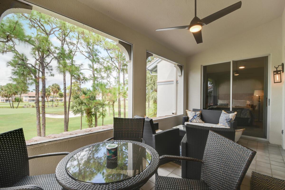 Beautifully updated and furnished 3 bedroom/ 2 bath/ 1 car garage unit on the 7th hole of the Championship Golf course. Available for rent for the season Jan-April for $8500.00/ month and off season for $4200/ month. The second story unit has amazing golf views from the living room and balcony. Enjoy the spacious living areas, updated kitchen, and 3 bedrooms. Laundry room in unit along with a 1 car garage. Enjoy all that PGA has to offer while living in this gorgeous unit across from the community pool.