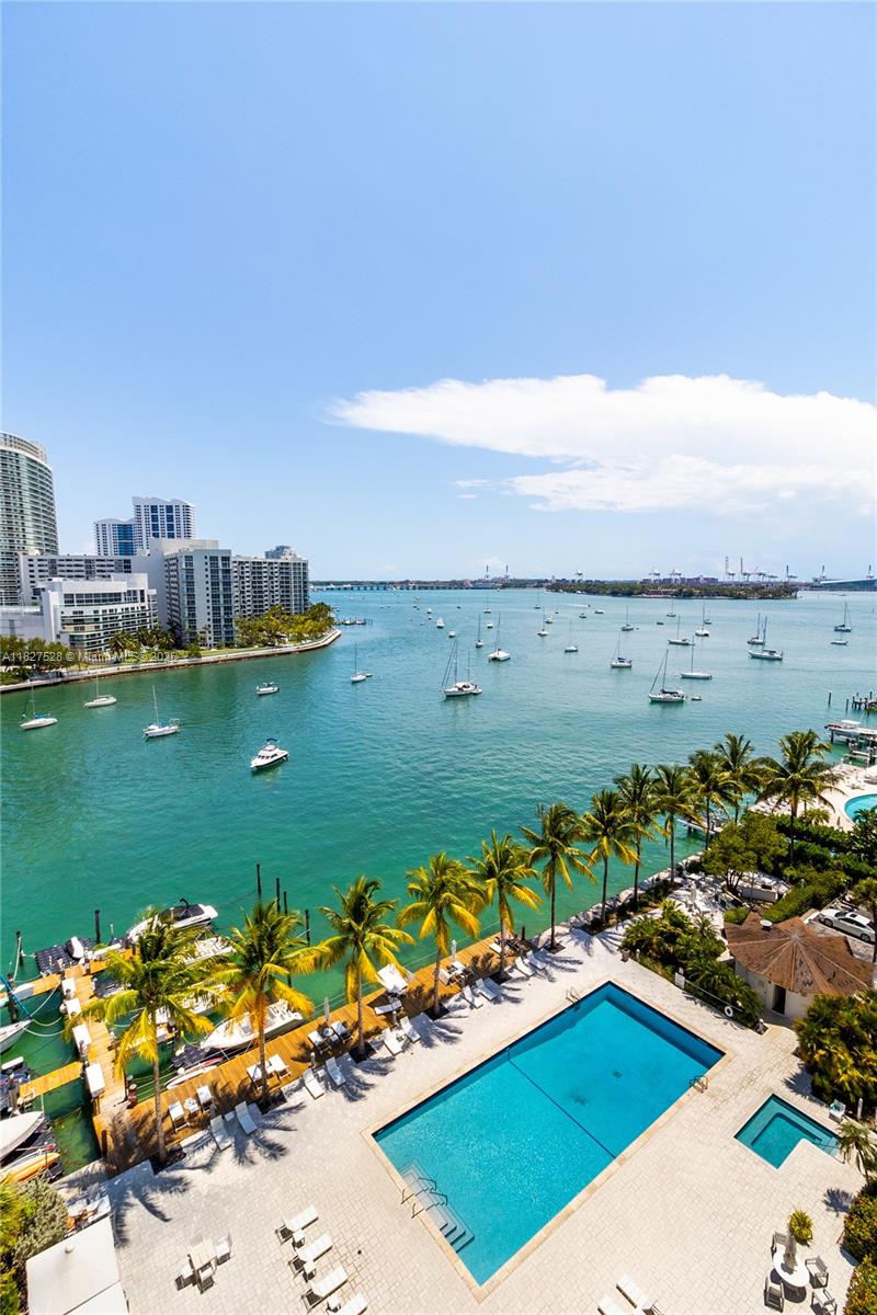 Bright and spacious furnioshed 2 bedroom apartment with unobstructed water views in Belle Plaza! Only split plan unit per floor plan. Completely renovated with a semi open kitchen. Impact windows and sliding door. Enjoy sunrises and sunsets from every room in this gorgeous apartment. Laundry room in the hallway. Easy to show.