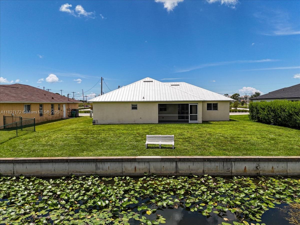 Welcome to your perfect Florida retreat! This beautifully updated 4-bedroom, 2-bathroom home is nestled along a freshwater canal, offering stunning views and a peaceful atmosphere right from your screened-in lanai. Step inside to find a spacious, all-tile interior freshly painted both inside and out. The heart of the home is a chef-inspired kitchen featuring a large island—perfect for meal prep or entertaining guests. The open living area provides plenty of room to relax and unwind, while the inside laundry room adds everyday convenience. Centrally located near shopping, top-rated restaurants, and the world-famous Southwest Florida beaches, this home offers the ideal blend of tranquility and accessibility. ? Lawn service included in the rent – just move in and enjoy!