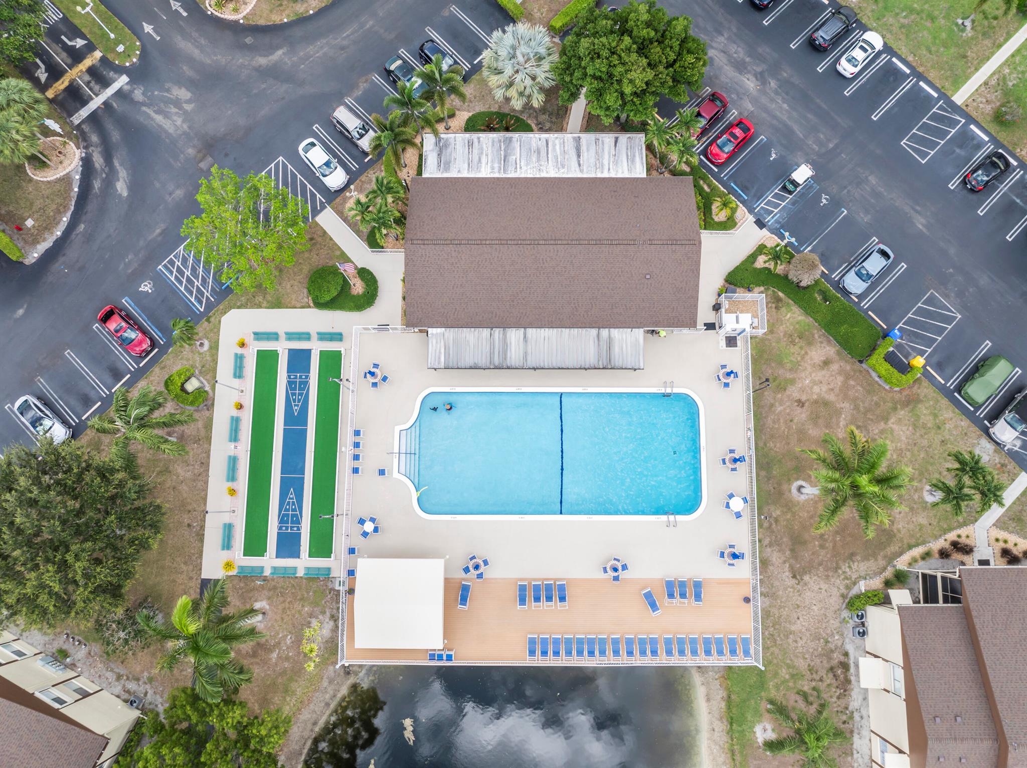 Welcome to your active adult escape in the tropical city of Greenacres! This spacious condo features a large enclosed sunroom with glass sliders--perfect for relaxing with your favorite drink. Enjoy a kitchen with pull-out drawers and a snack bar that opens to the dining room, ideal for entertaining. Tiled floors throughout living areas and sunroom, plus a full-size washer/dryer in the laundry room. Both bedrooms offer walk-in closets, and accordion shutters provide added protection. Parking right in front of the building. Beautiful community with clubhouse and pool overlooking a lake. Close to beaches, dining, airport & more!